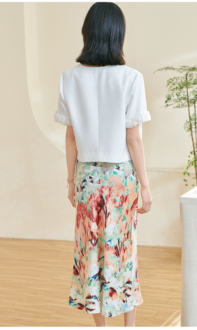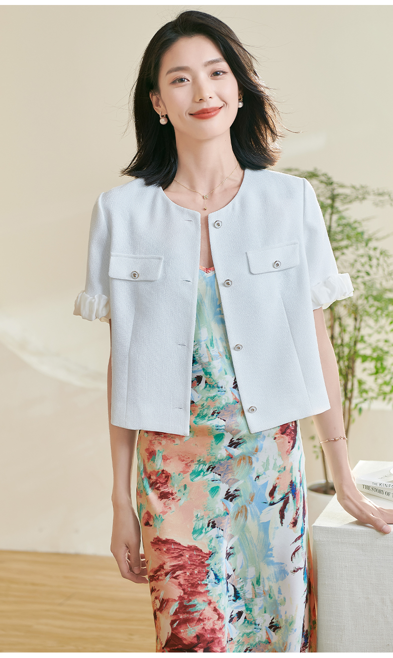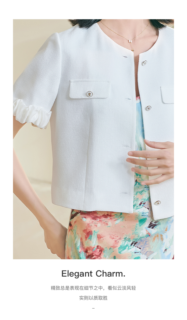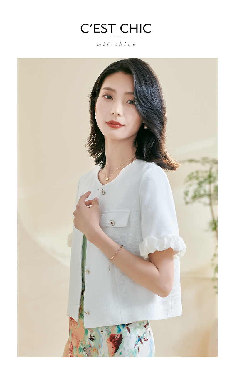 剩S/L/XL/XXL 米思阳2025夏季新款小香风简约通勤短外套百搭花边袖肌理上衣0504
