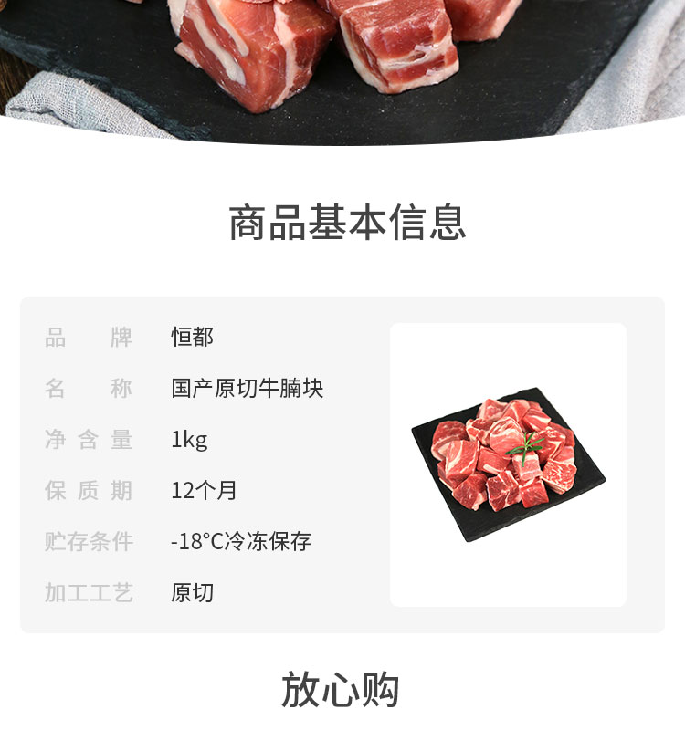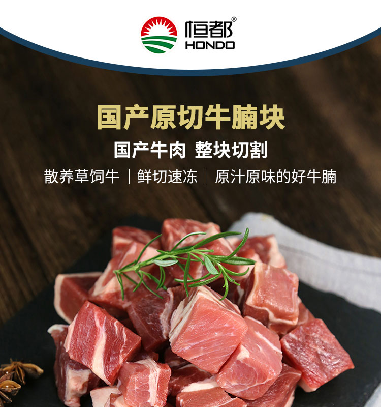 恒都 国产原切牛腩块 1kg/袋 冷冻 谷饲牛肉
