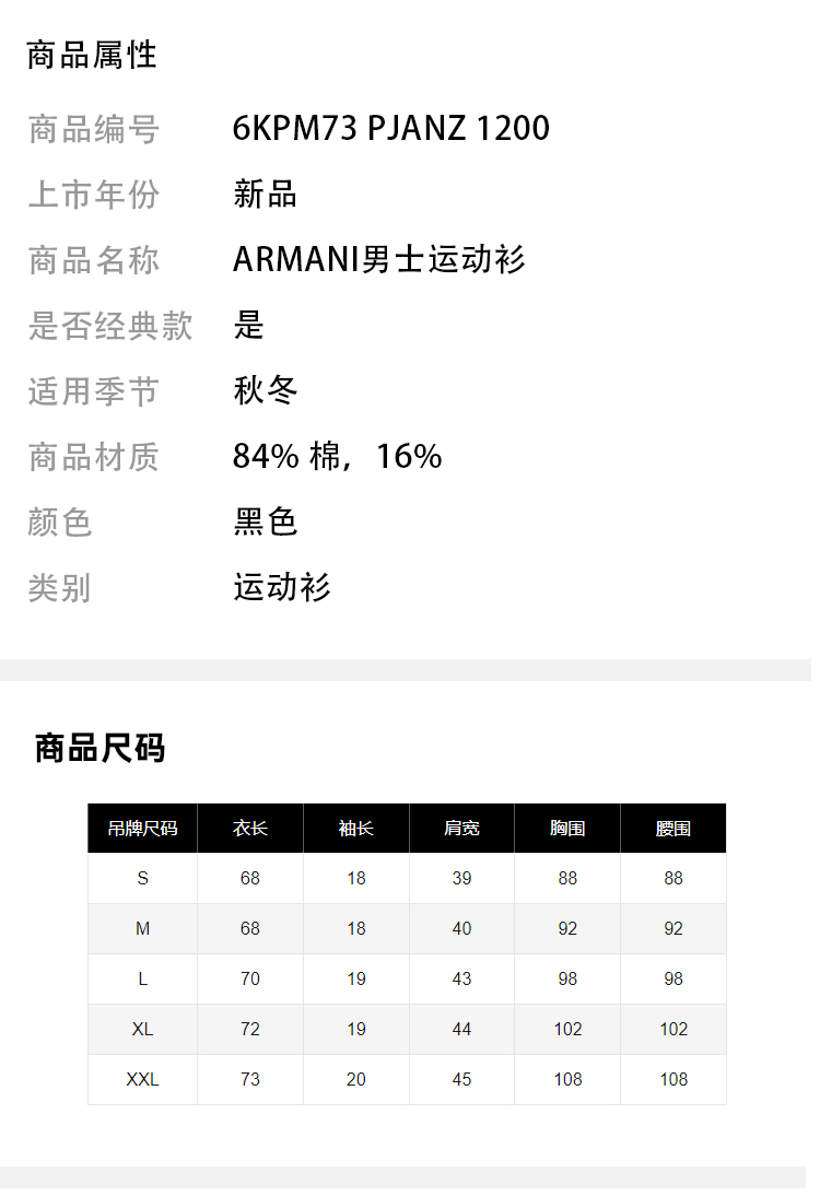 EMPORIO ARMANI EA7 阿玛尼 连帽 男士卫衣 黑色 6KPM73 PJANZ 1200