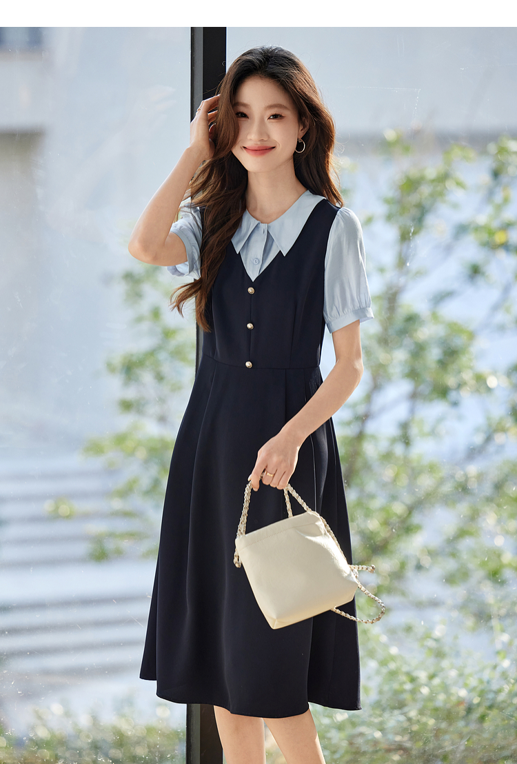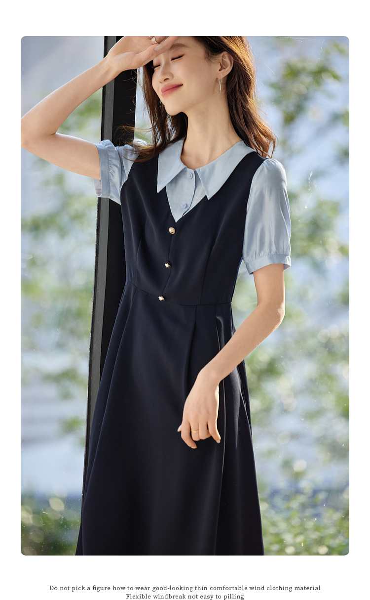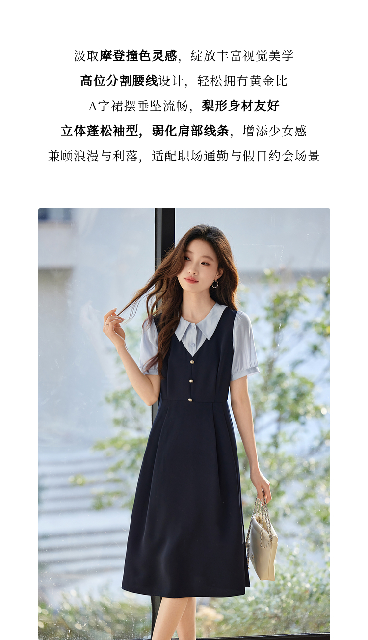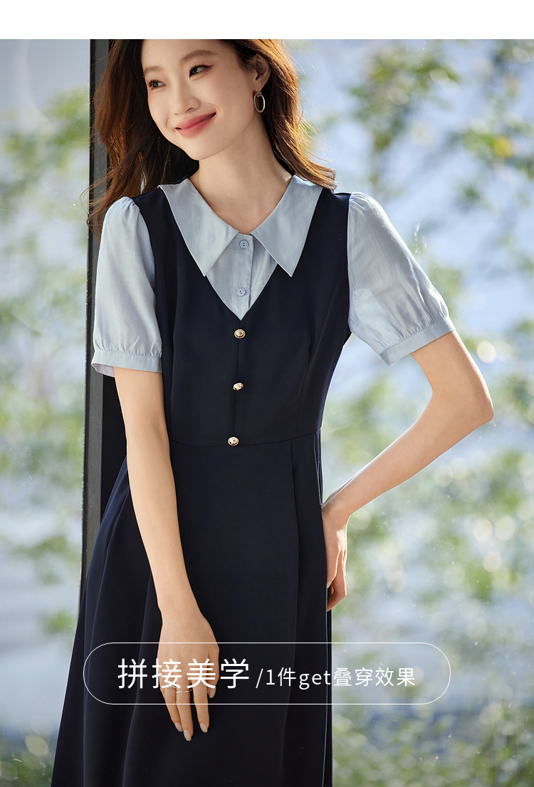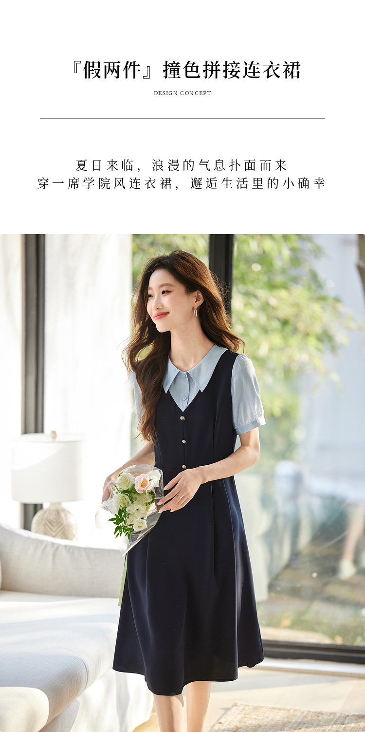 【初夏新品】熙世界假两件撞色短袖连衣裙女2025夏季新款通勤教资面试衬衫裙子