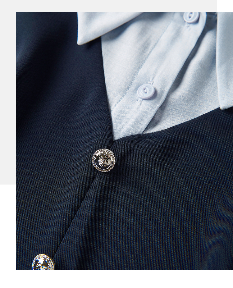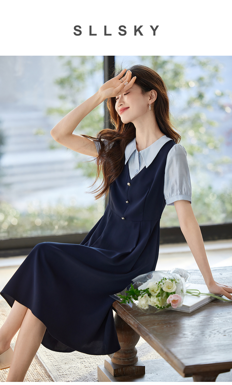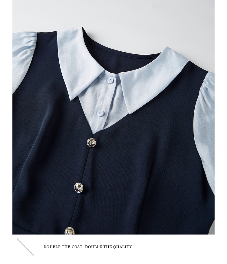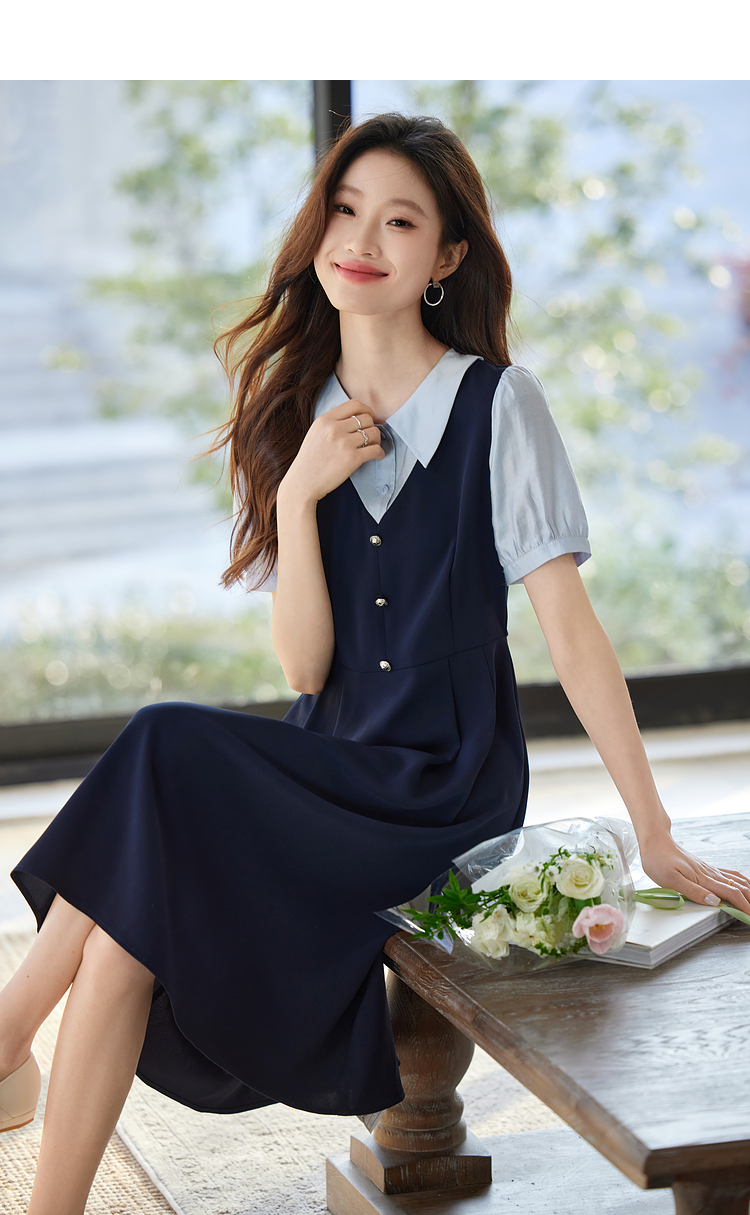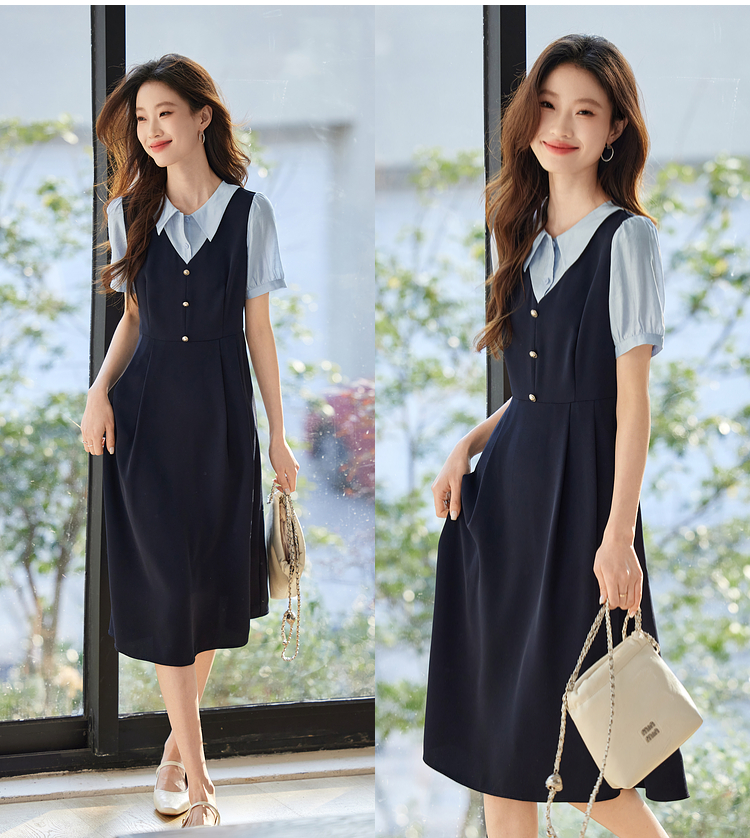 【初夏新品】熙世界假两件撞色短袖连衣裙女2025夏季新款通勤教资面试衬衫裙子