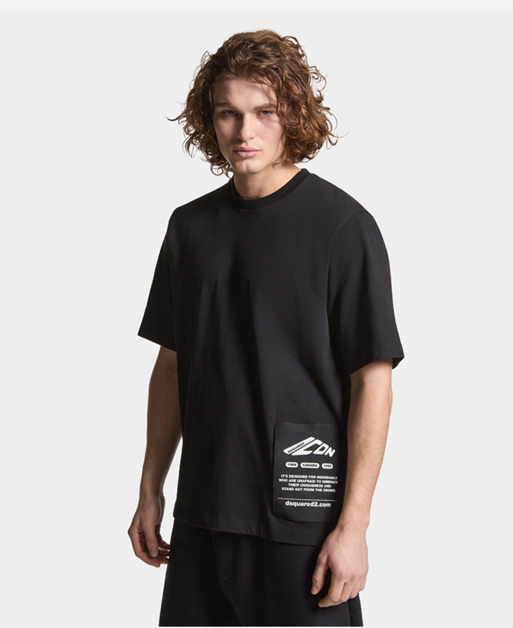 DSQUARED2 男士图标贴片棉质圆领短袖T恤 黑色 S79GC0101 D20033 900