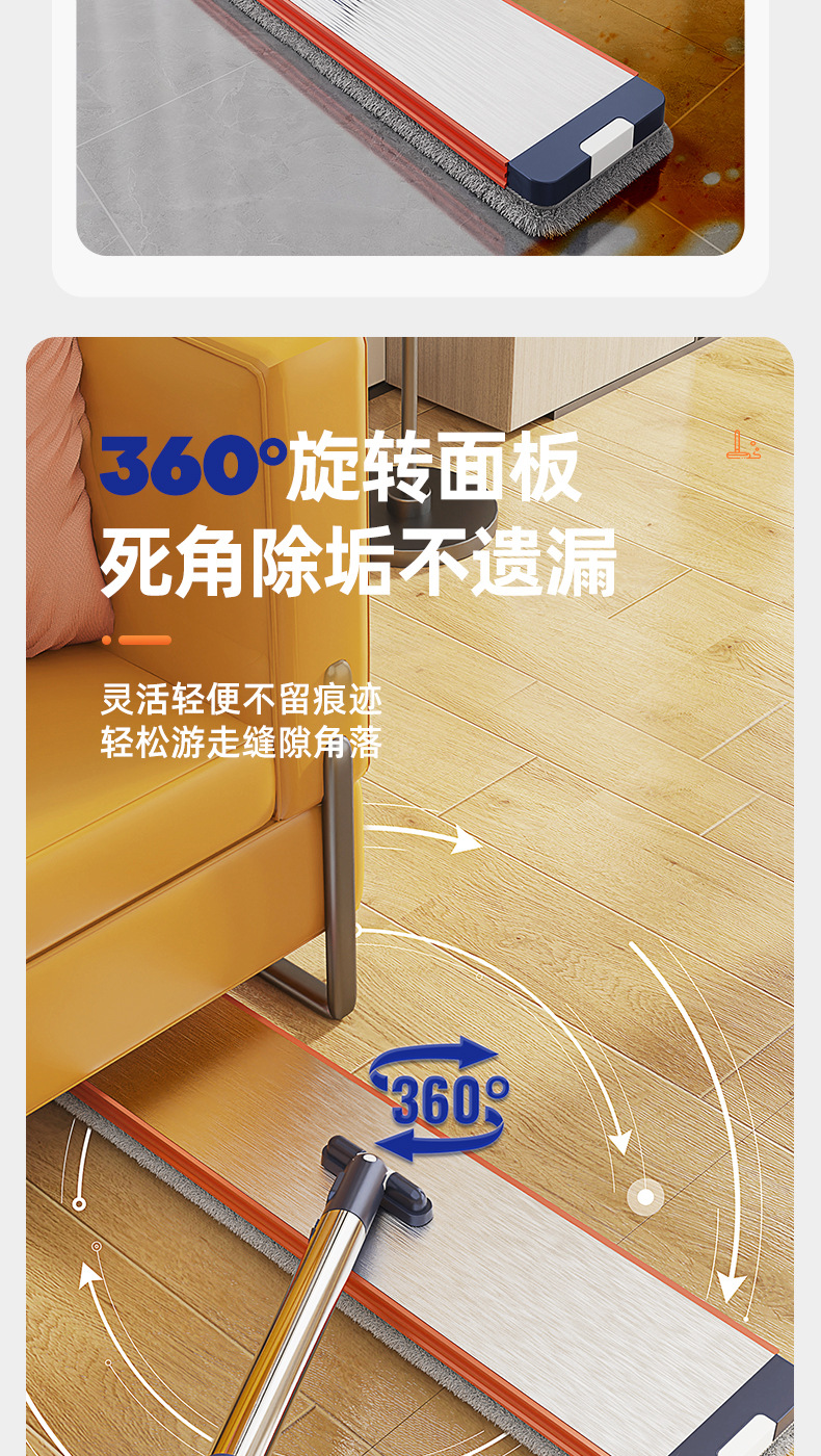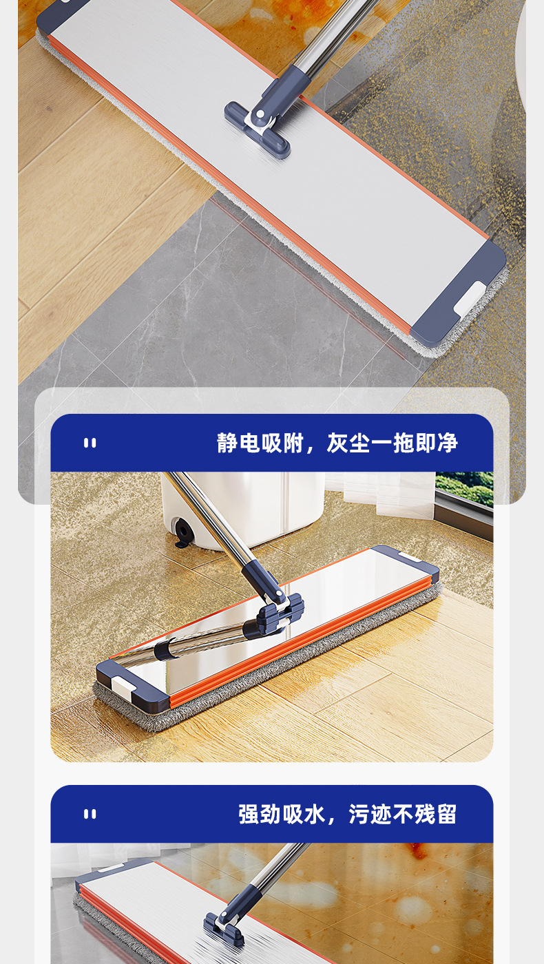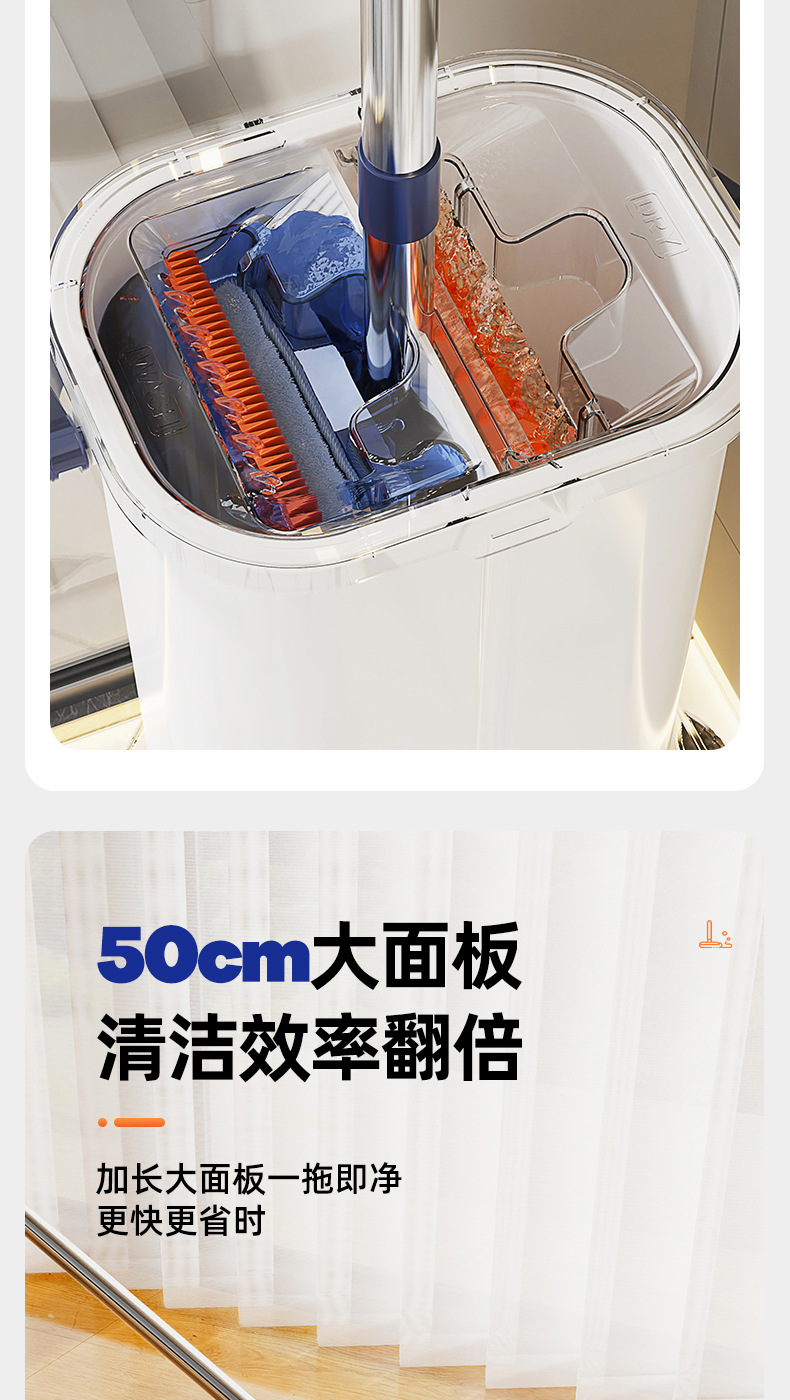 「升级双刮桶!360°旋转拉丝面板」高颜值免手洗家用拖把懒人干湿分离两用 居家日用拖把拖布桶套装一拖净拖地清洁工具