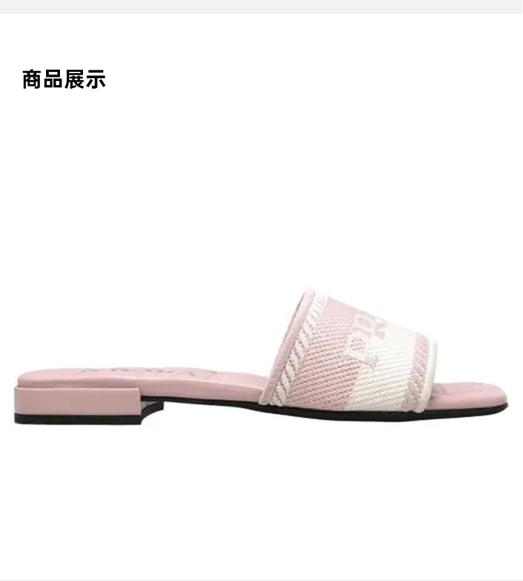 PRADA 普拉达 女士字母徽标刺绣布休闲拖鞋 混色 1XX612 3LKB F0PFG