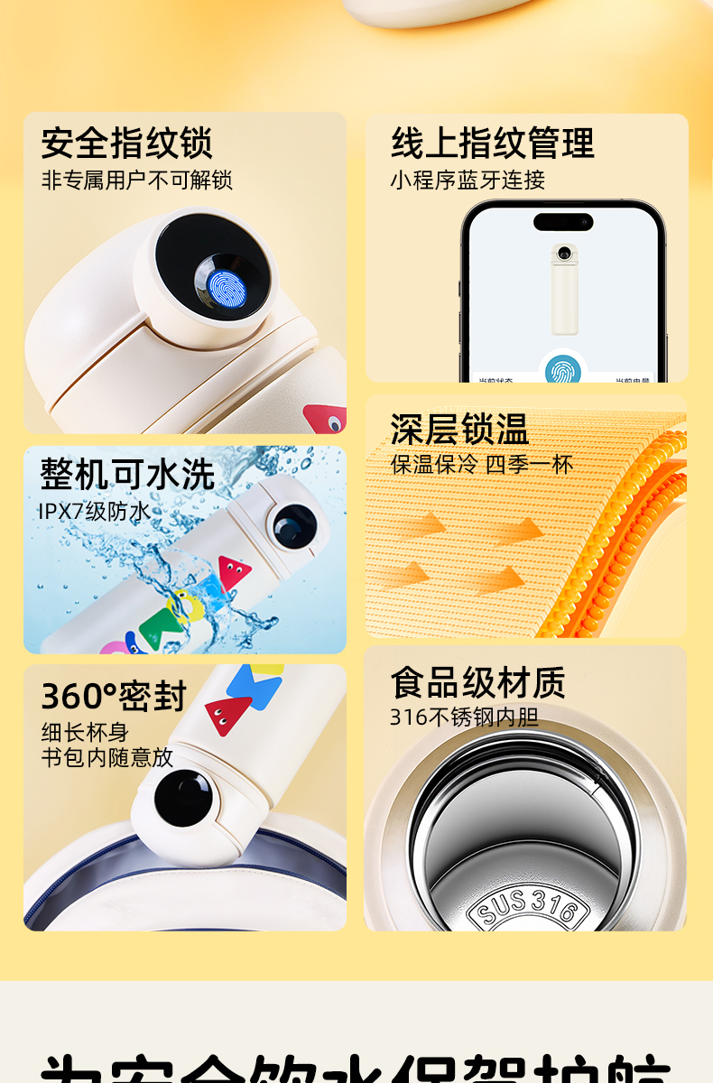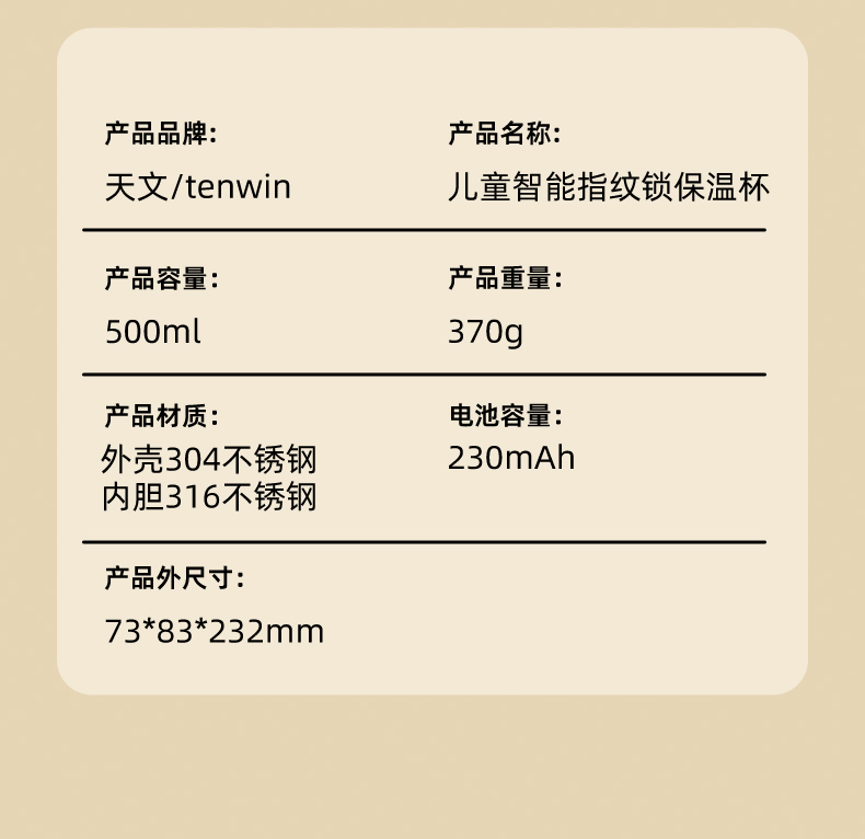天文指纹保温杯学生上学专用便携不锈钢儿童饮水杯2960