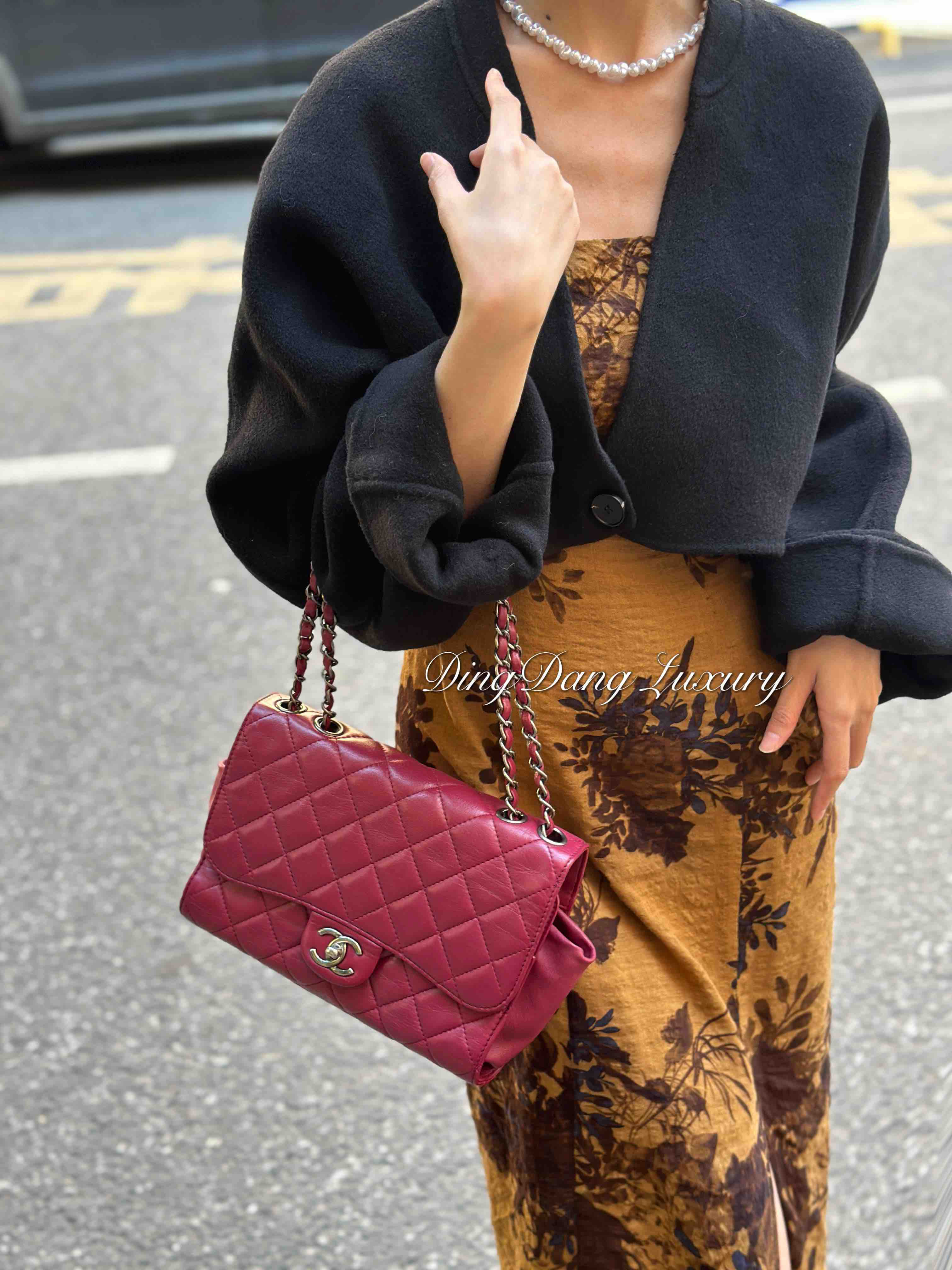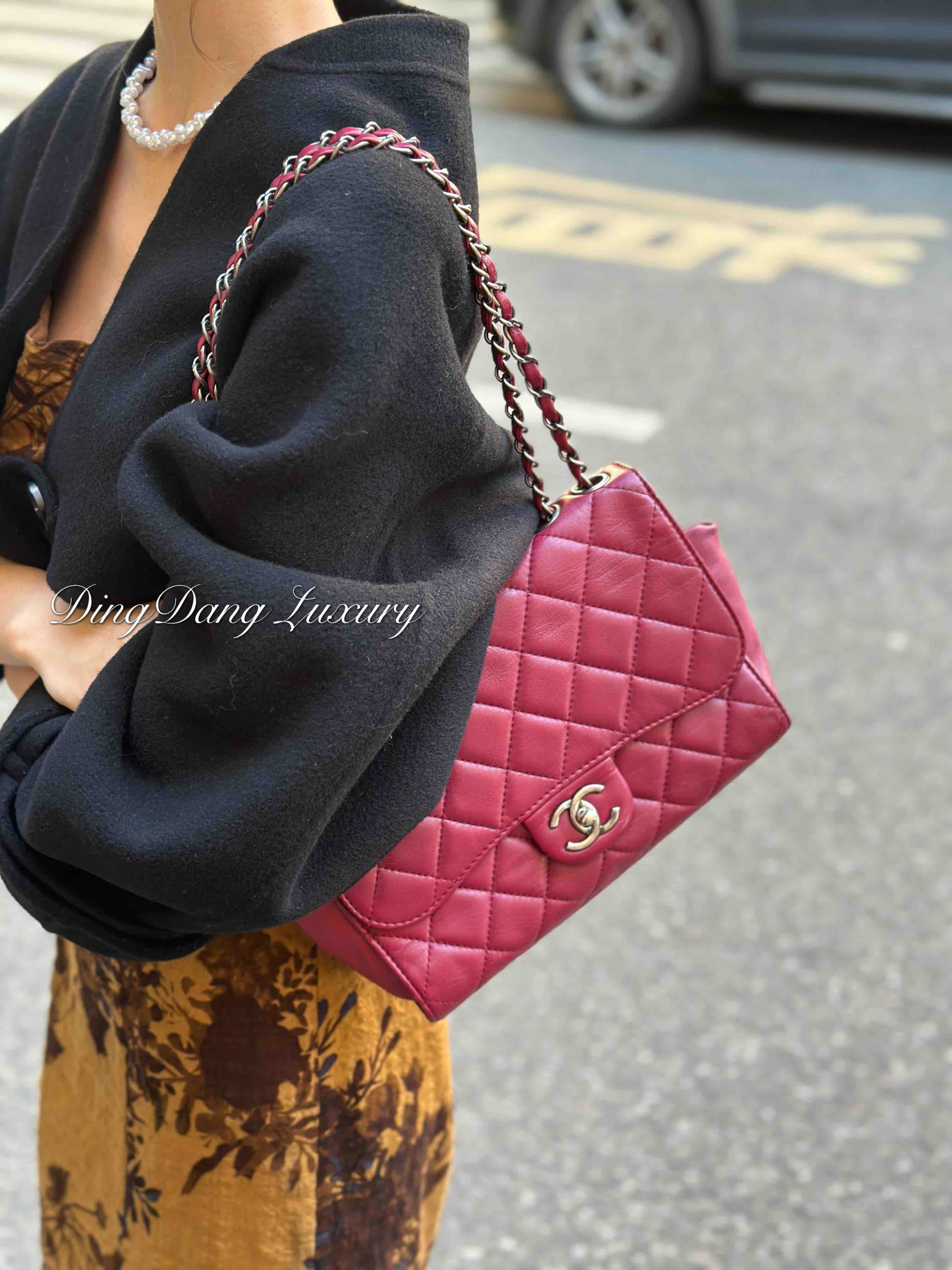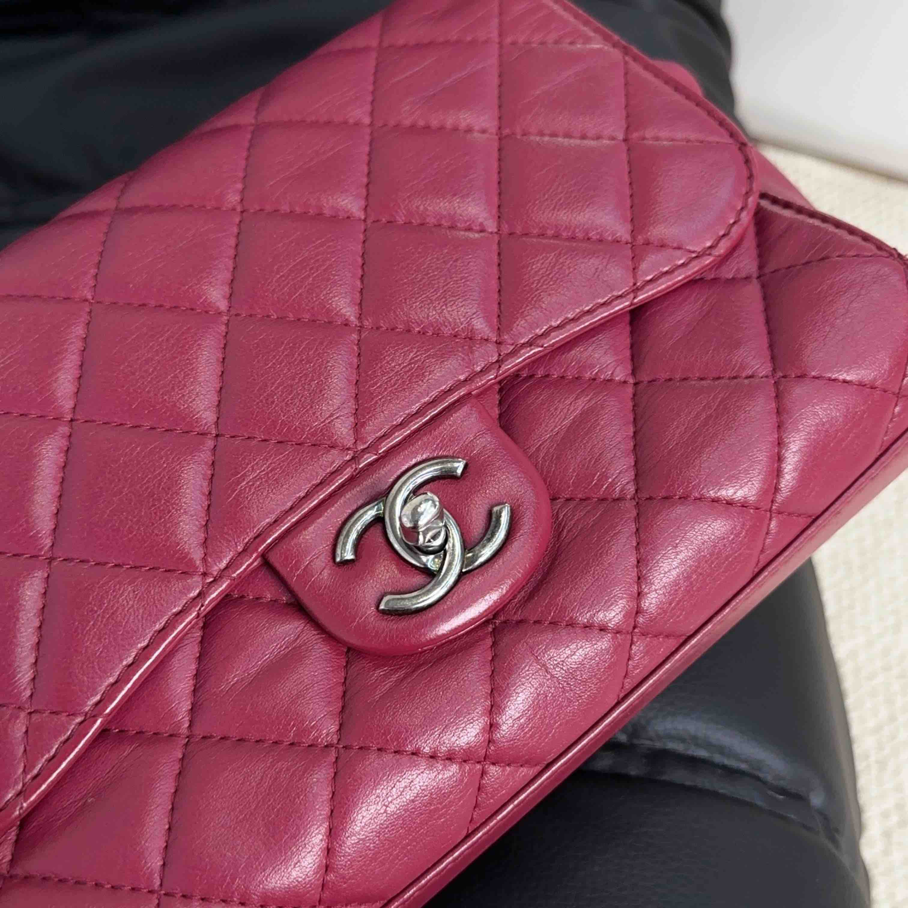 【商品详情】正品二手 Chanel cf 衍生款 树莓紫 羊皮 翻盖 手提 链条包😘95新 24×35 镭射20开。内里正常使用痕迹 包身做过养护 状态不错