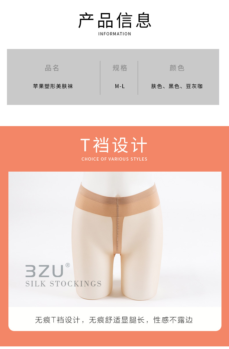24夏季新女苹果臀透肤塑形轻薄美肤袜天鹅绒防脱丝耐穿丝袜