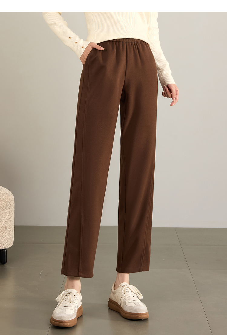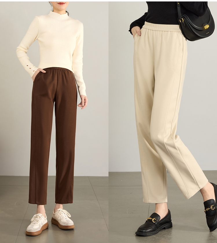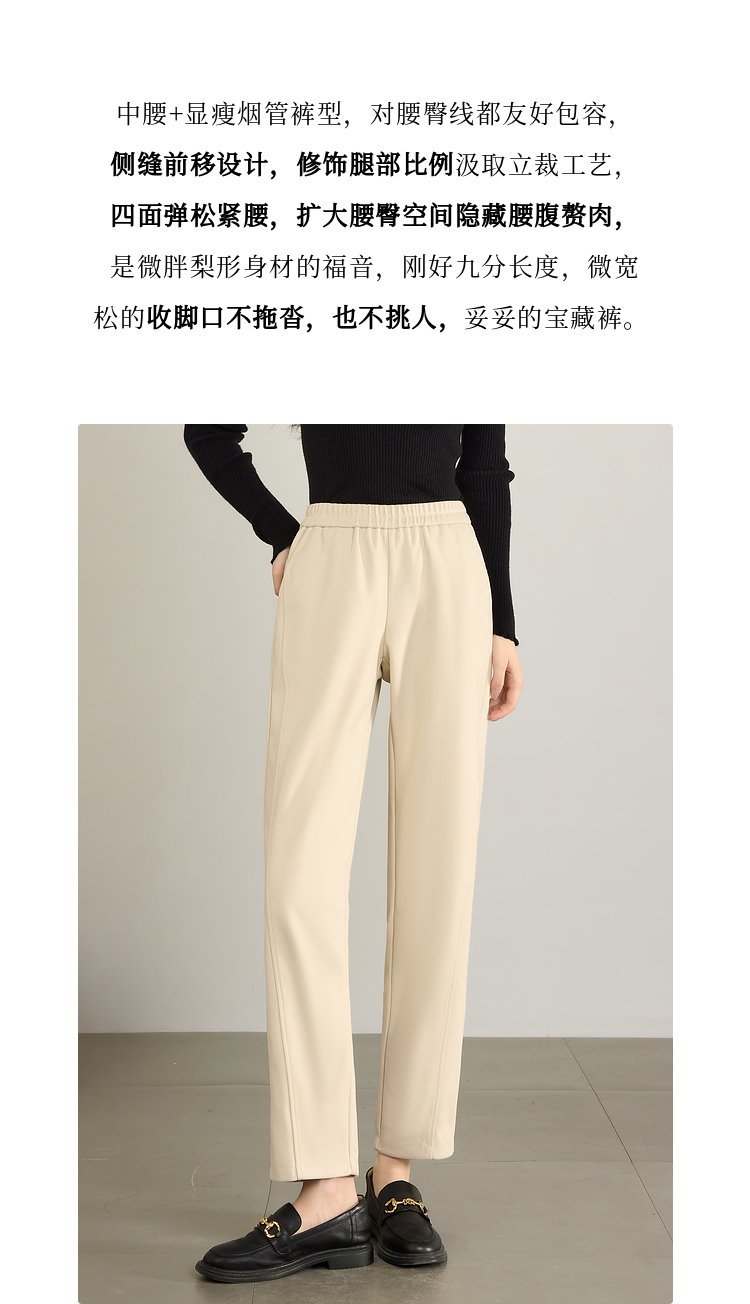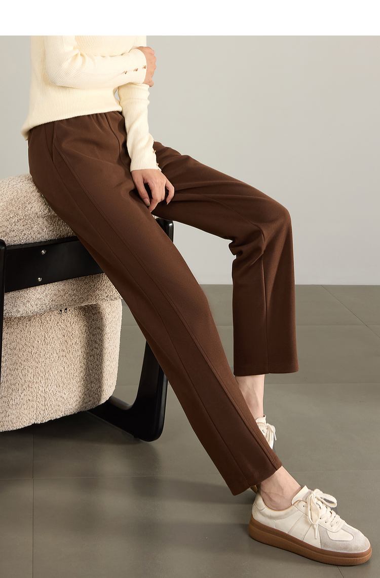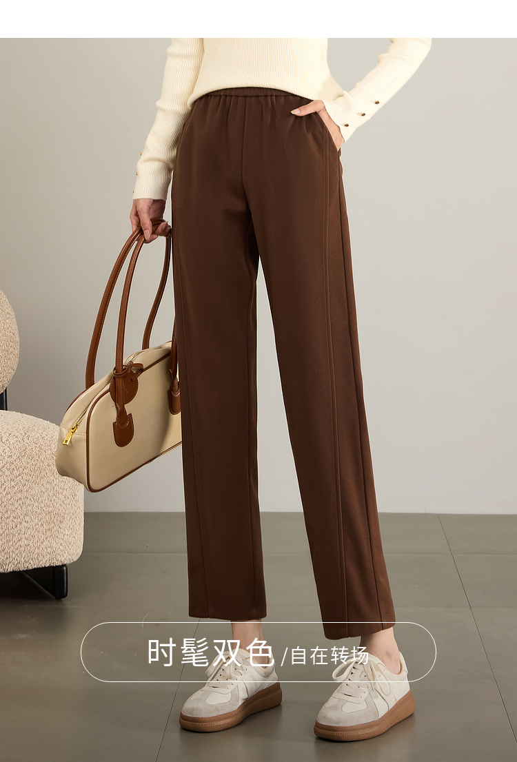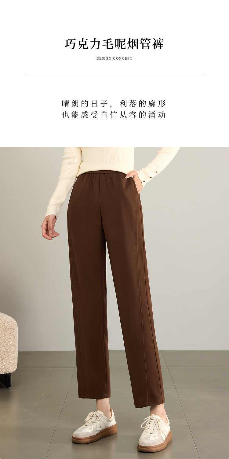 【年终特卖】熙世界毛呢裤子女秋冬2025新款松紧腰宽松直筒裤九分休闲烟管裤