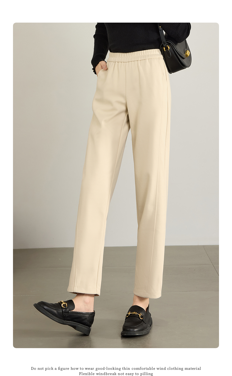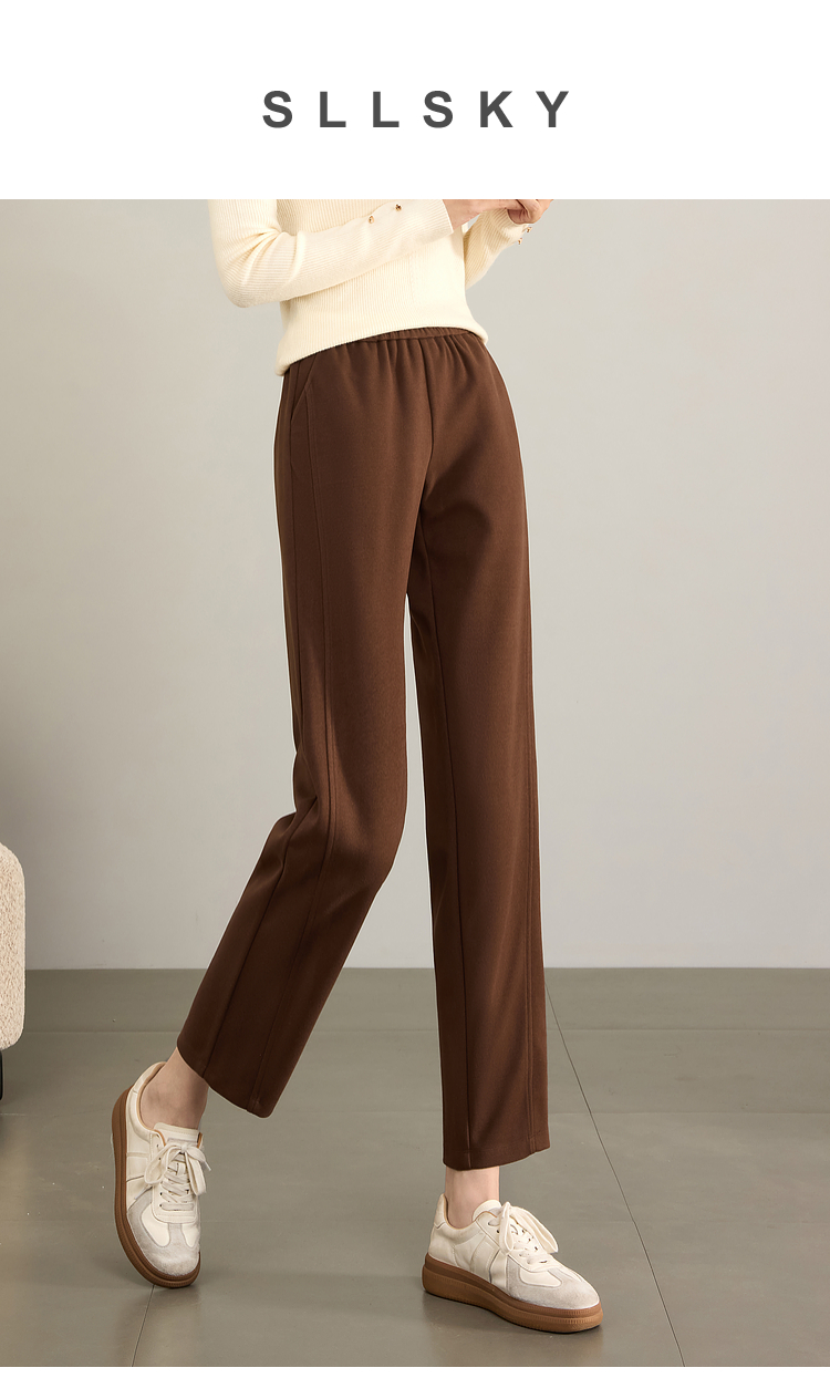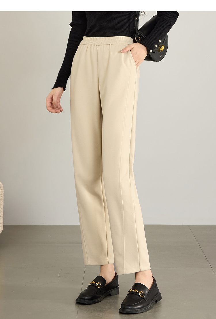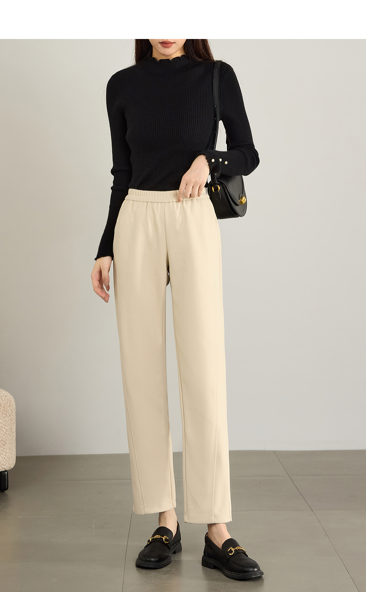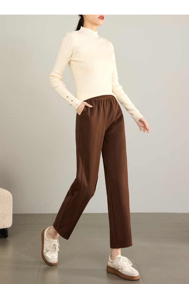 【年终特卖】熙世界毛呢裤子女秋冬2025新款松紧腰宽松直筒裤九分休闲烟管裤