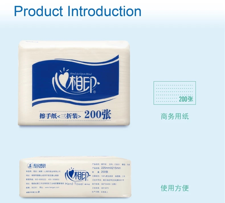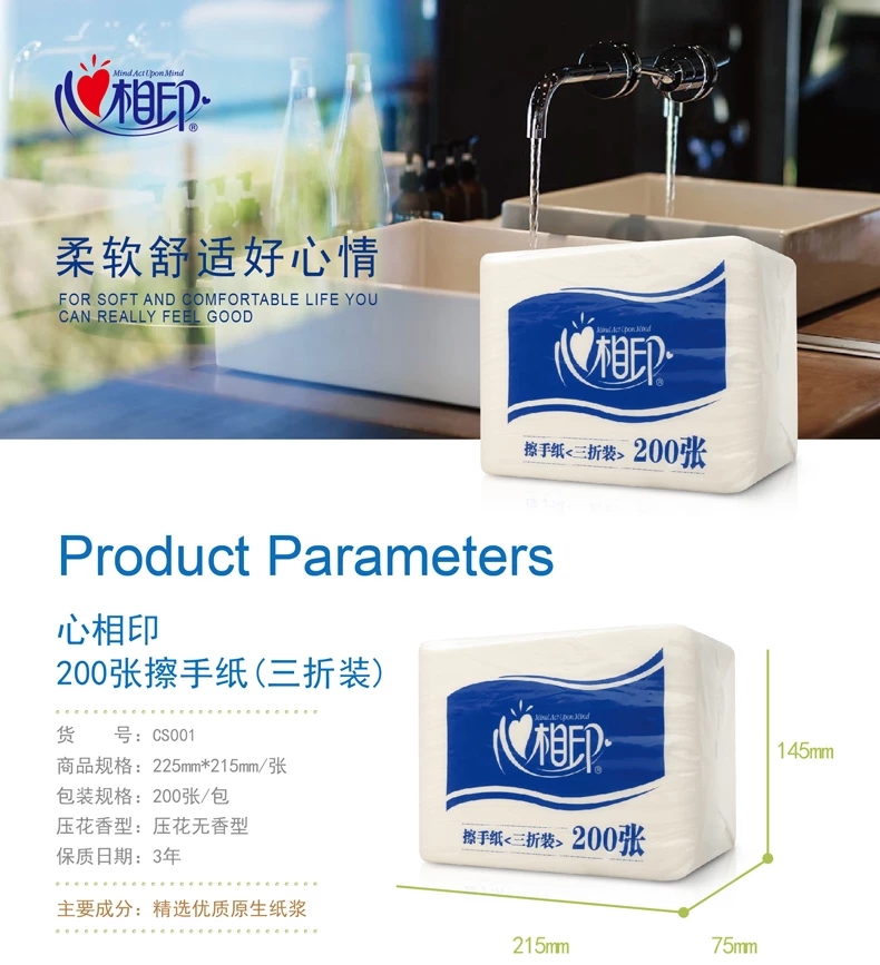 【心相印专区】心相印蓝馨擦手纸200张 1层 擦手纸CS001 225*215MM 【21包/袋】
