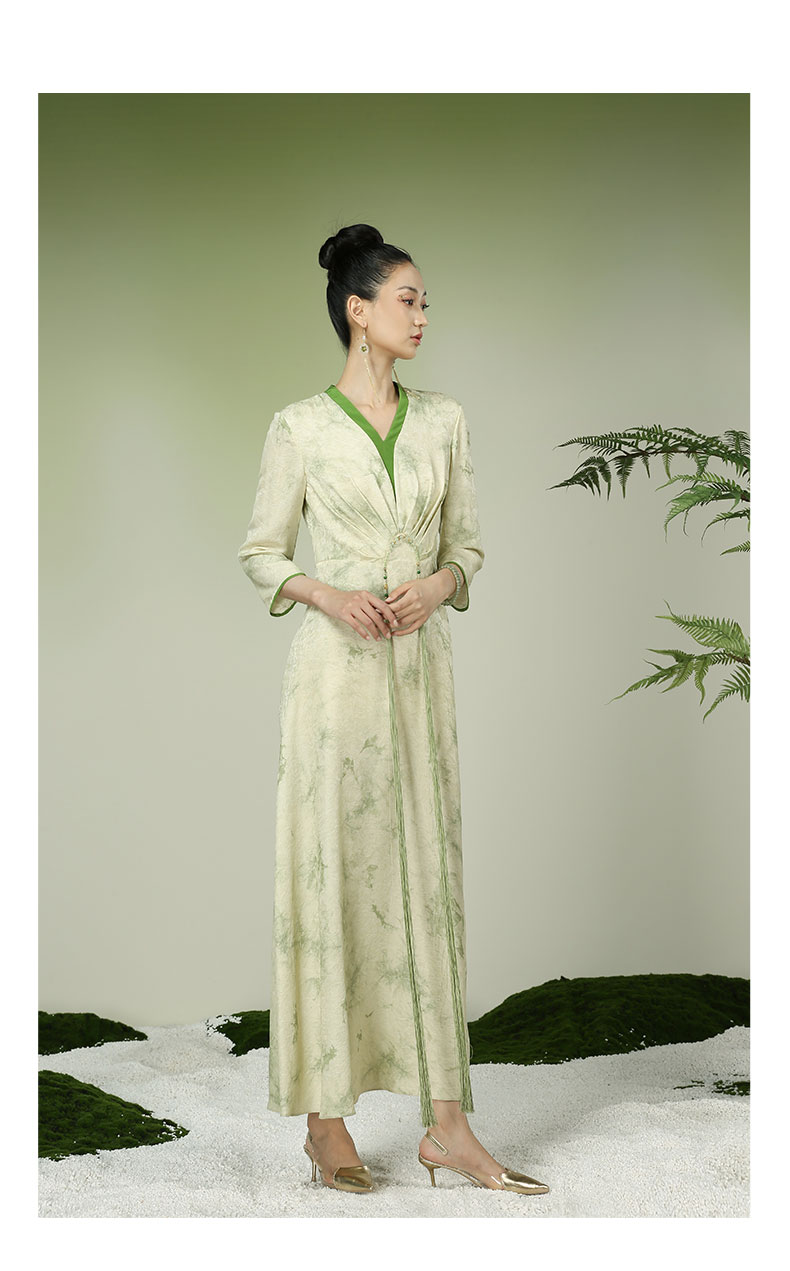 吉祥衣家新中式国风高定真丝气质显瘦修身女装月出佼人僚连衣裙