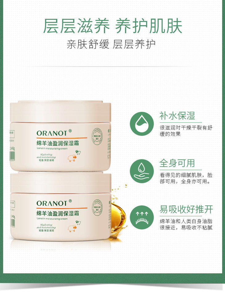 3瓶优惠装!【无限回购的全家可用的面霜】奥兰诺澳洲绵羊油面霜 绵羊脂维E面霜 补水保湿 手足皲裂 秋冬滋润不油腻 全身可用 140g