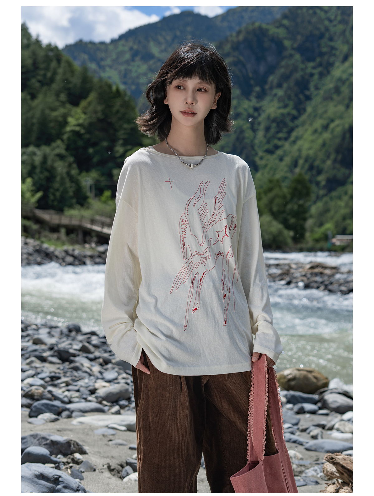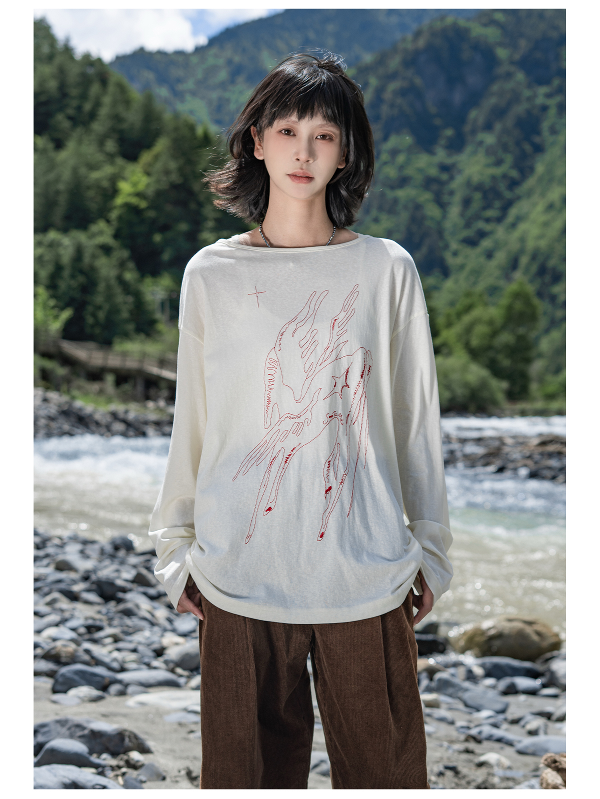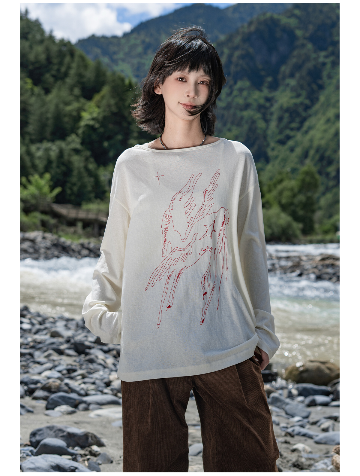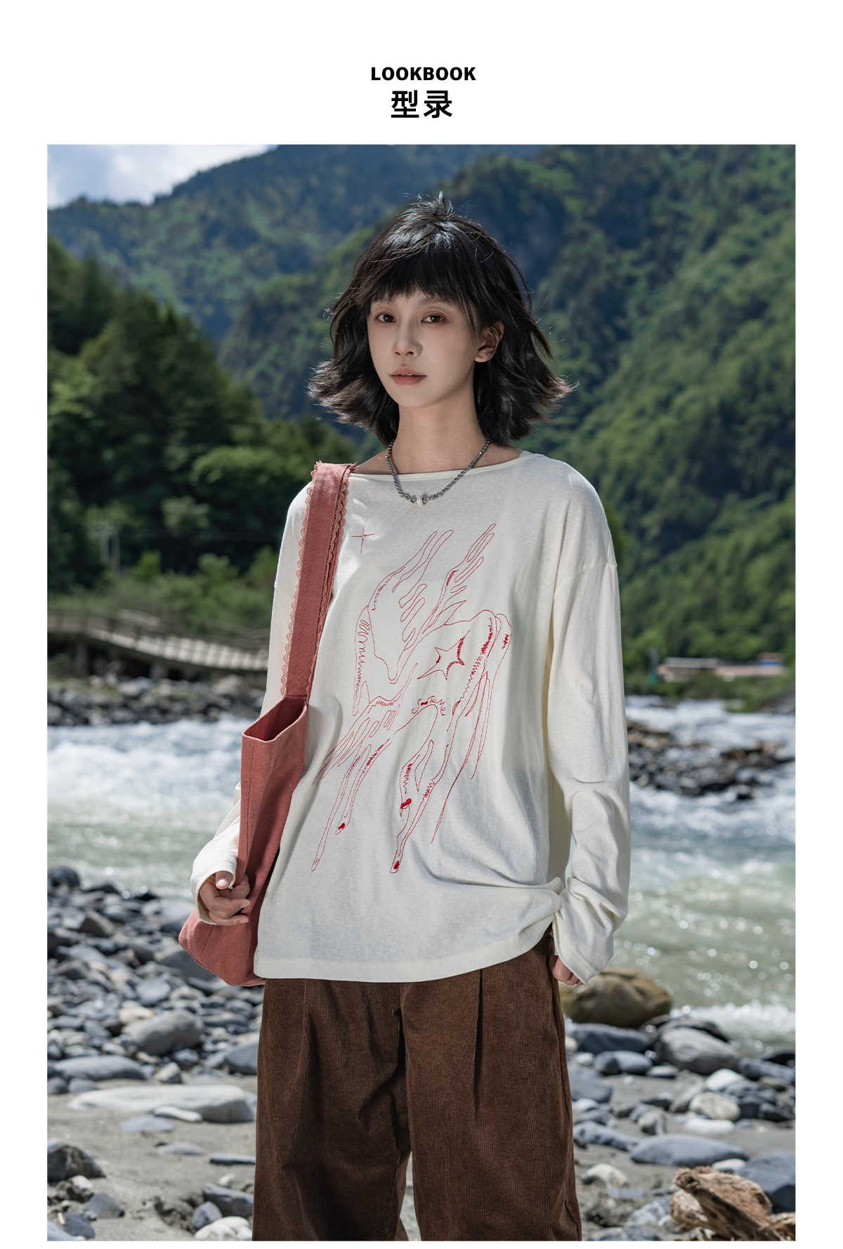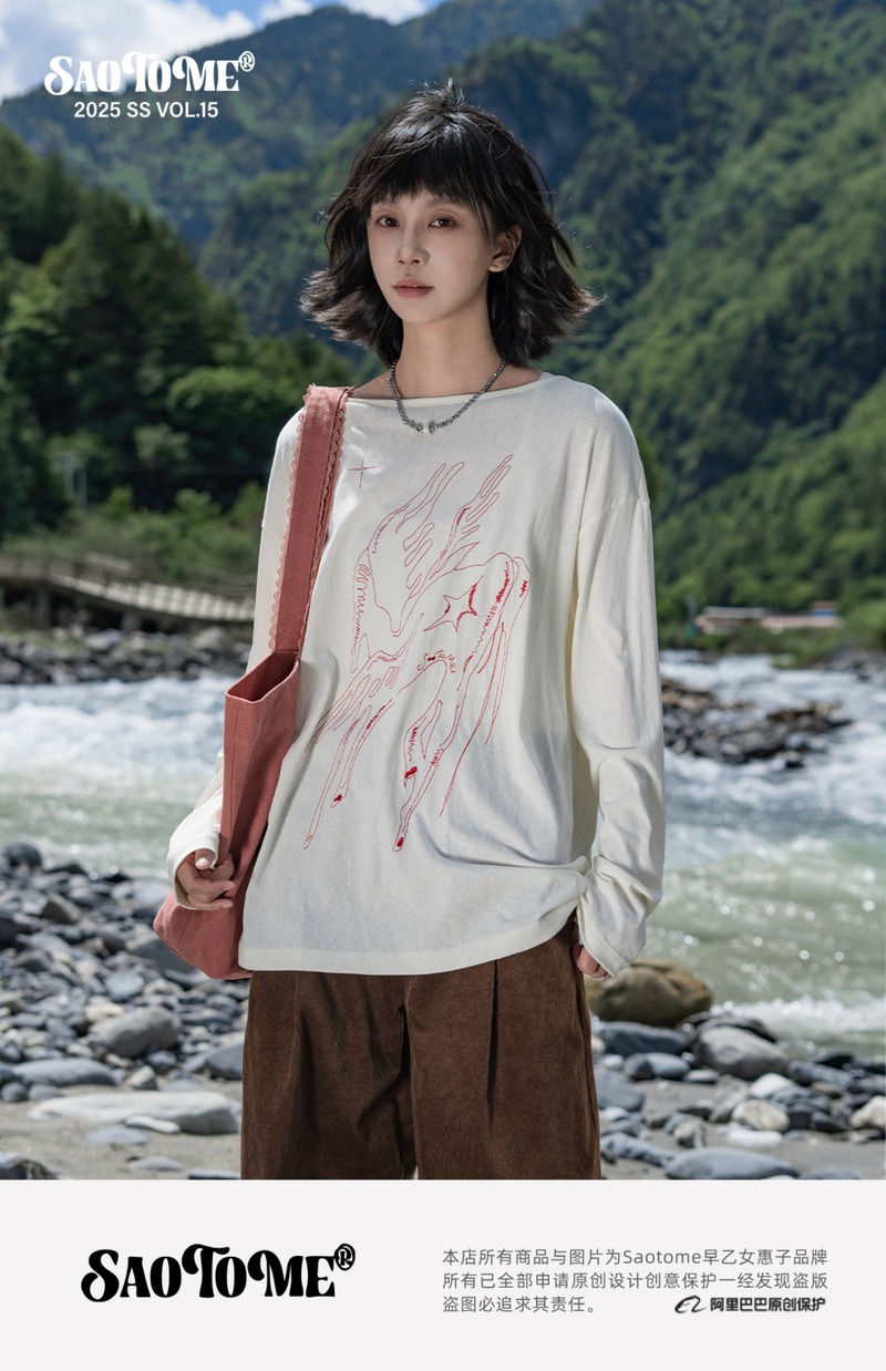 早乙女惠子saotome/STMTX13709/红马刺绣每罩衫