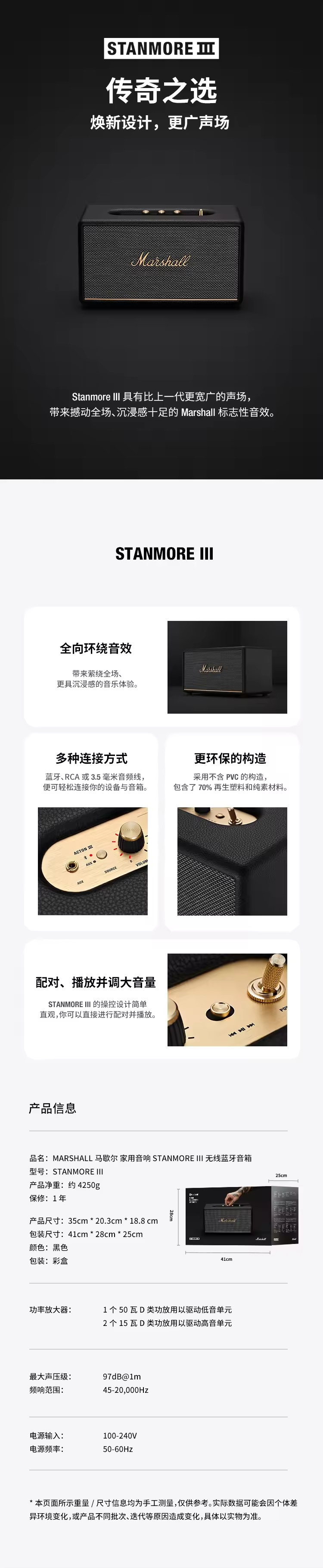 MARSHALL马歇尔 家用音响 STANMORE III 无线蓝牙音箱