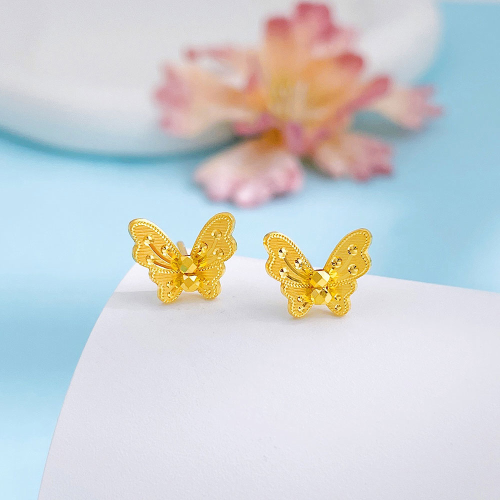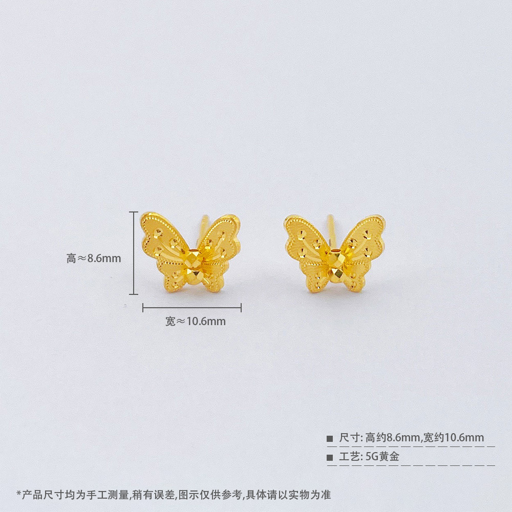 【限时克减150元】足金999 #CNC (足金999字印)5G黄金CNC蹦迪珠蝴蝶耳钉(5GES00877)预售产品下单后不退款不退货不换货不补差价