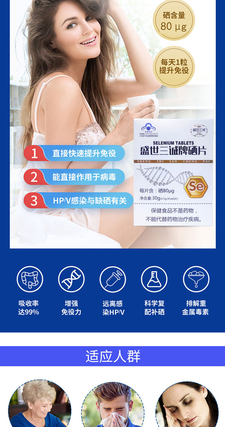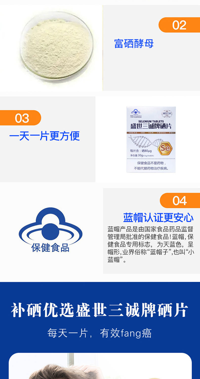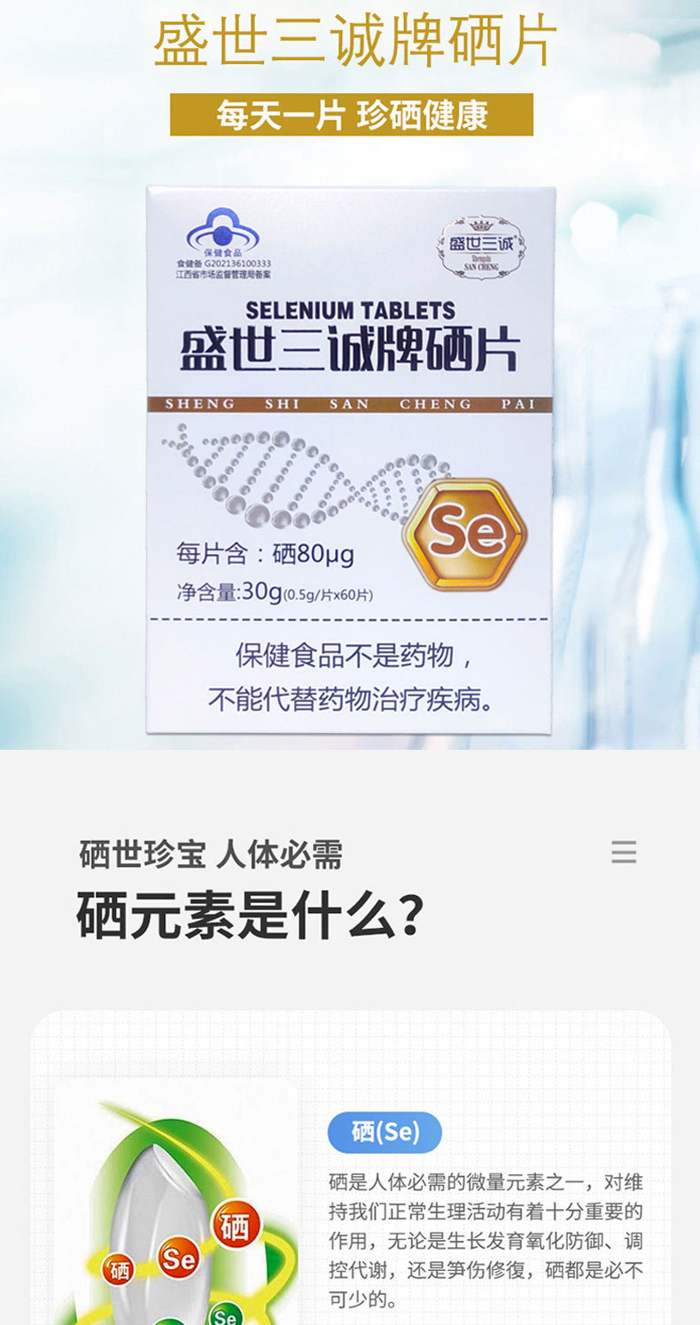 【提升免疫 预防常备】补硒片 免疫好更安心 每天一片珍硒健康 蓝帽认证增强抵抗 富硒酵母压片富硒片 30g/瓶(0.5g/片*60片)