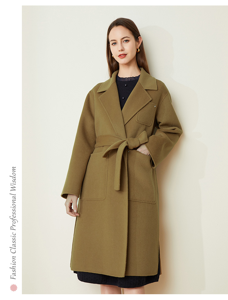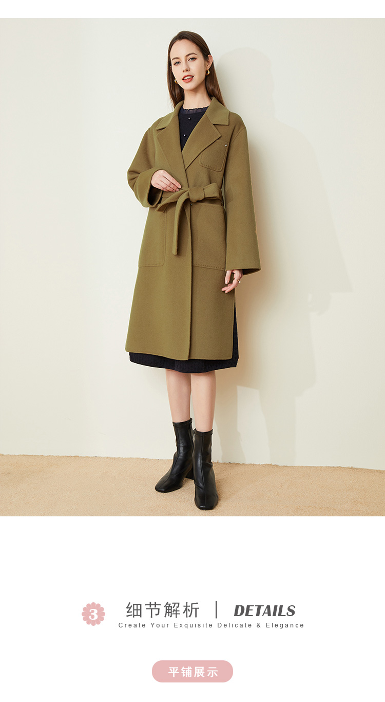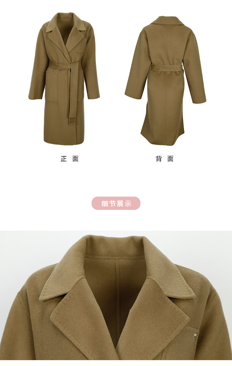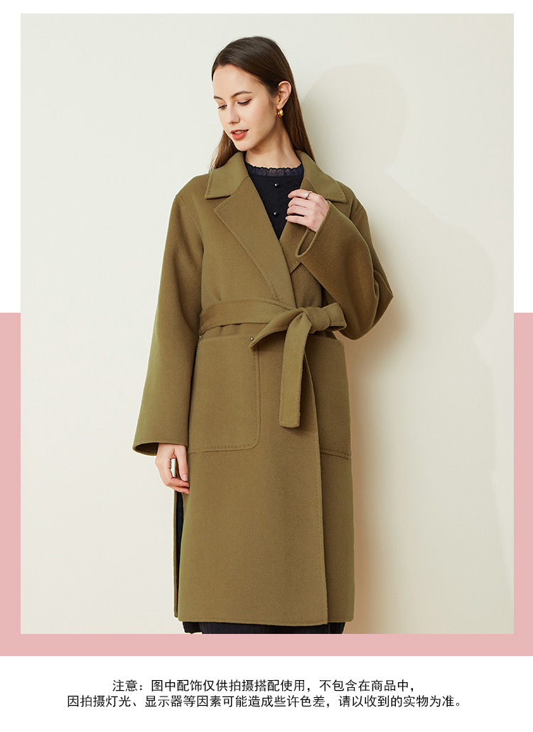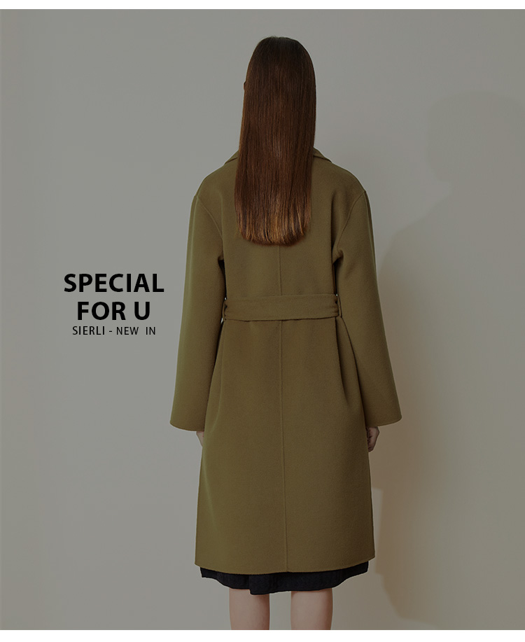 LH9K3斯尔丽2021瑟俪秋冬新款系带式纯色大气慵懒风简约羊毛大衣外套女