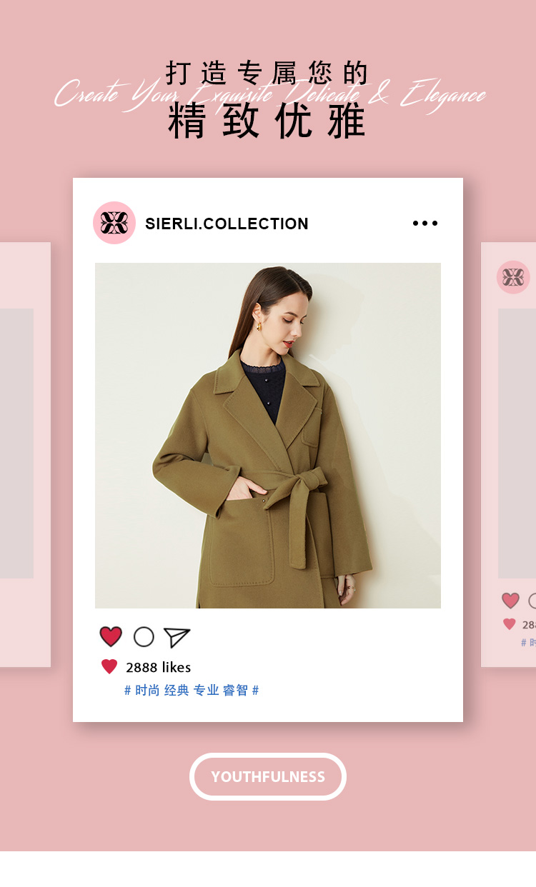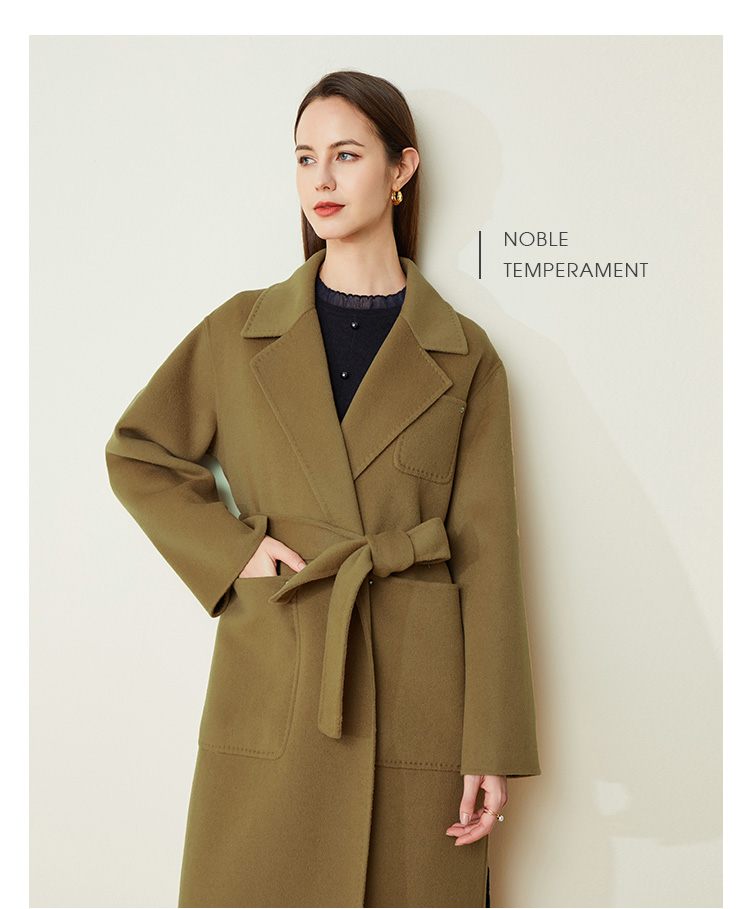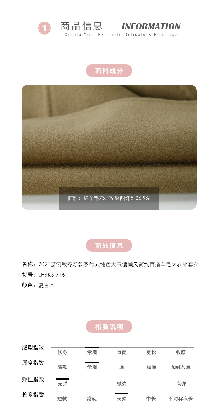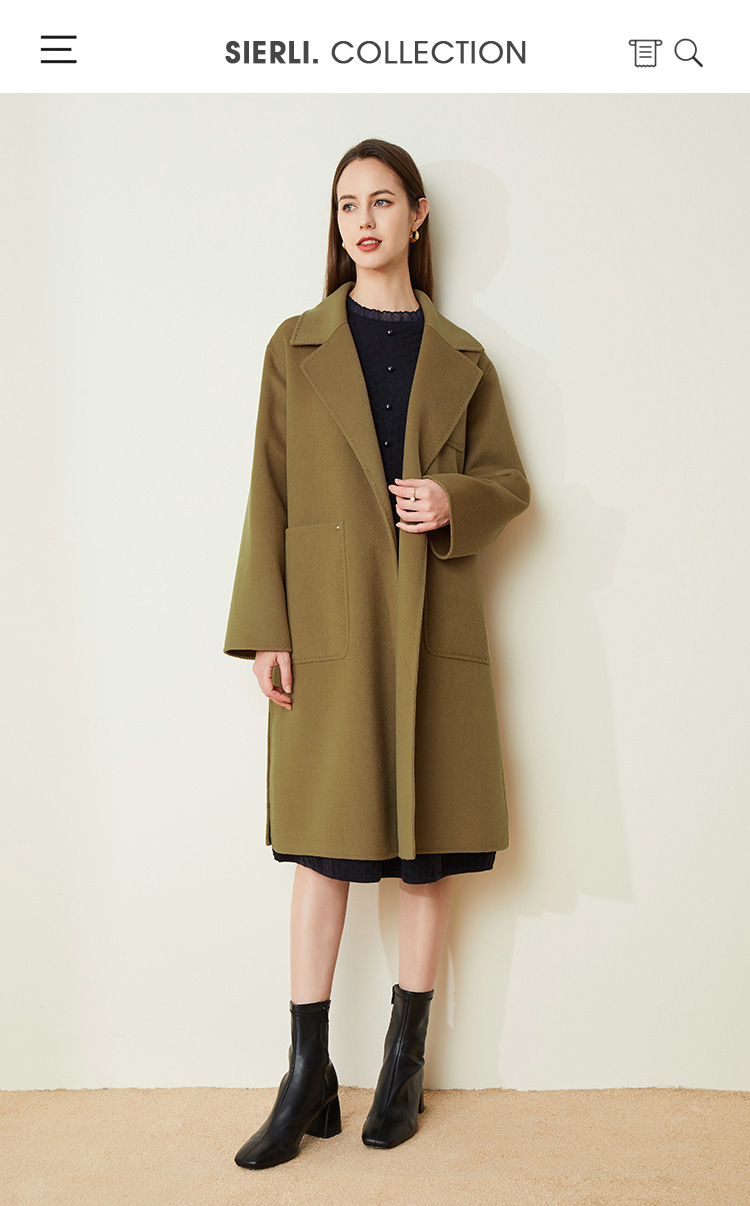 LH9K3斯尔丽2021瑟俪秋冬新款系带式纯色大气慵懒风简约羊毛大衣外套女