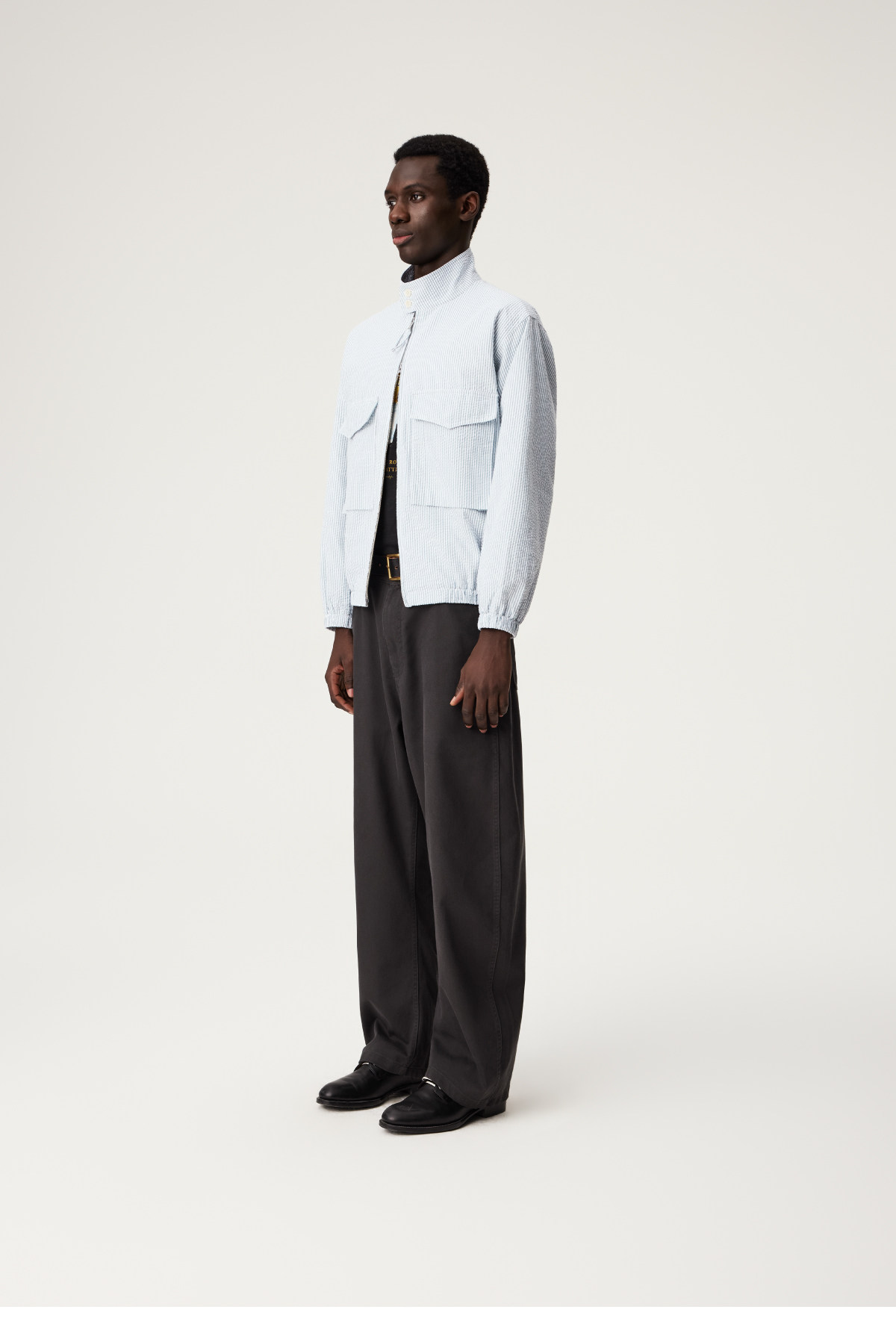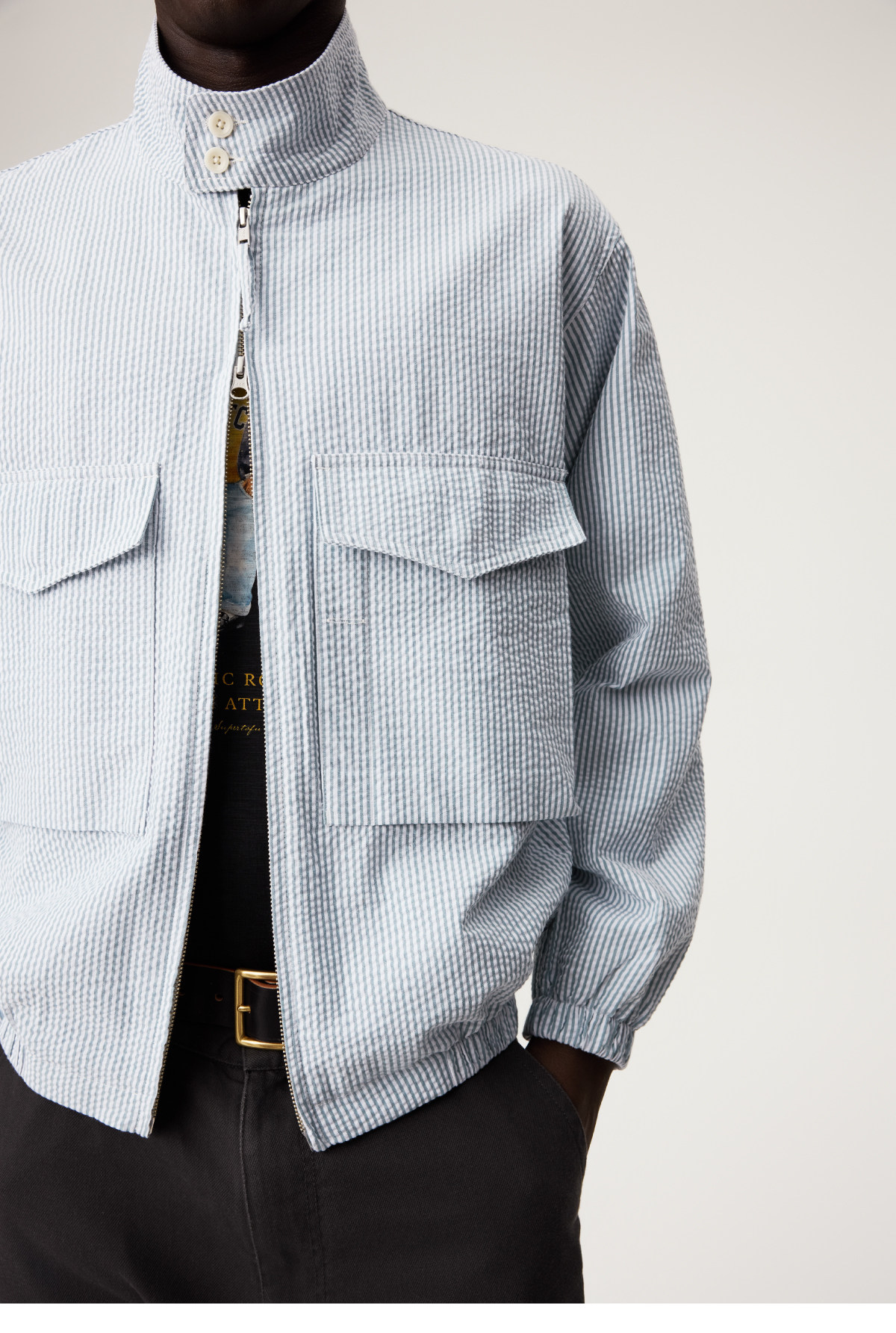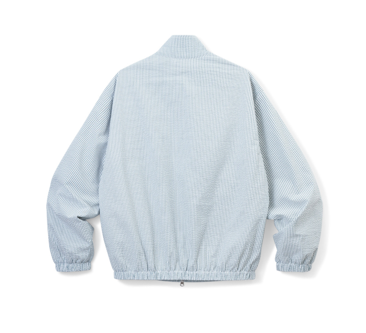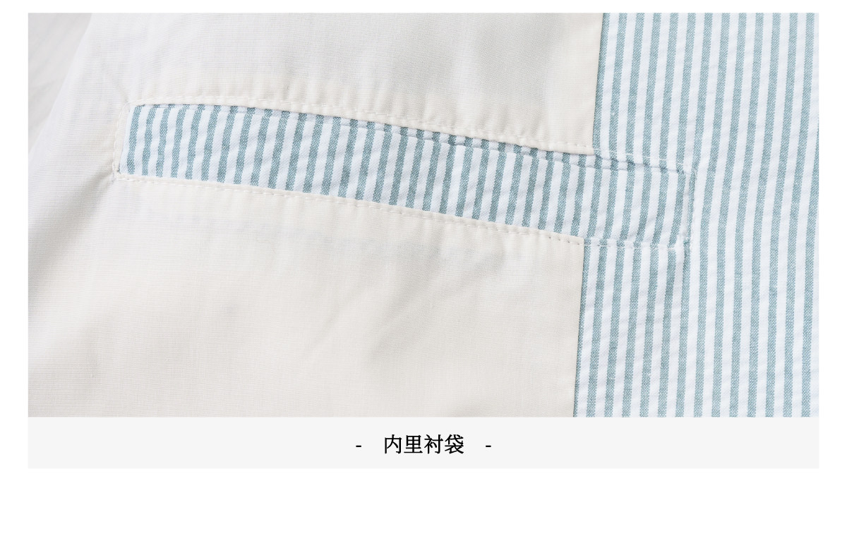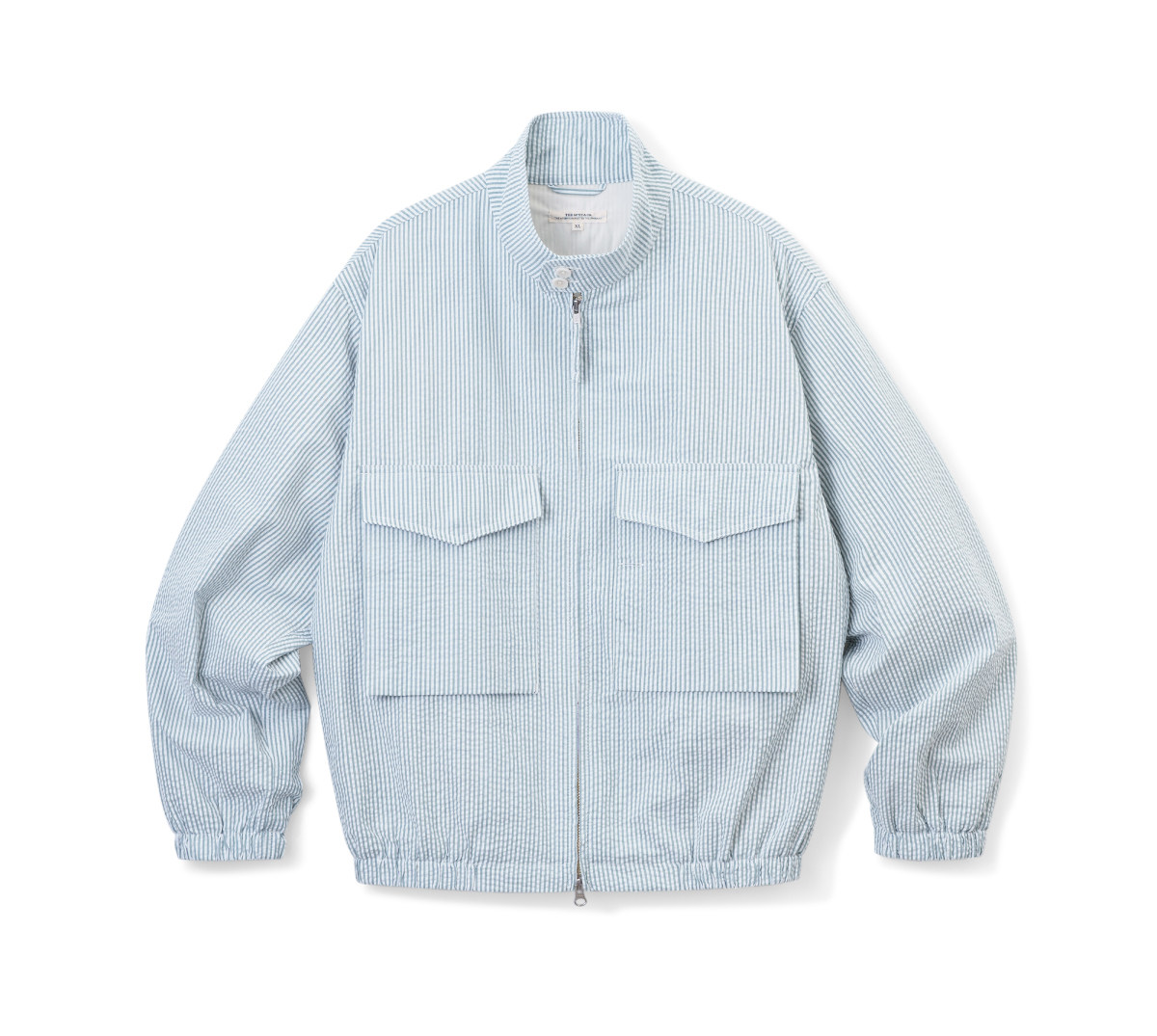 SUPERTOFU(SPTF)/CMKS-SS26-J298/泡泡纱肌理感 立领双口袋 绿色条纹 拉链衬衫外套