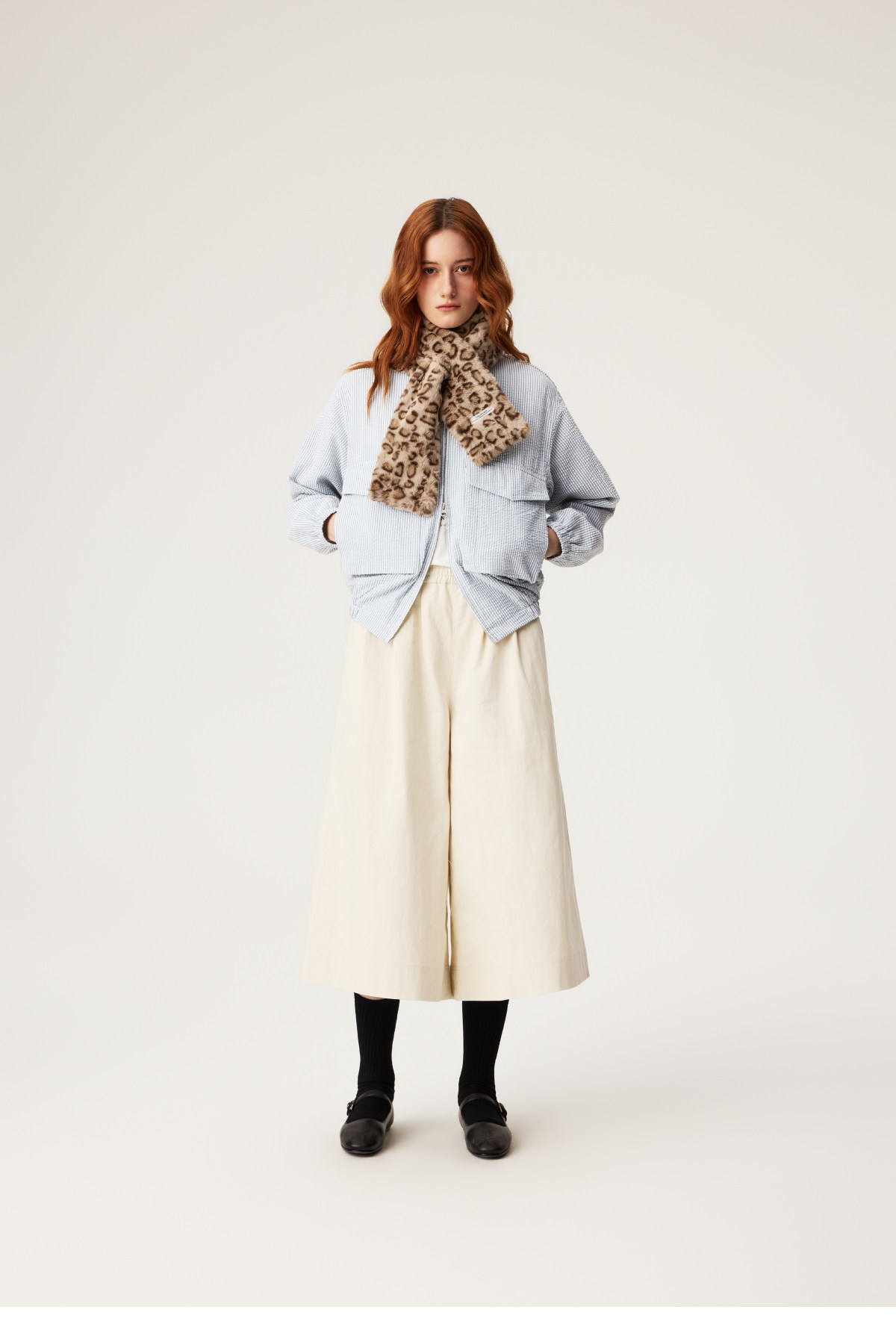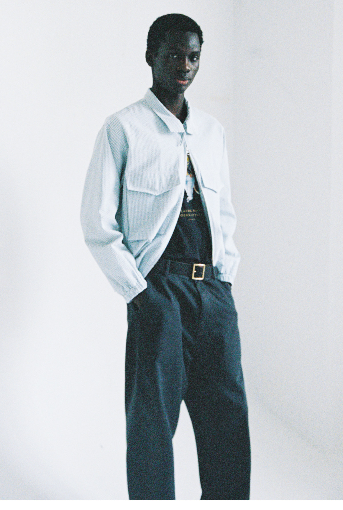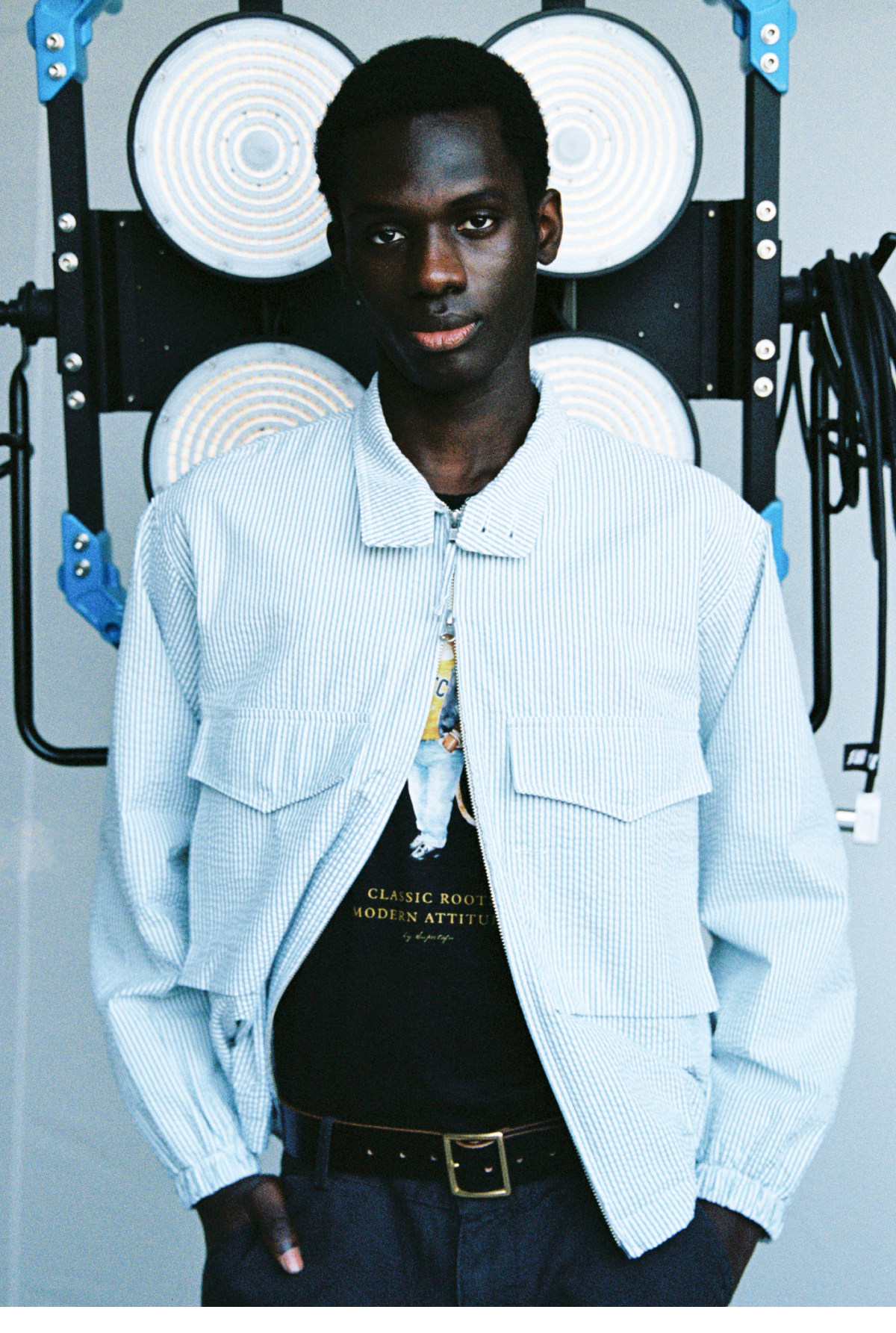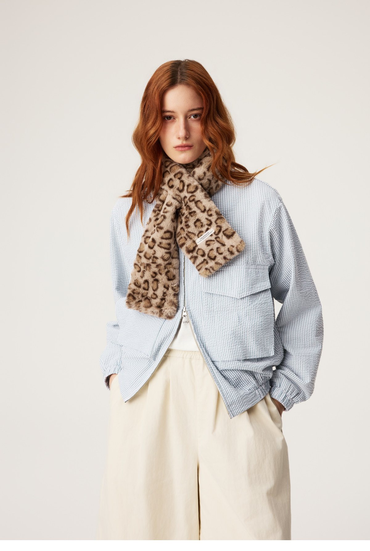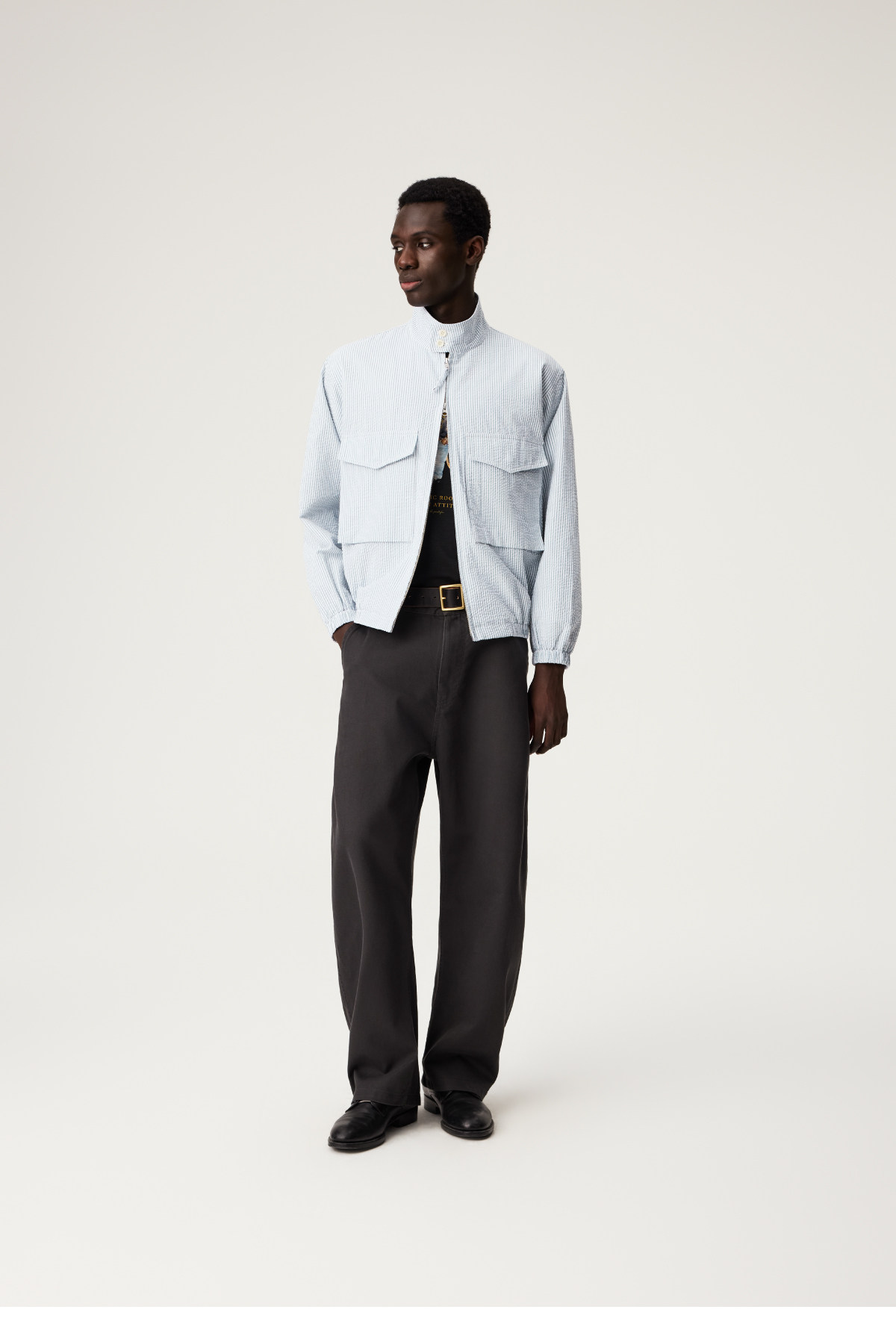 SUPERTOFU(SPTF)/CMKS-SS26-J298/泡泡纱肌理感 立领双口袋 绿色条纹 拉链衬衫外套