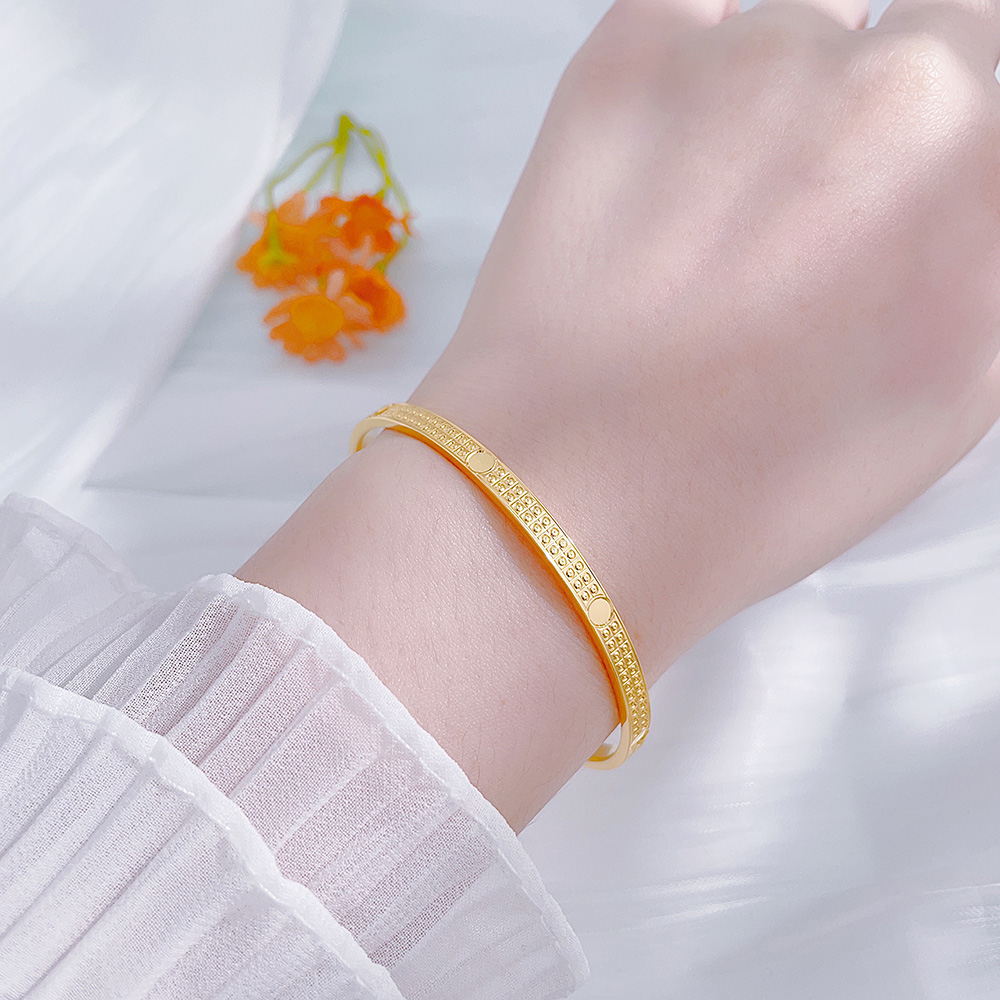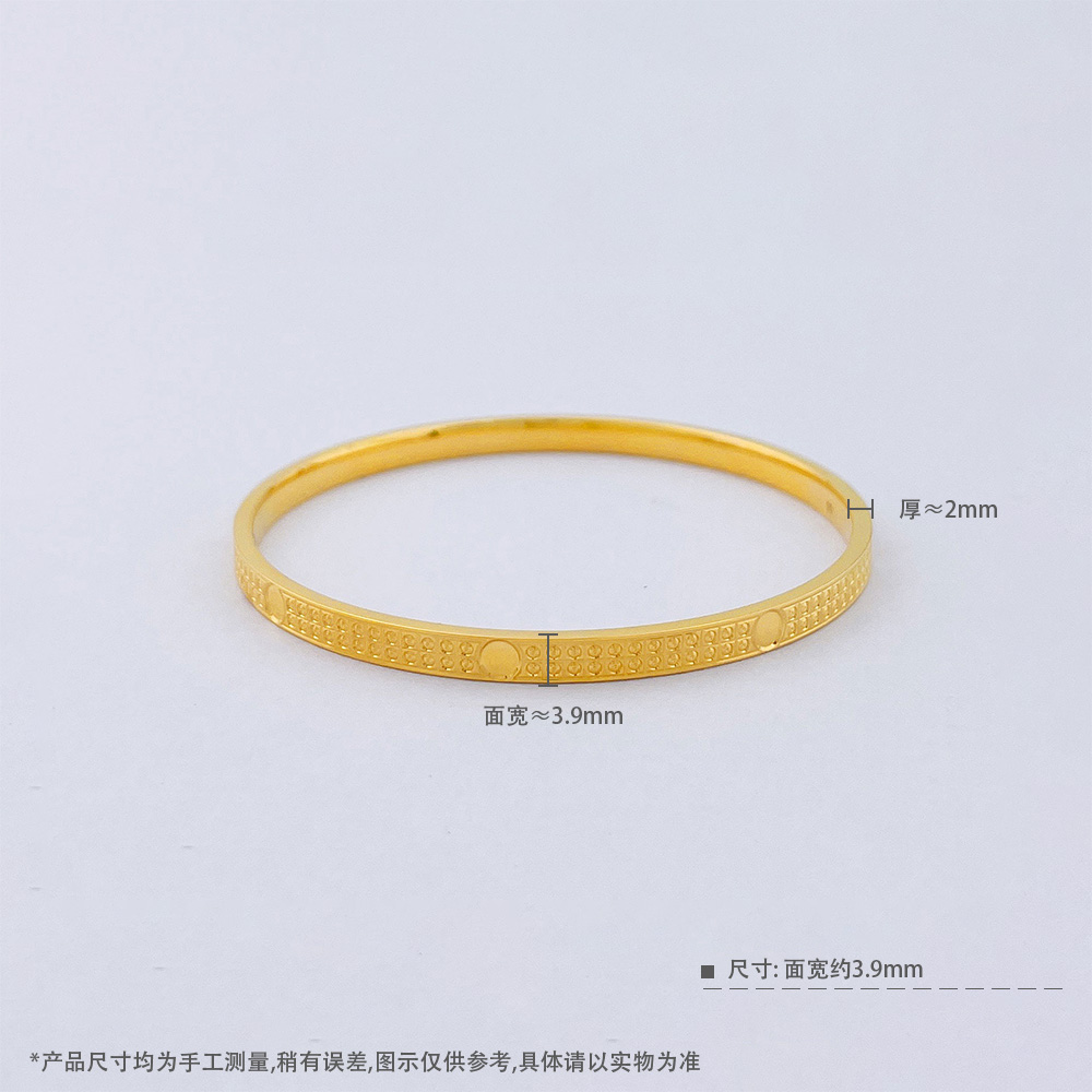 【限时克减150元】足金999.9 【精品】实心镜面金固口手镯满天星钉珠仿钻四方手镯(面宽约3.7-4.1mm,厚约2mm)(BFWSZ00013)
