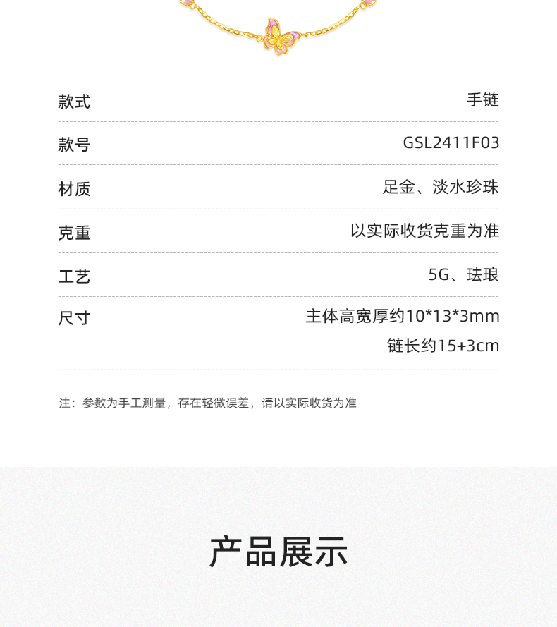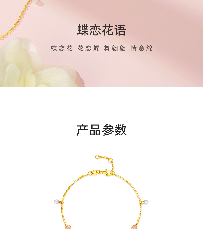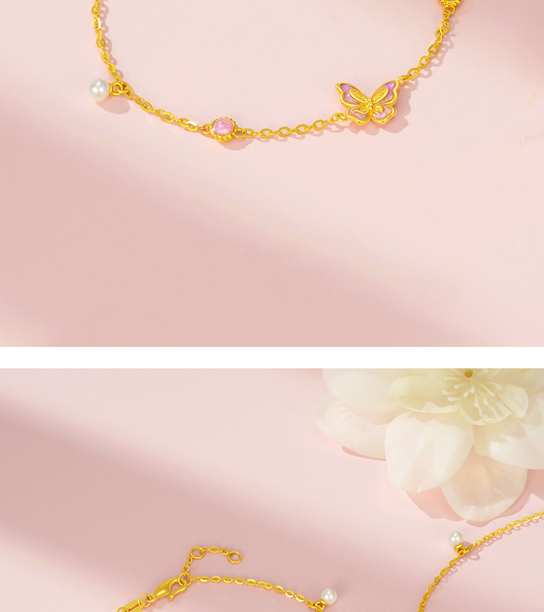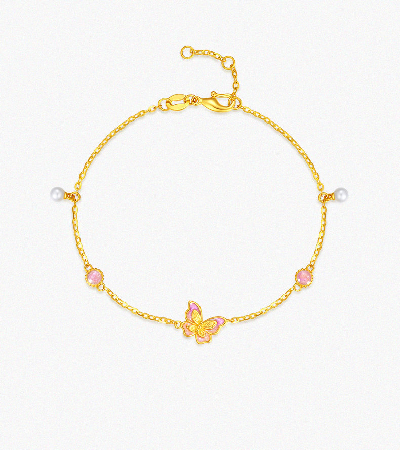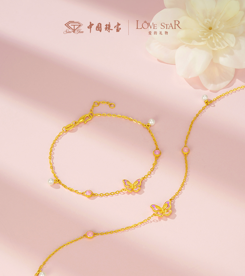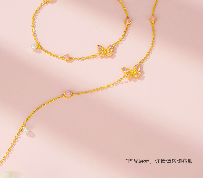 「LOVESTAR-爱的礼物」足金蝶恋花语手链 5G黄金蝴蝶手链【Y】