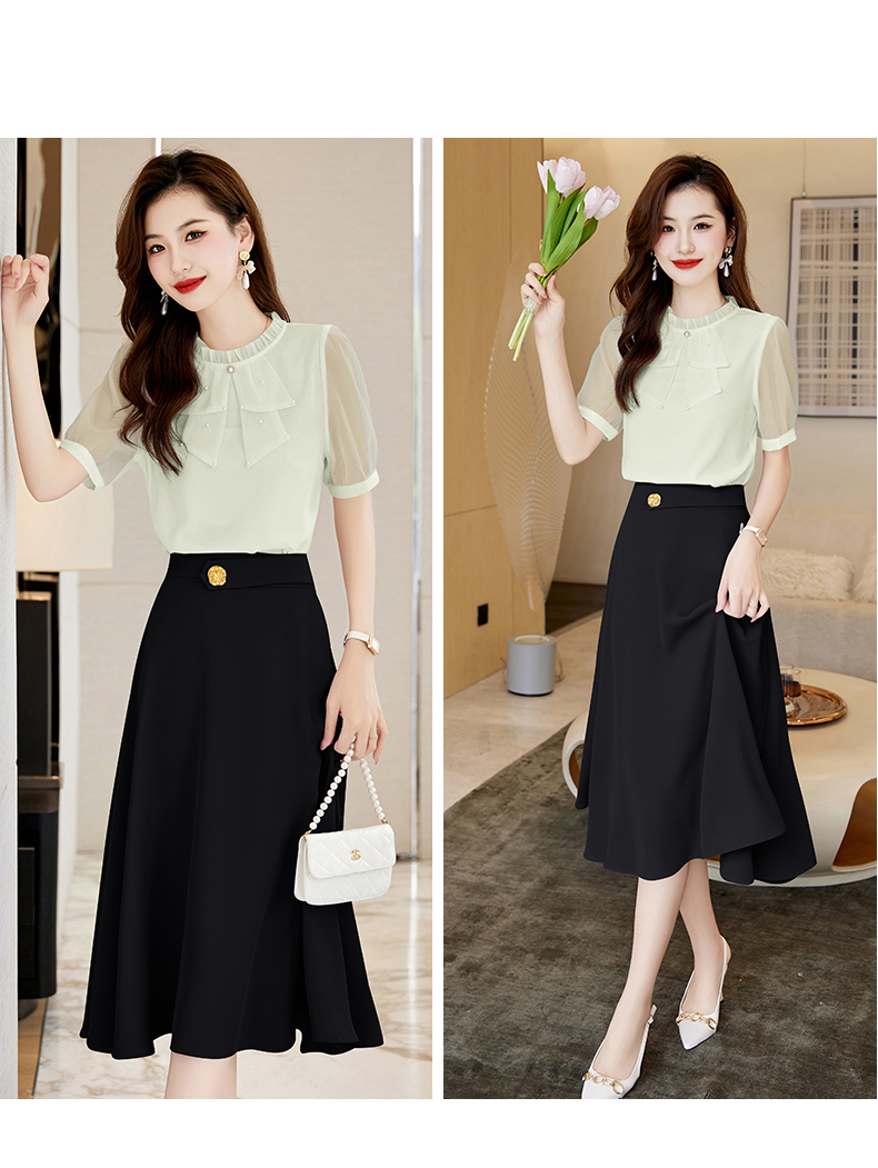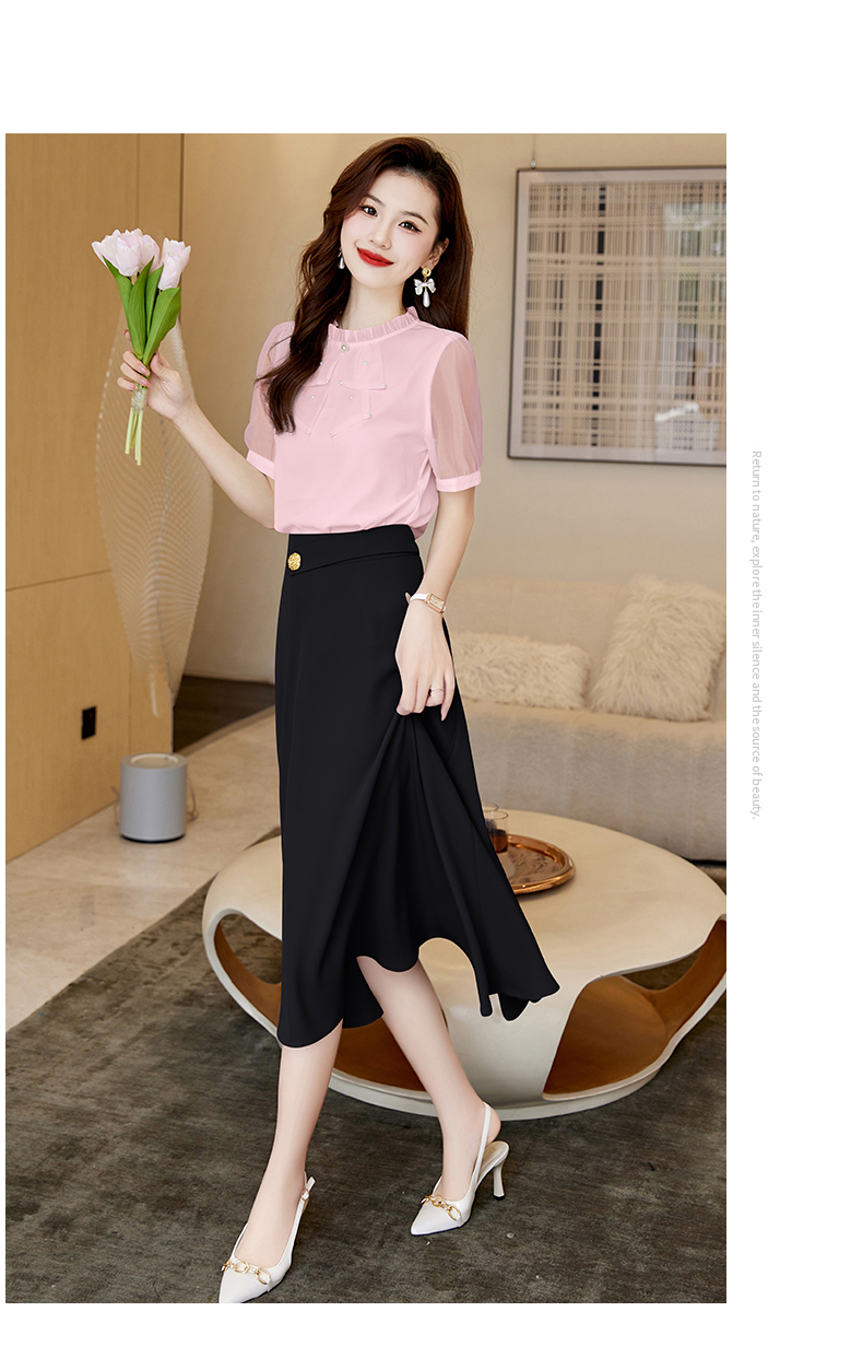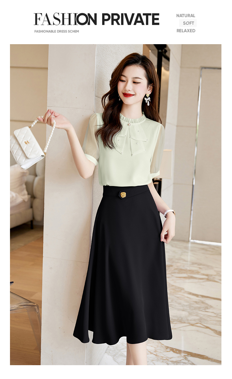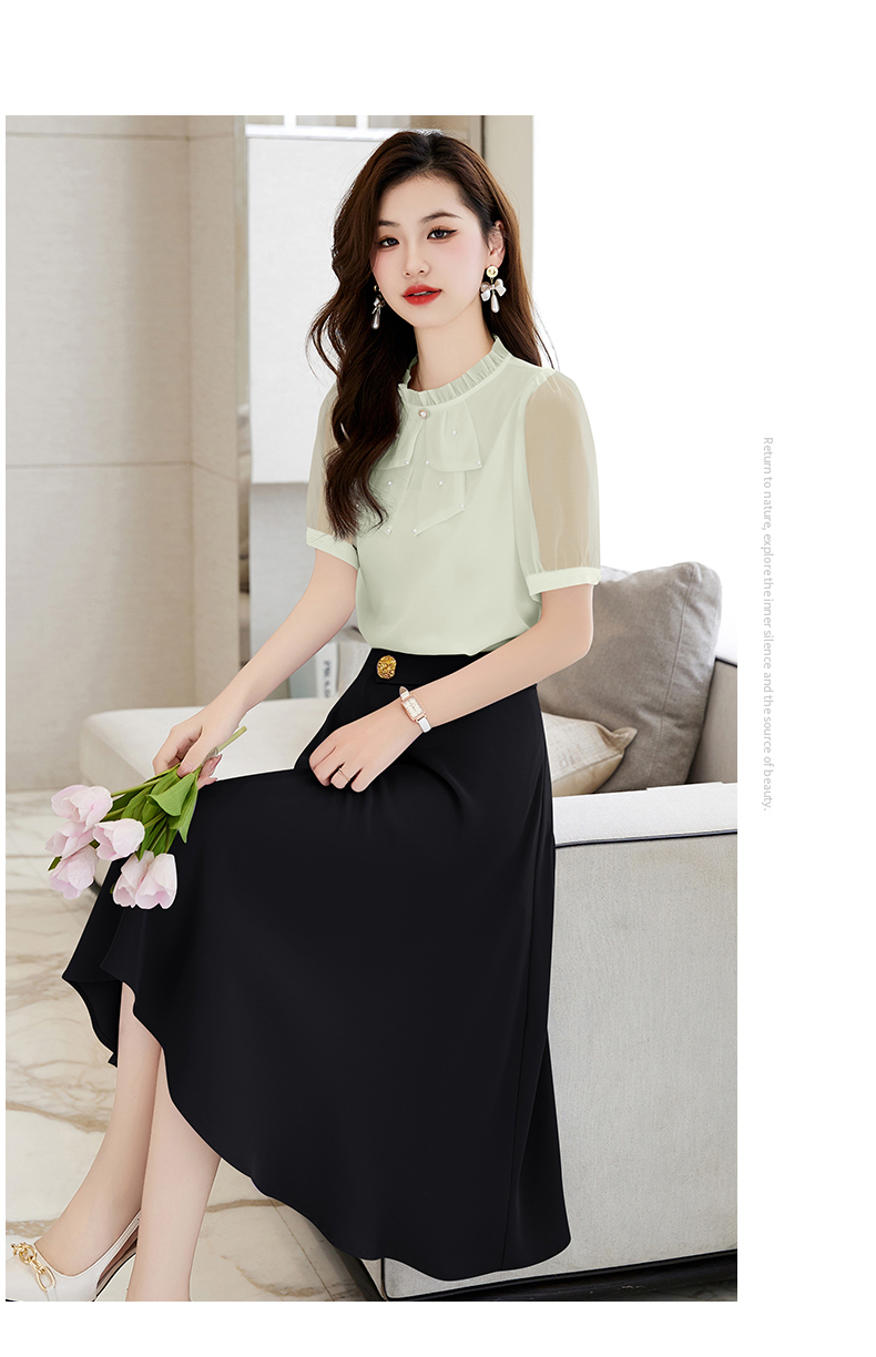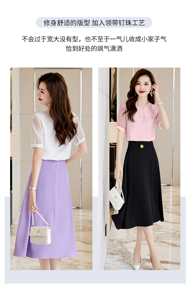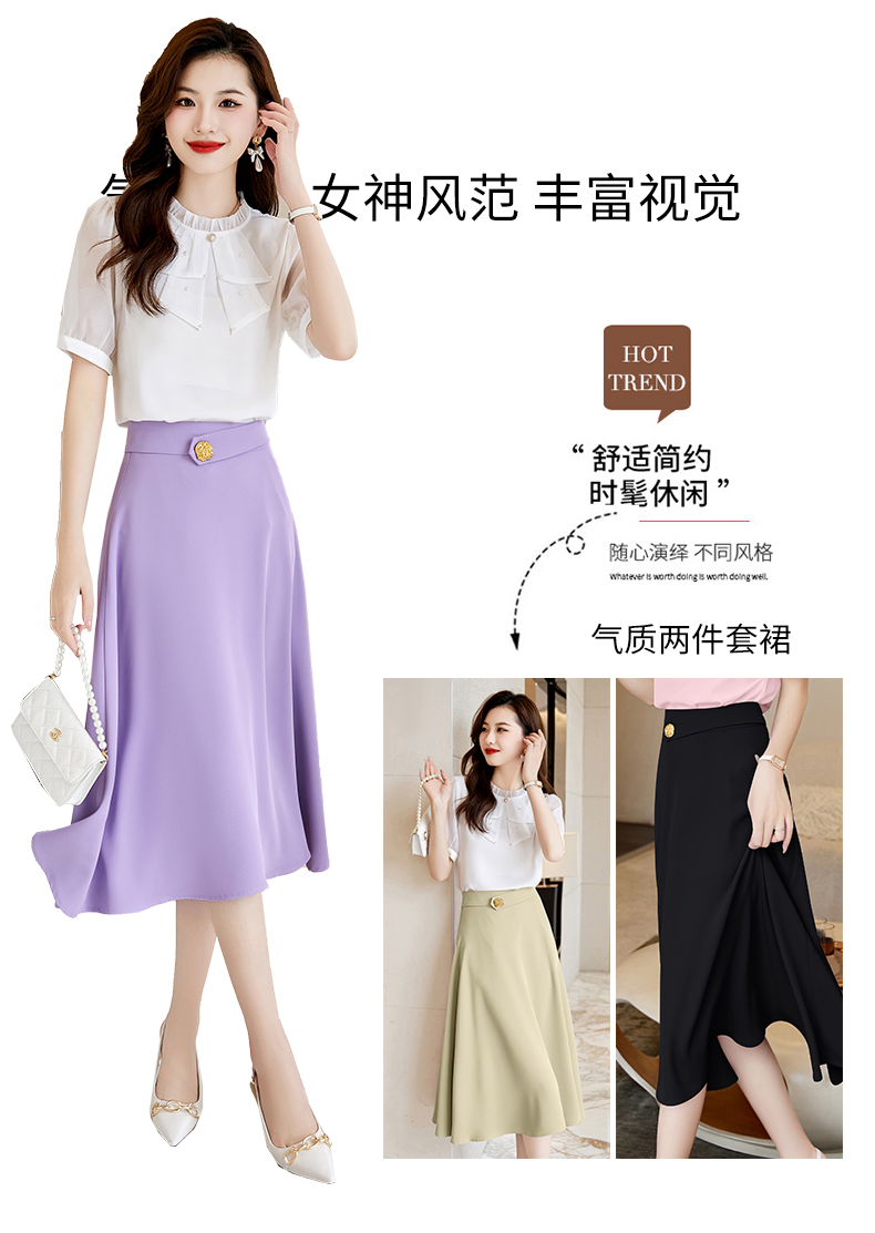洋气减龄,复古立领衬衣百搭显瘦时尚A字摆半身裙套装HR-SSQJRA638-69