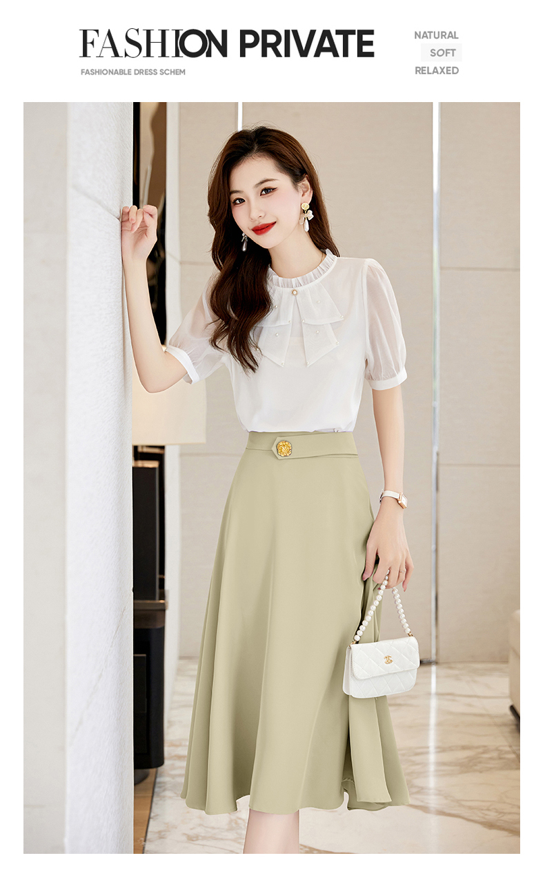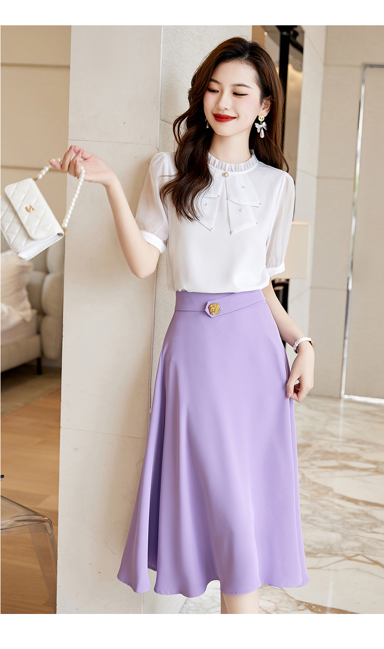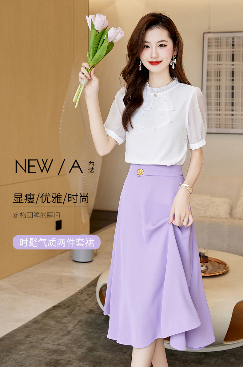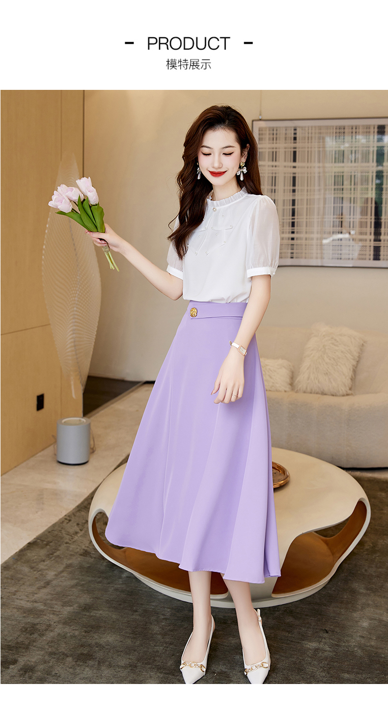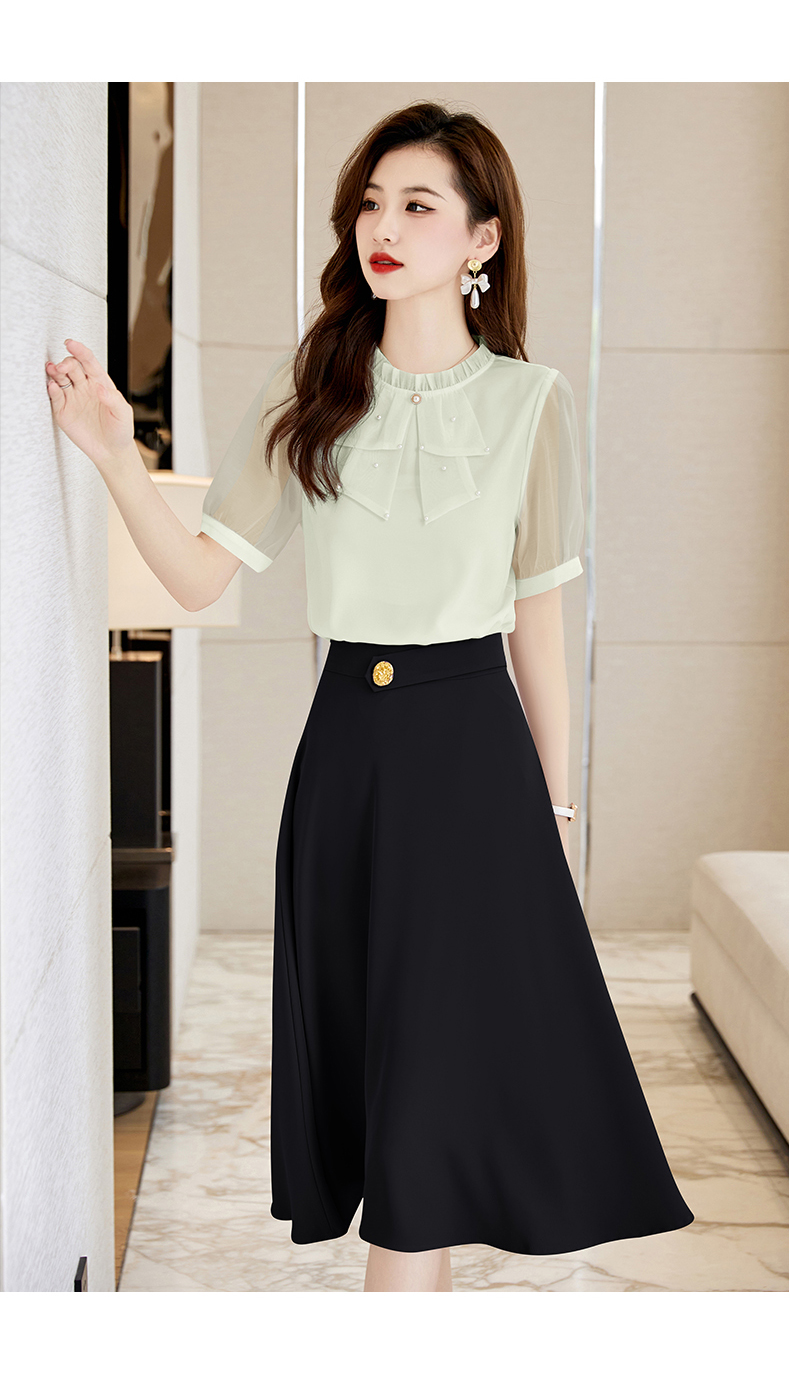 洋气减龄,复古立领衬衣百搭显瘦时尚A字摆半身裙套装HR-SSQJRA638-69