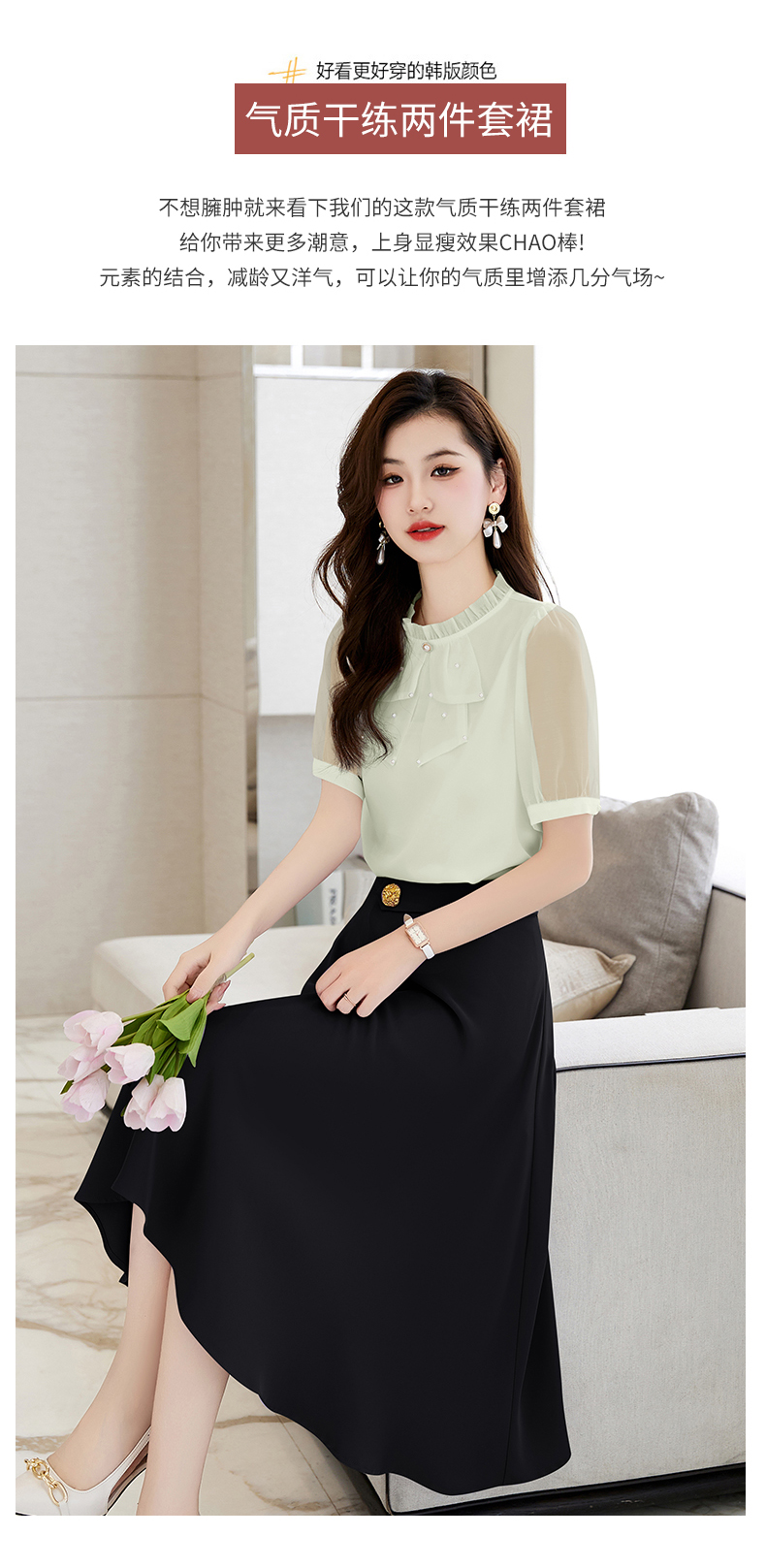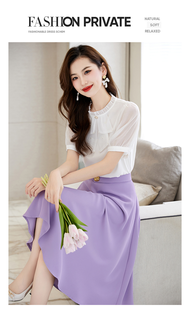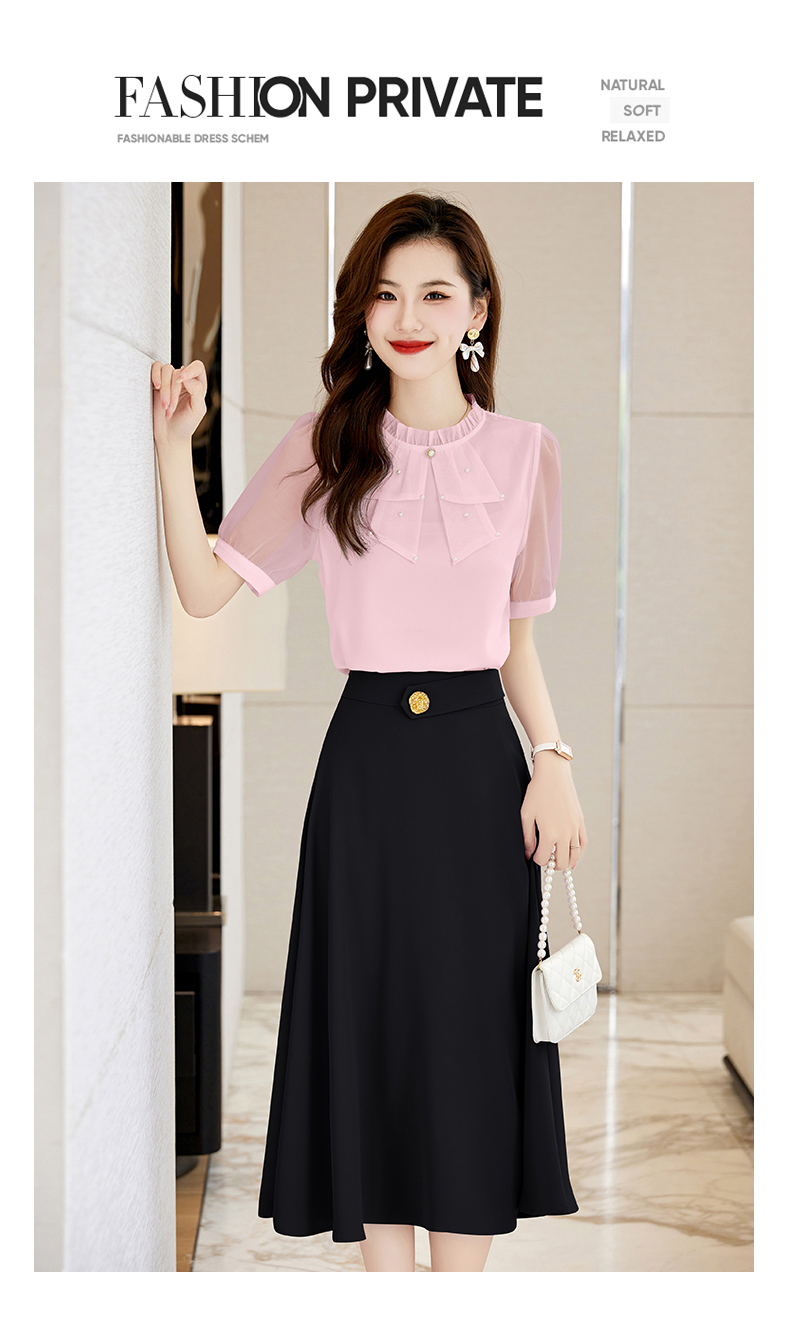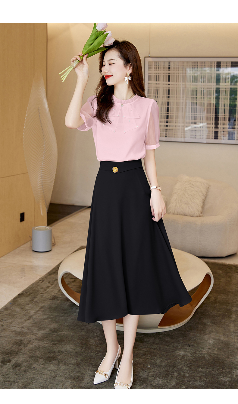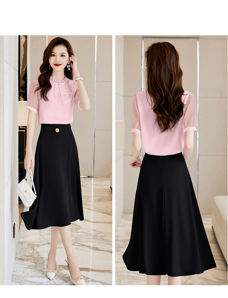 洋气减龄,复古立领衬衣百搭显瘦时尚A字摆半身裙套装HR-SSQJRA638-69