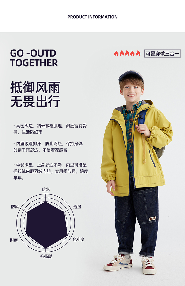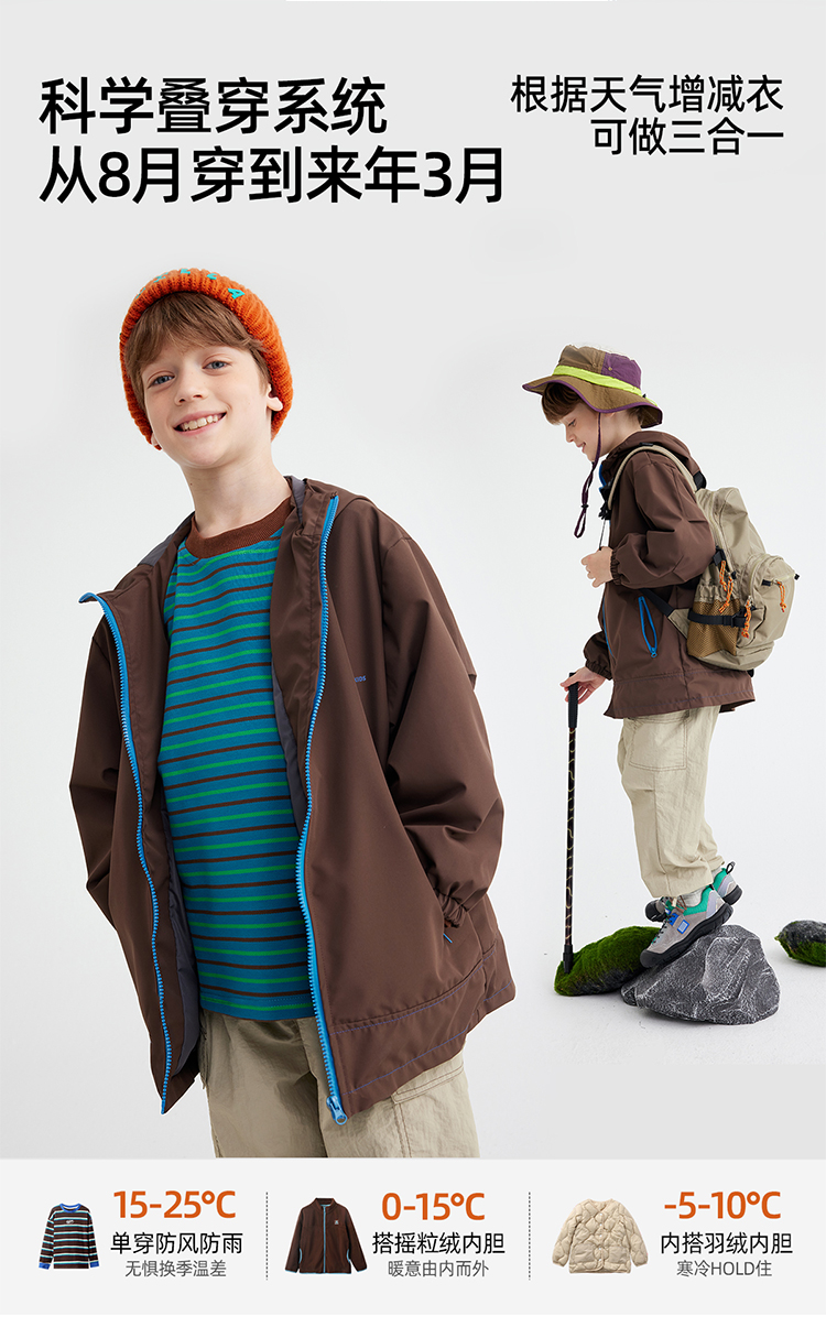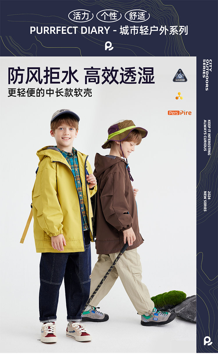 fx-【更轻便的长款软壳 抗风拒水】儿童户外百搭夹克外套 PQWT2414