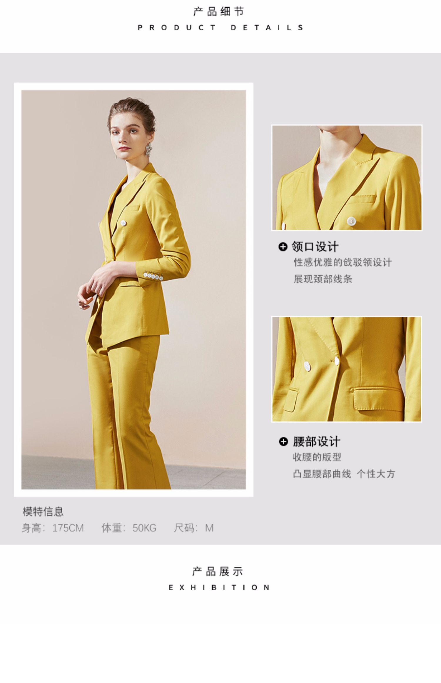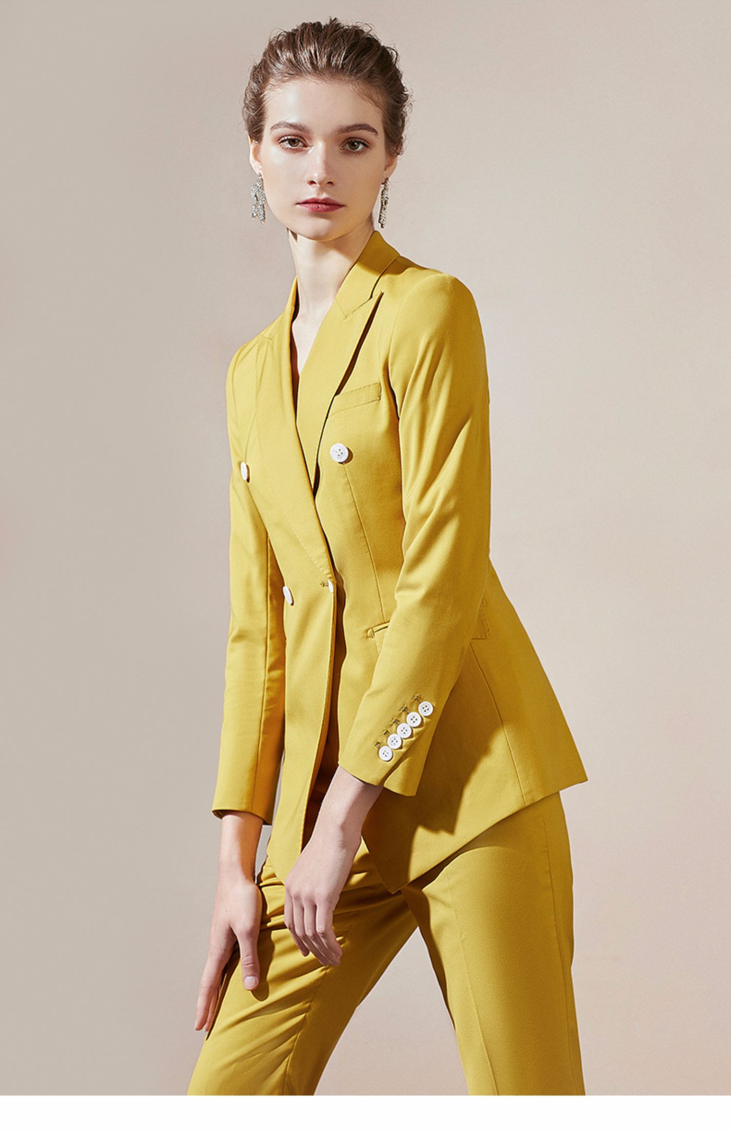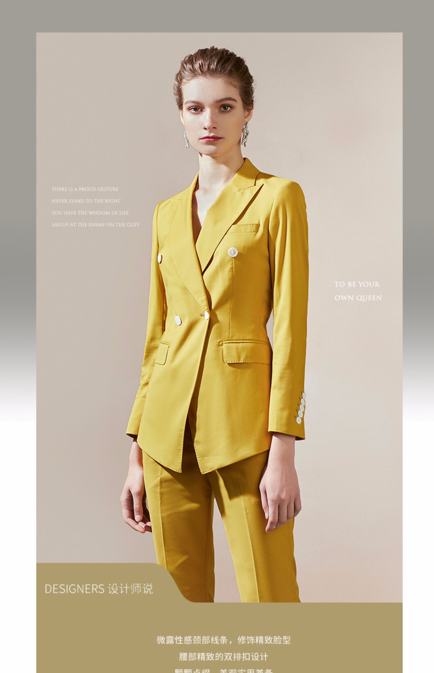 IWY/高端黄色职业装女薄款时尚气质公务员面试正装工作服小西装套装OL203147C1+203147P3