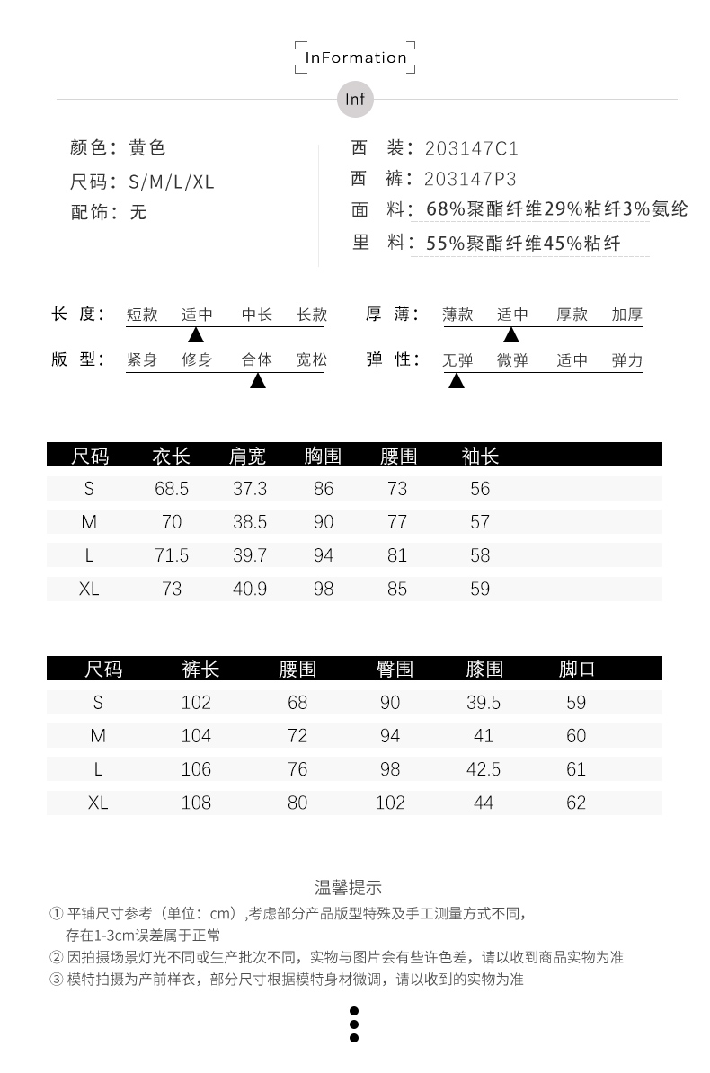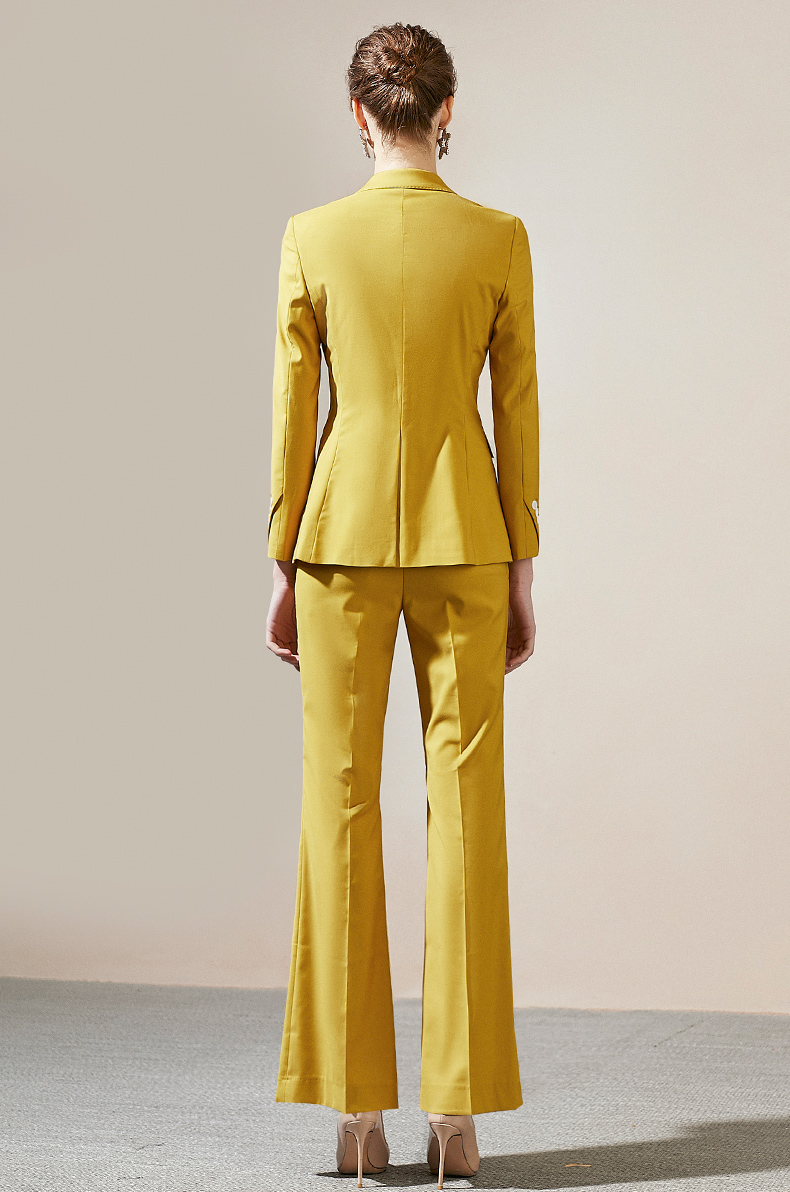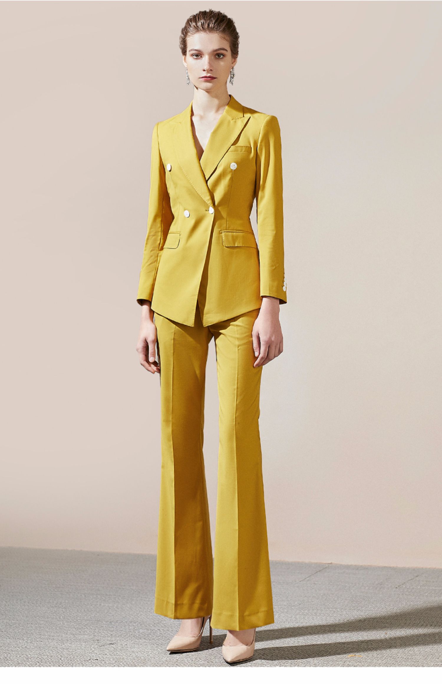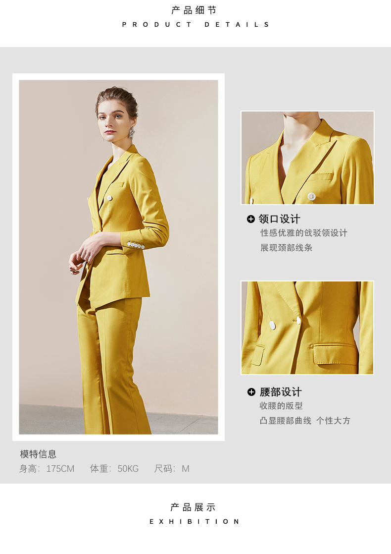 IWY/高端黄色职业装女薄款时尚气质公务员面试正装工作服小西装套装OL203147C1+203147P3
