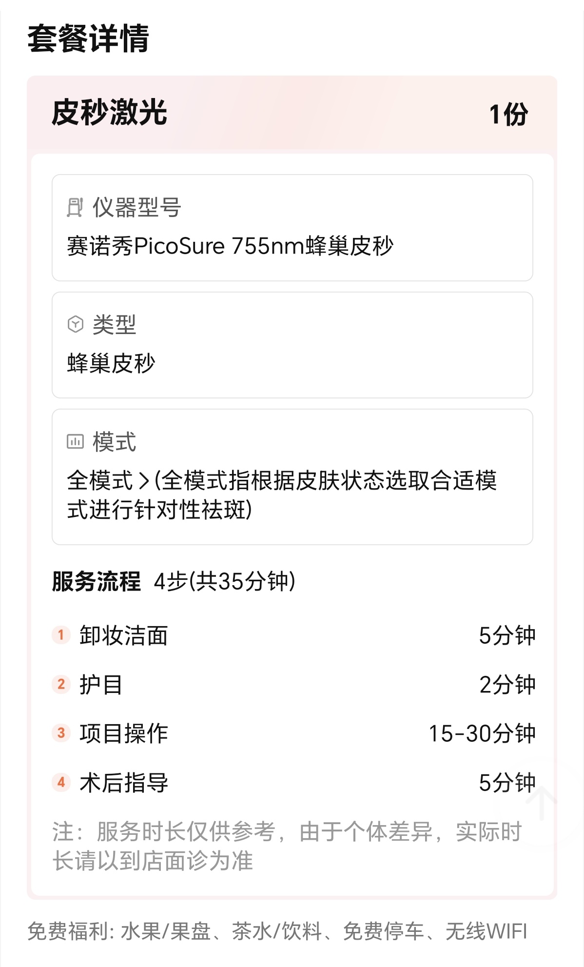 1、此价格治疗项目为:皮秒全模式治疗1次;