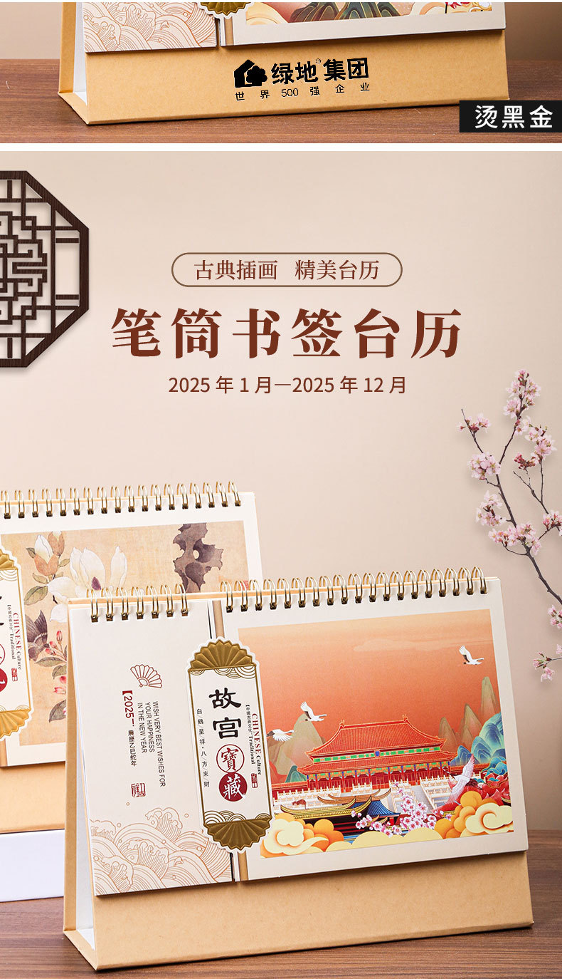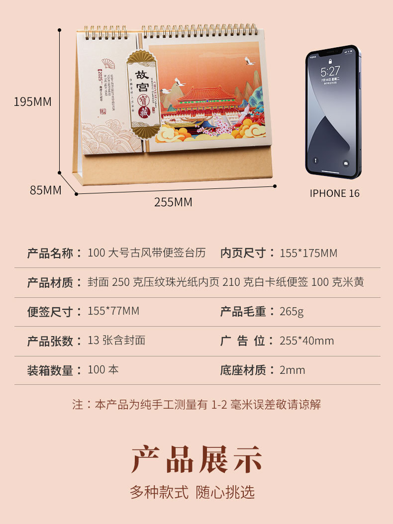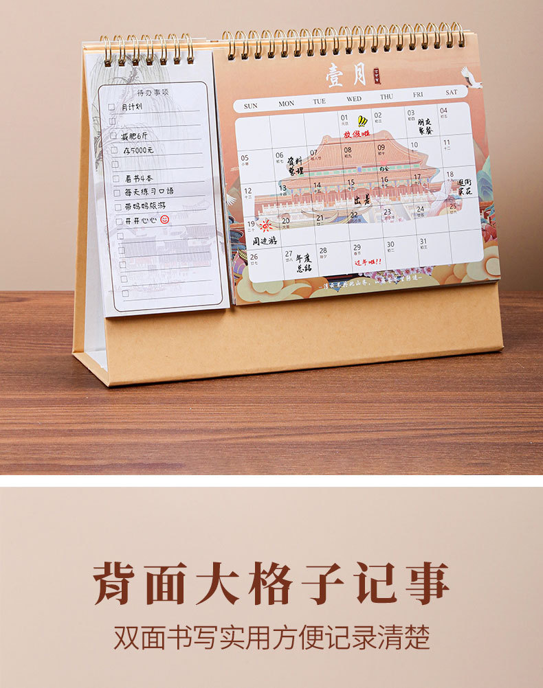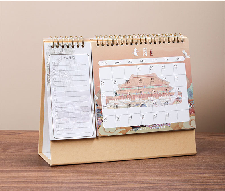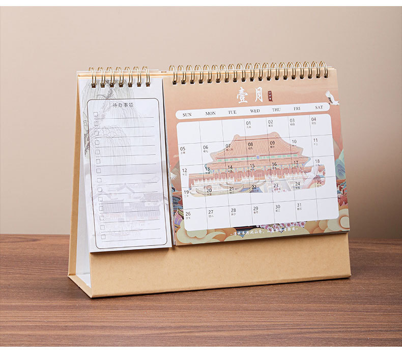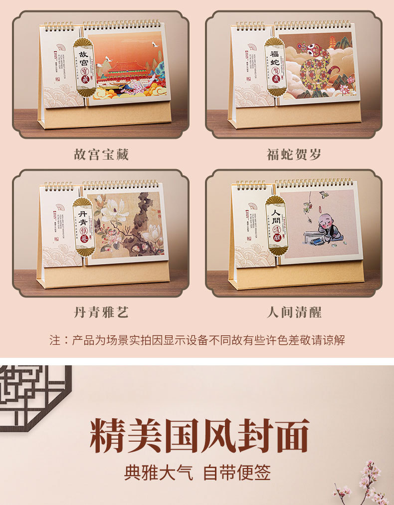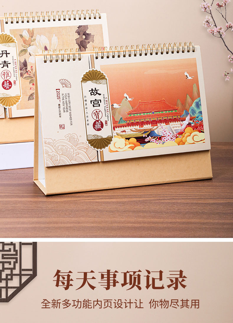 【新款2025年日历】中国风礼品桌面摆件 带便签月历 古风插画台历