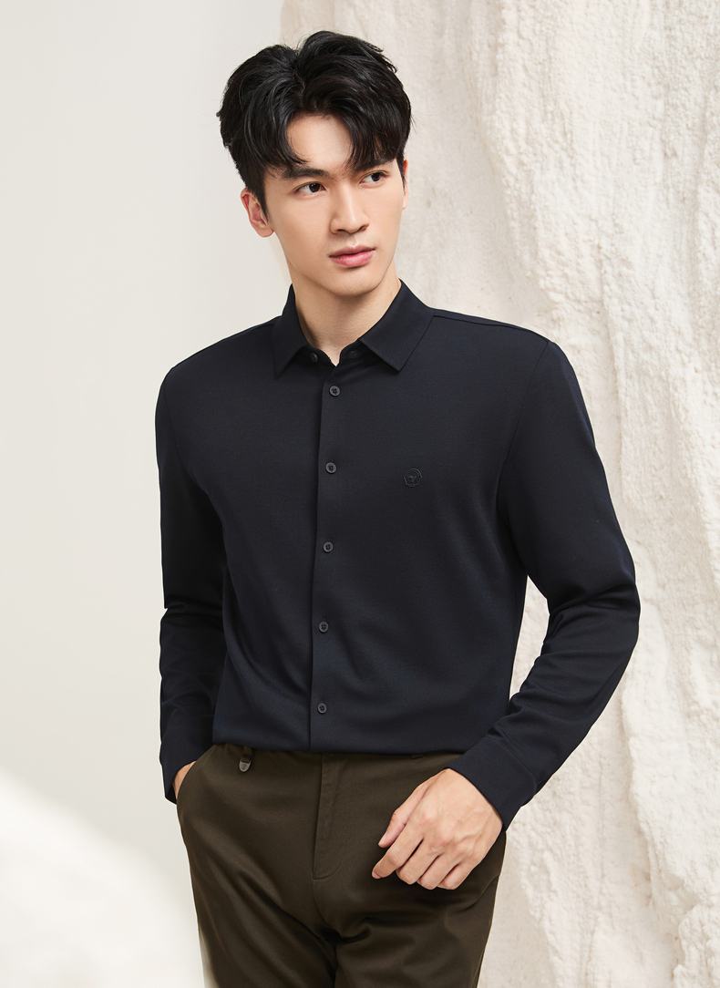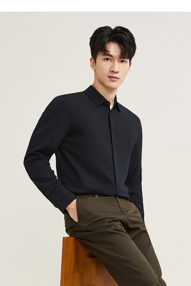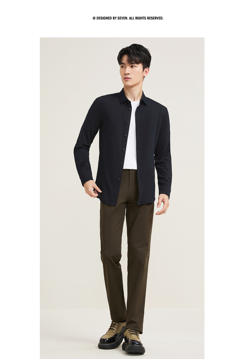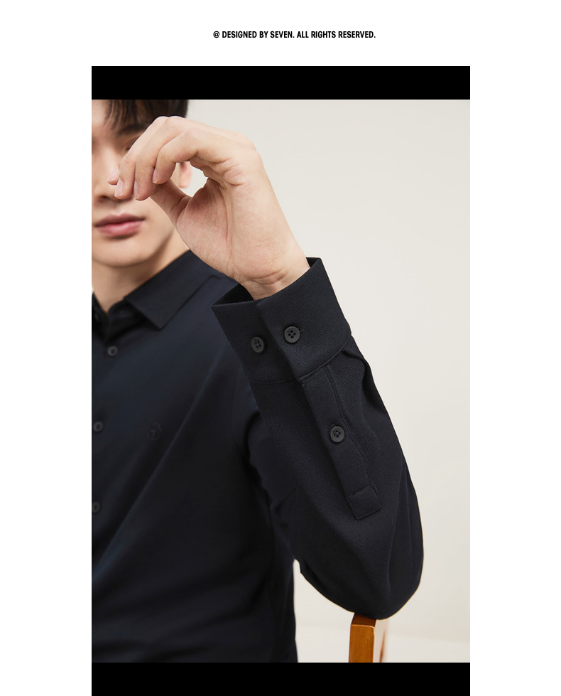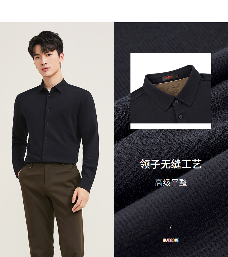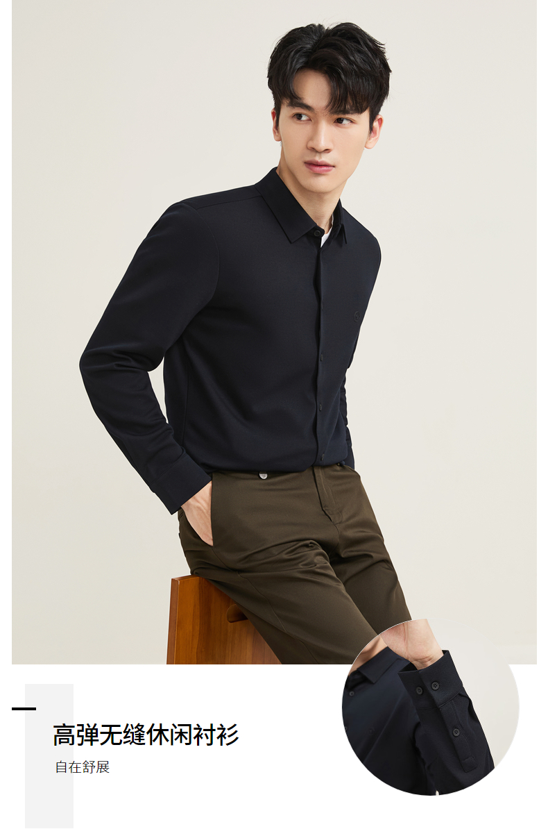【无缝/高弹衬衫】柒牌男装2025秋季休闲翻领肌理针织长袖衬衫男129A70520