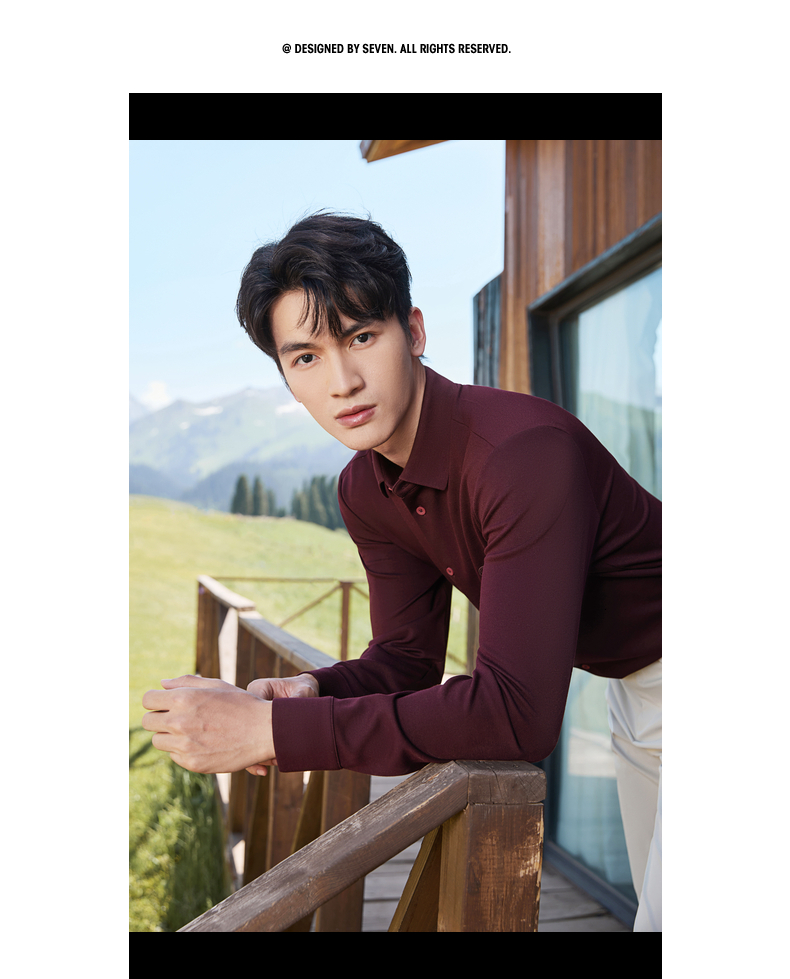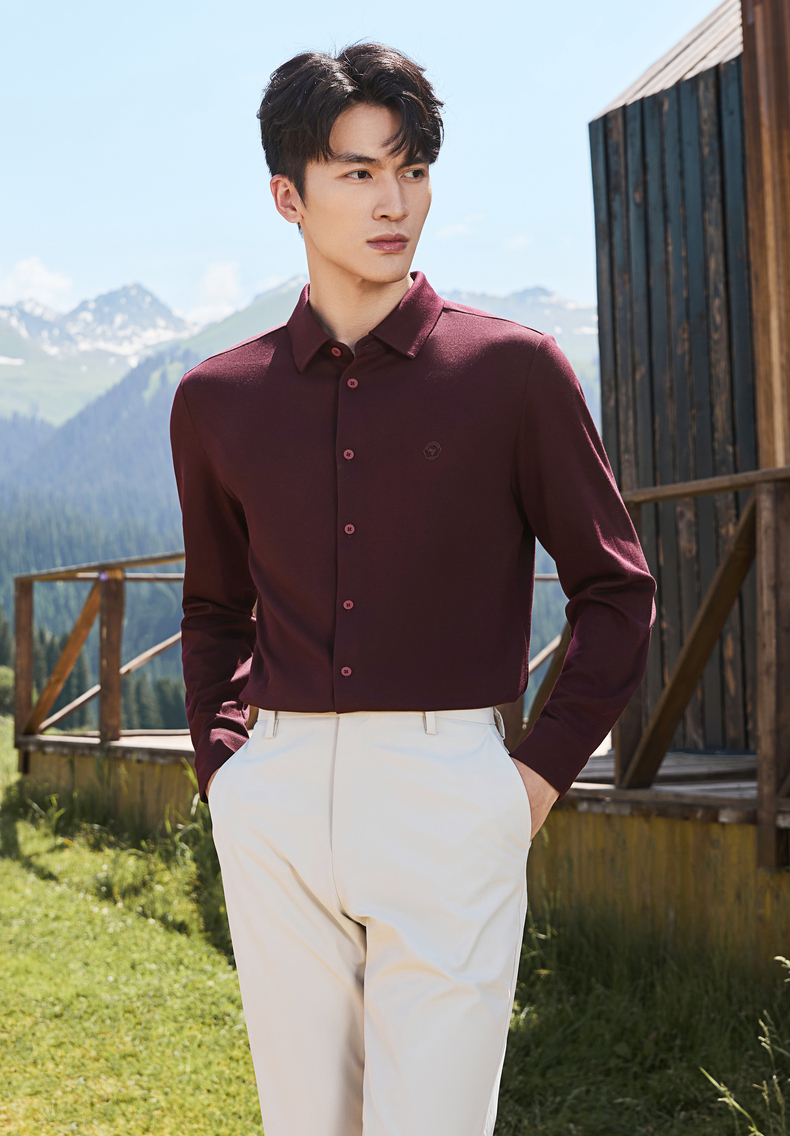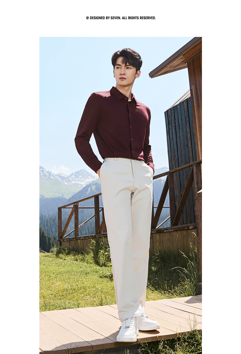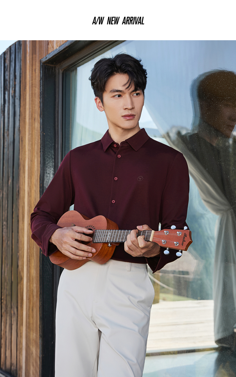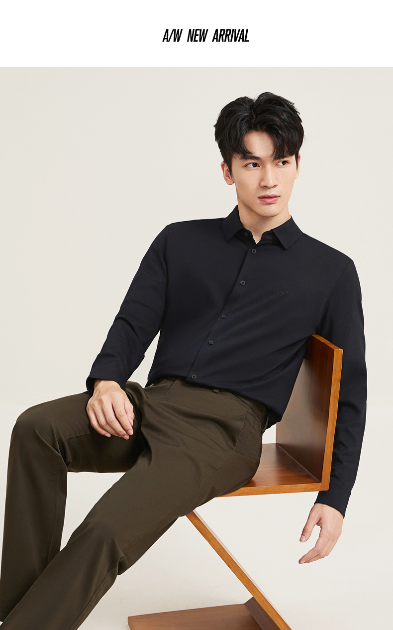 【无缝/高弹衬衫】柒牌男装2025秋季休闲翻领肌理针织长袖衬衫男129A70520
