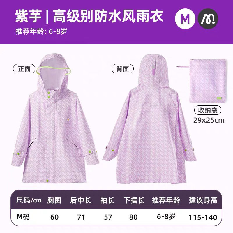 mideer弥鹿儿童高级别防水风雨衣-紫芋M码6-8岁、S码3-5岁