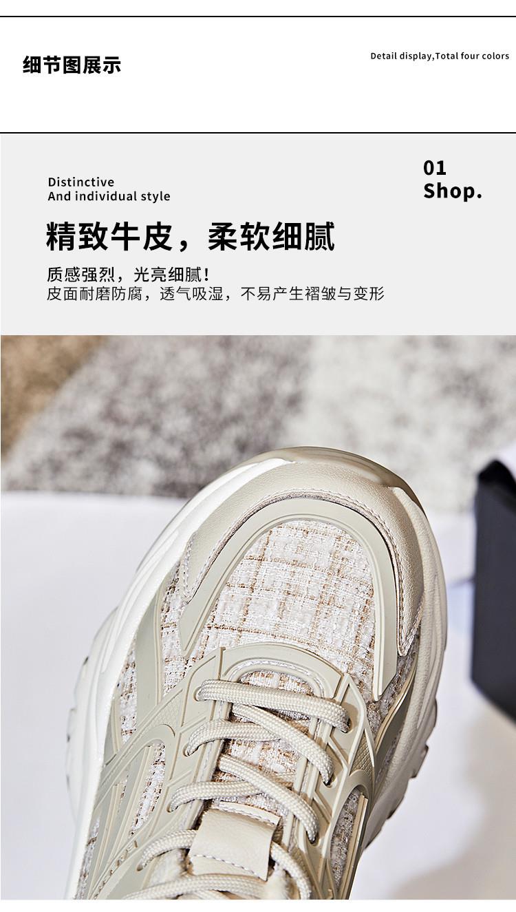 吸膜底老爹鞋春夏2024女士新款厚底真皮休闲女鞋百搭跑步运动鞋女