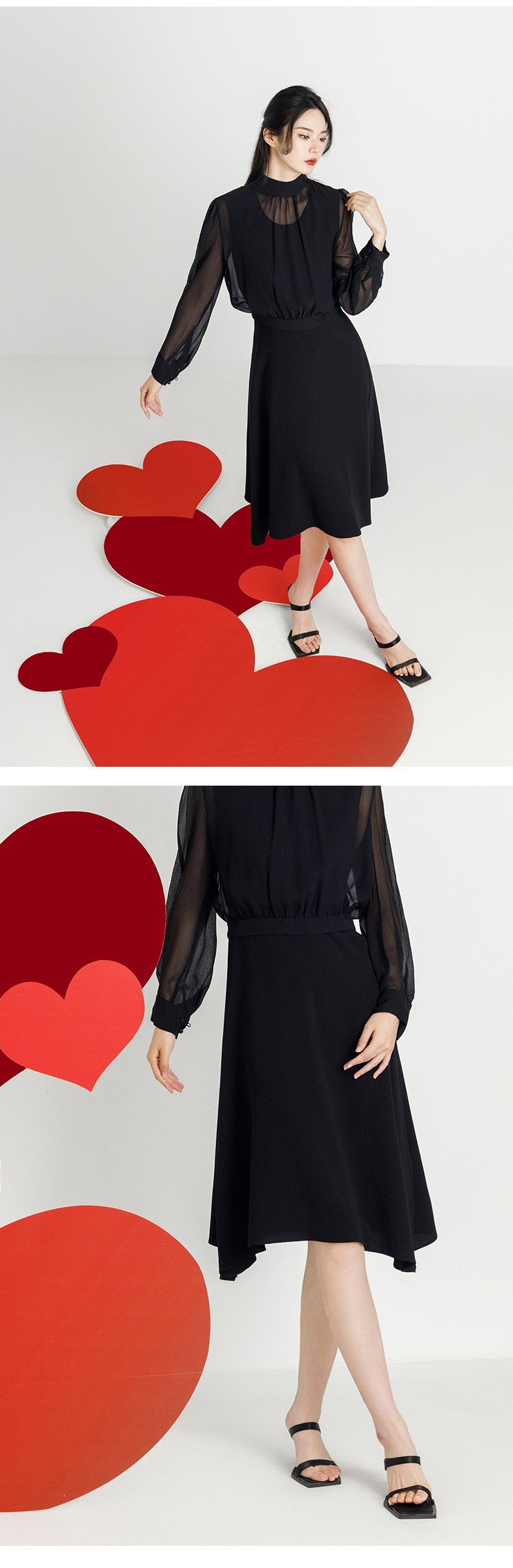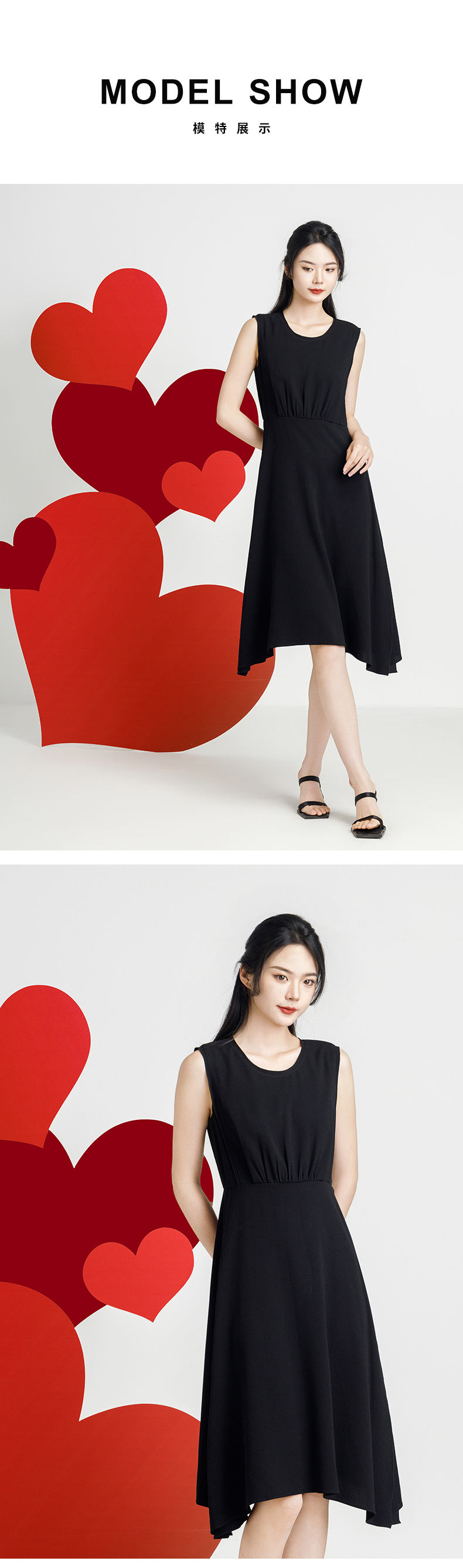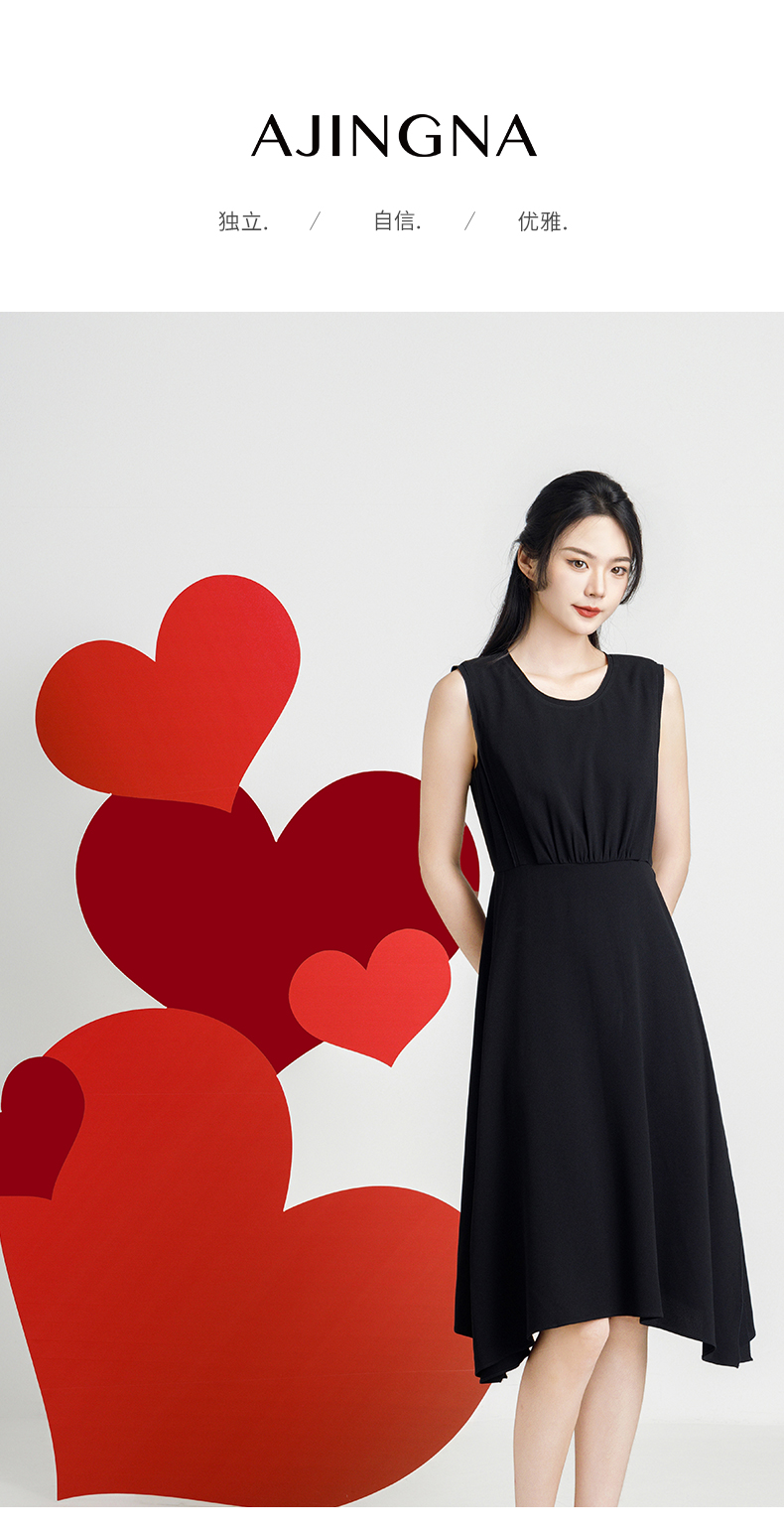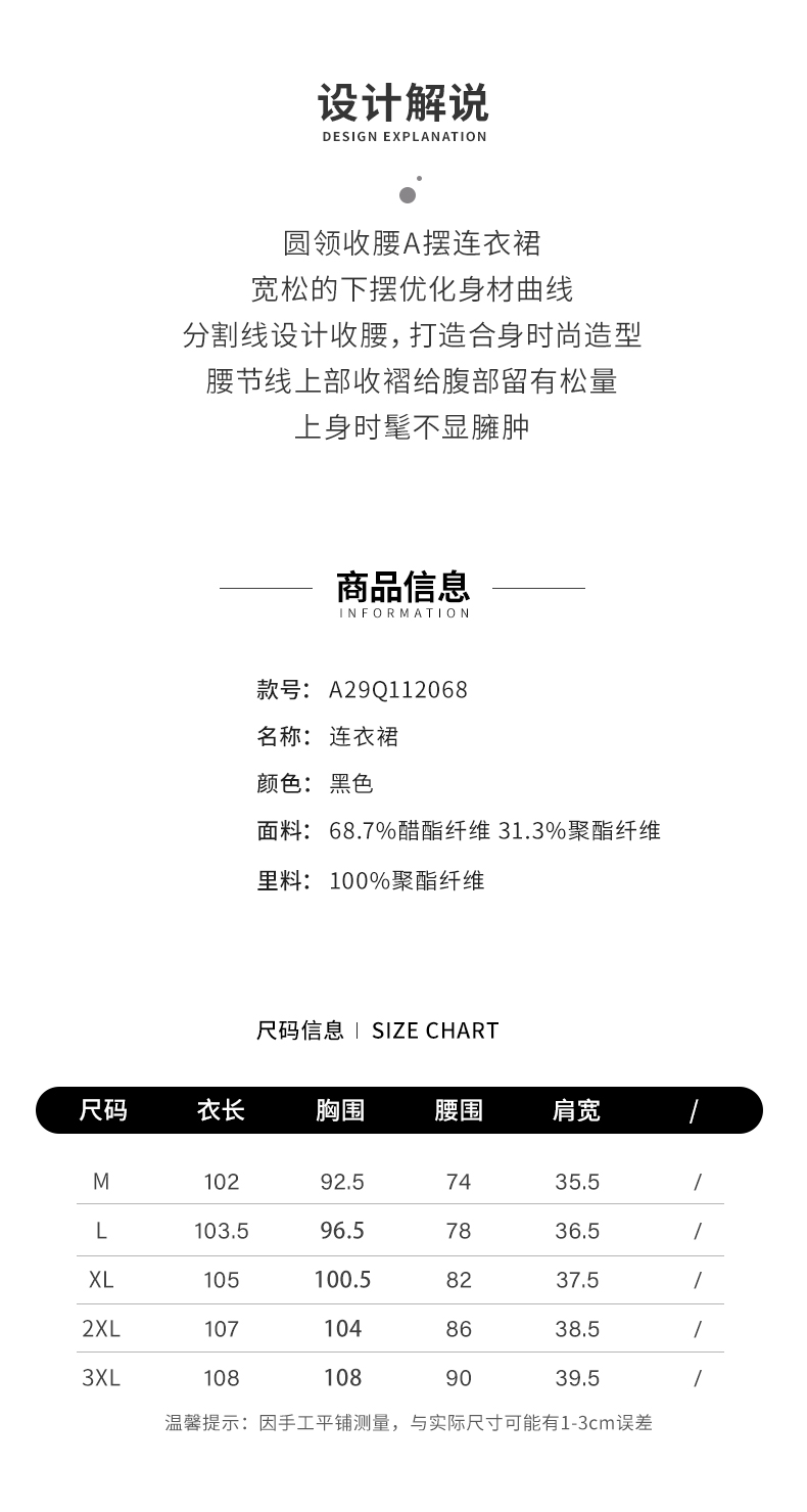 【商场同款】阿菁娜2024秋季新款圆领收腰A字摆连衣裙A29Q112068