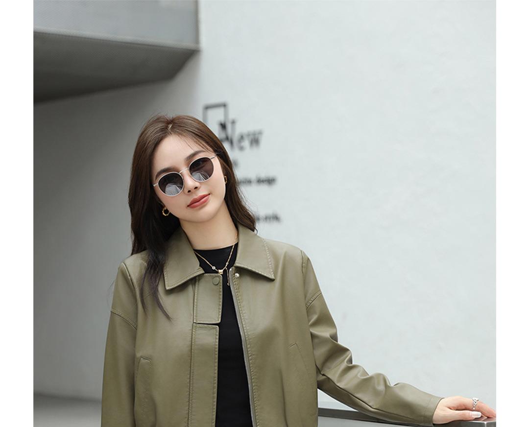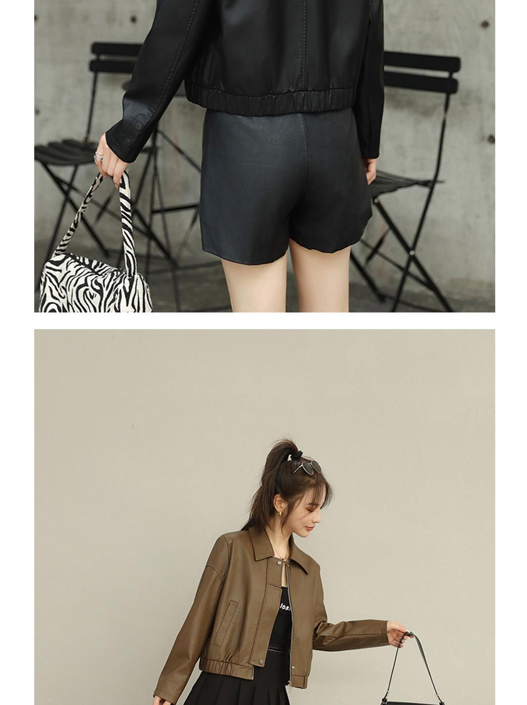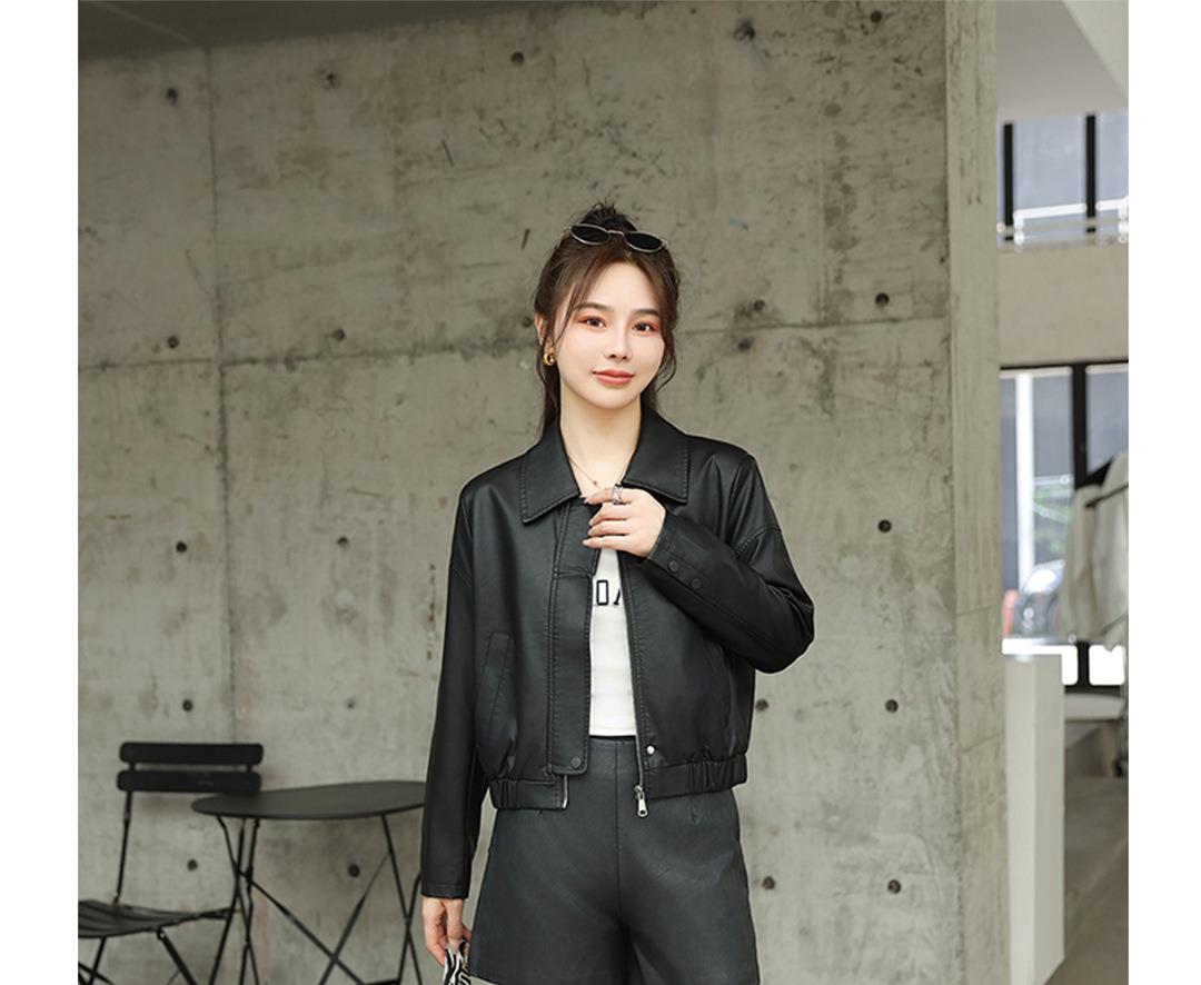 2023秋季新款韩版短款皮衣外套女翻领宽松水洗PU皮夹克衣女