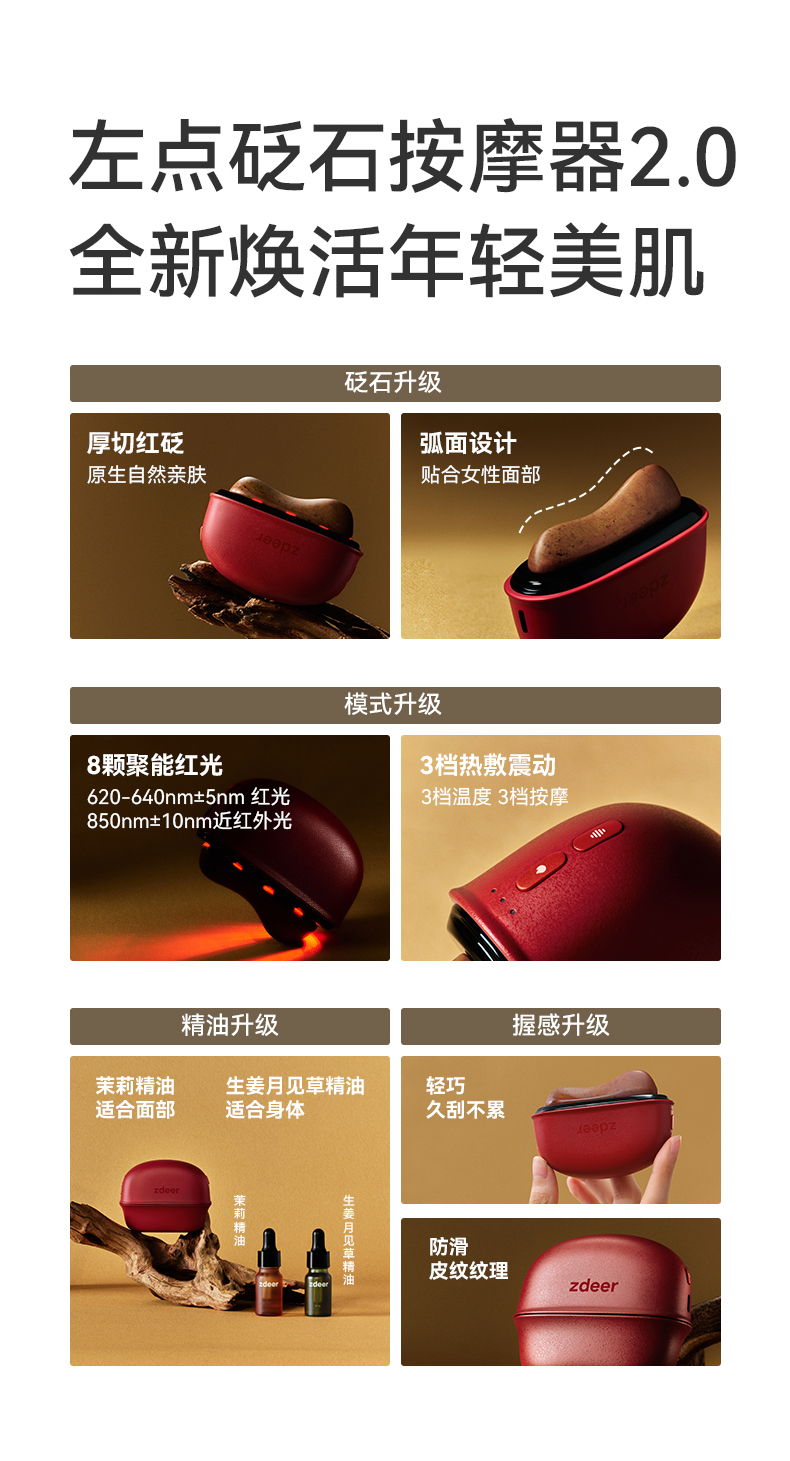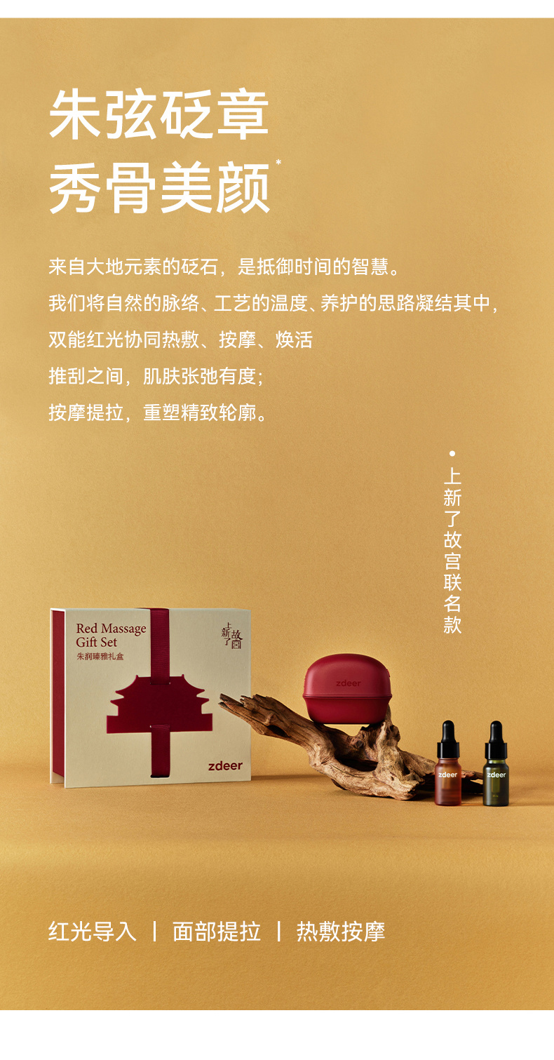 【公众号专属】zdeer 左点电动刮刮板砭石红光刮脸仪面部专用热敷震动按摩提拉器 朱弦砭章礼盒