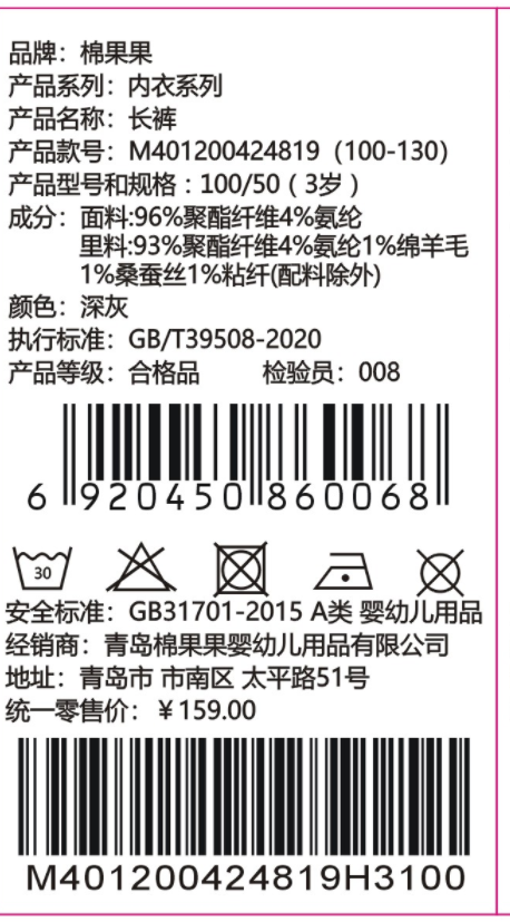 棉果果专柜同款冬季新品男童女童男童长裤M401200424819