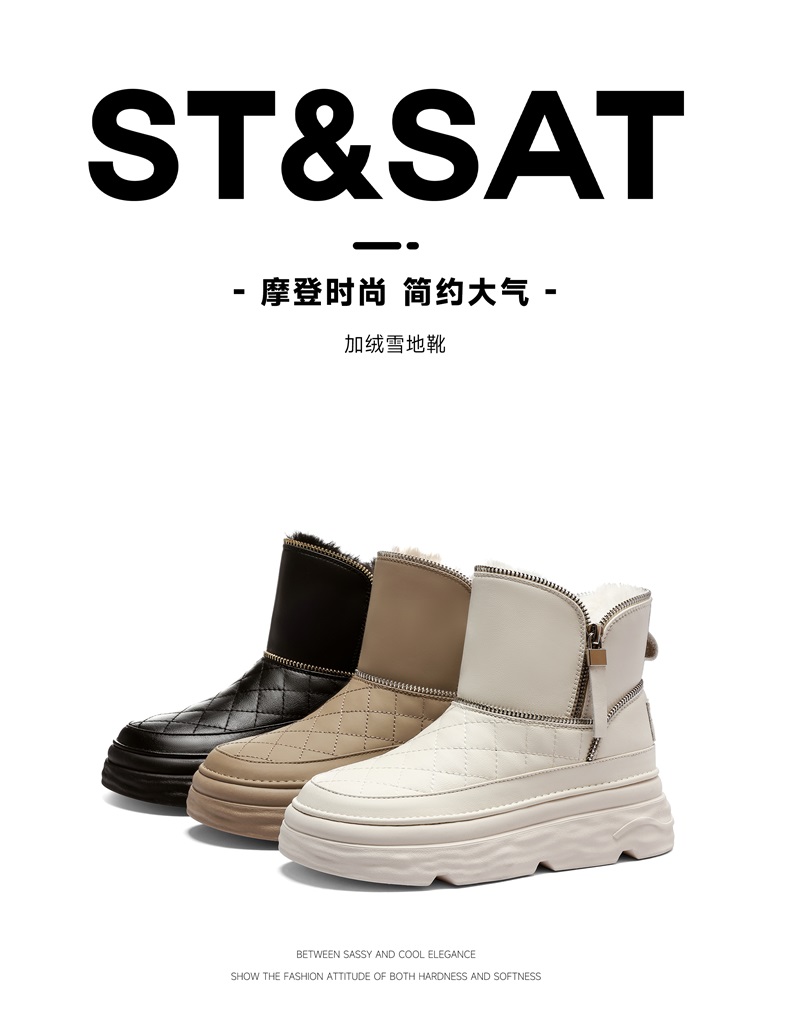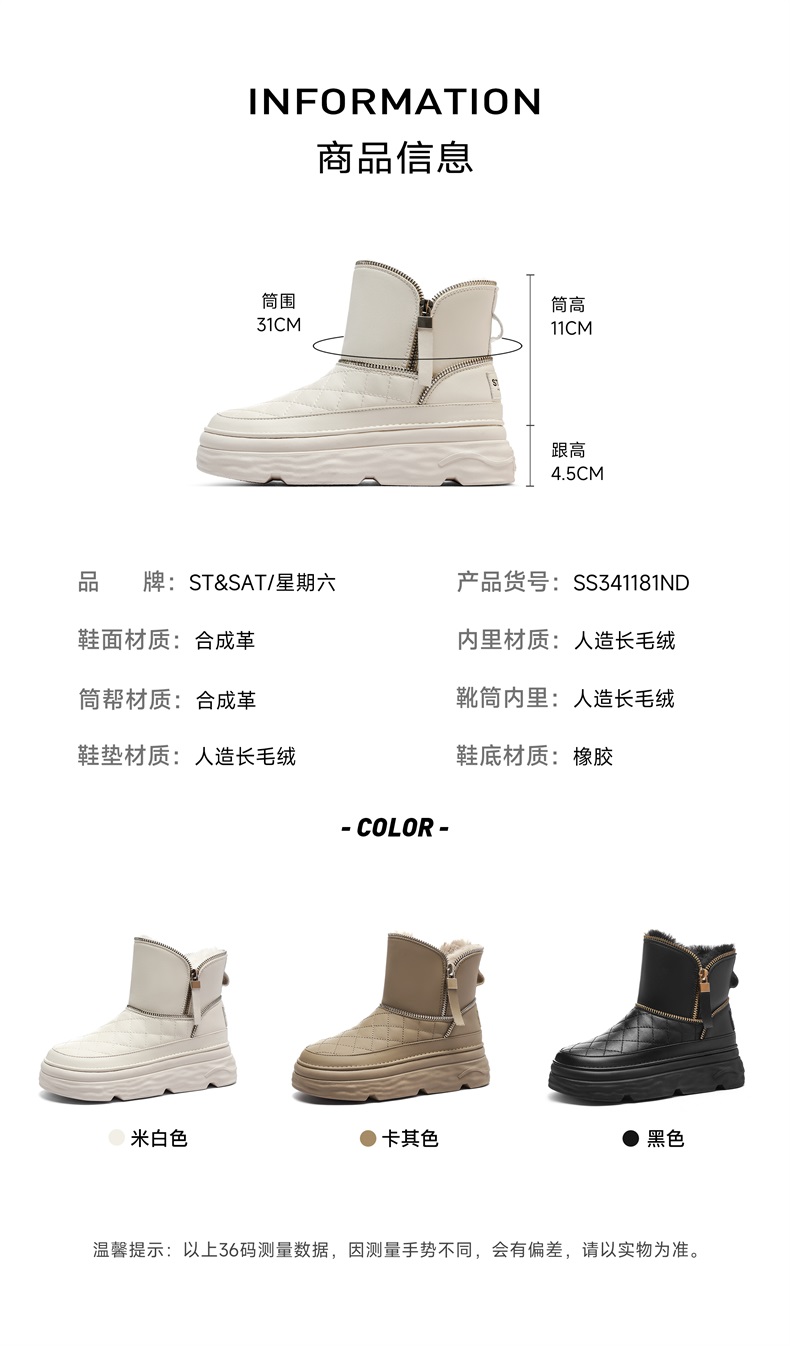 星期六时尚格纹拉链厚底雪地靴SS341181ND