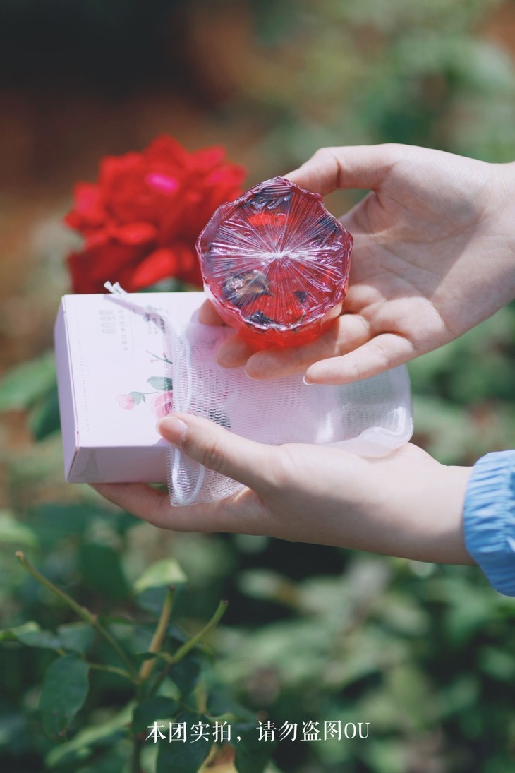 这款皂体中加入了云南高山区采摘的新鲜玫瑰花辦,有纯正天然的芬芳,使用起来非常舒适