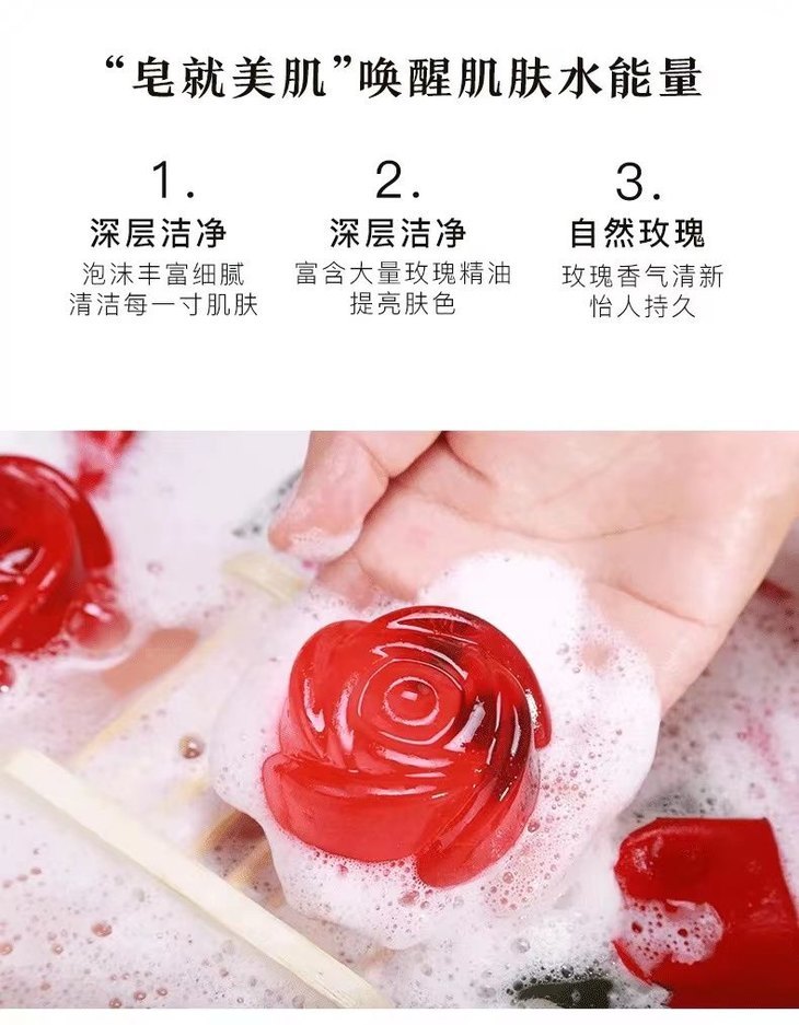云南玫瑰鲜花皂在洗脸洗澡的过程中,泡沫细腻丰富,轻轻一抹能让肌肤变得干净柔滑