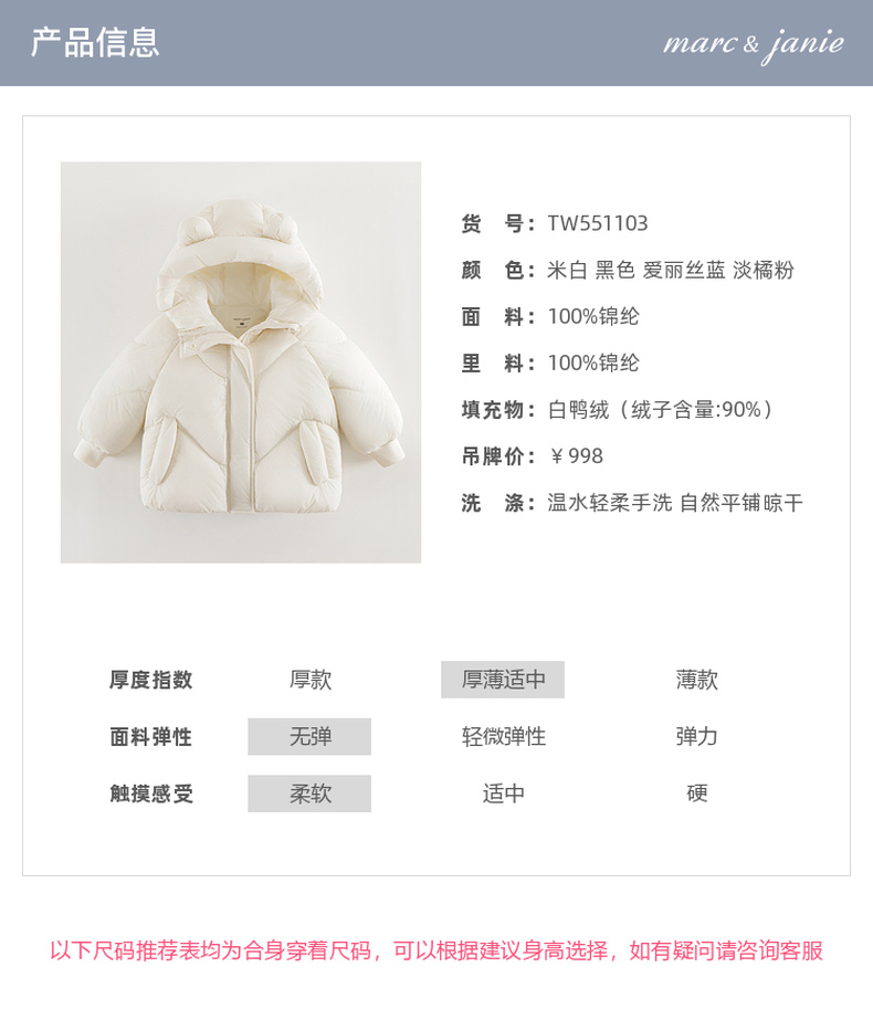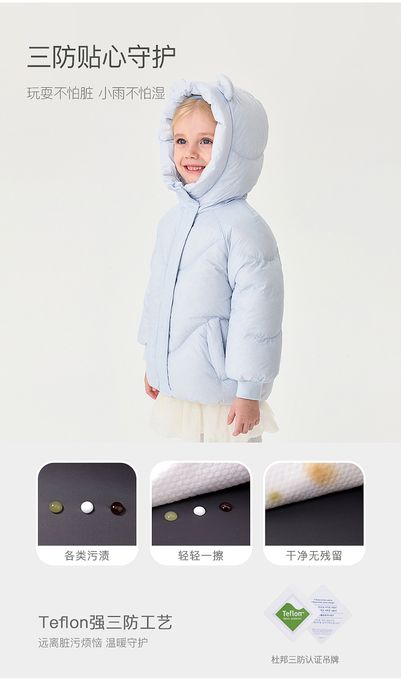 【三防】马克珍妮女童超轻加厚熊耳朵羽绒服2025年冬装新款551103