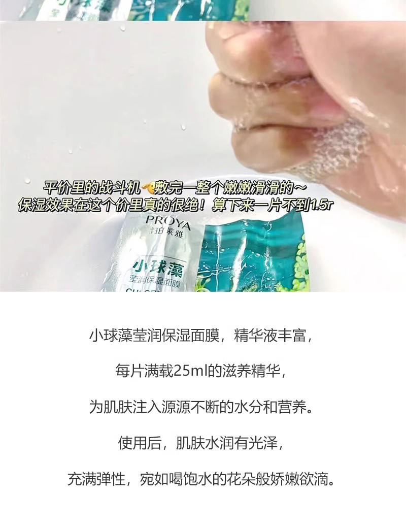 【99任选3盒】PROYA/珀莱雅小球藻面膜玻尿酸补水保湿舒缓修护 15片无盒