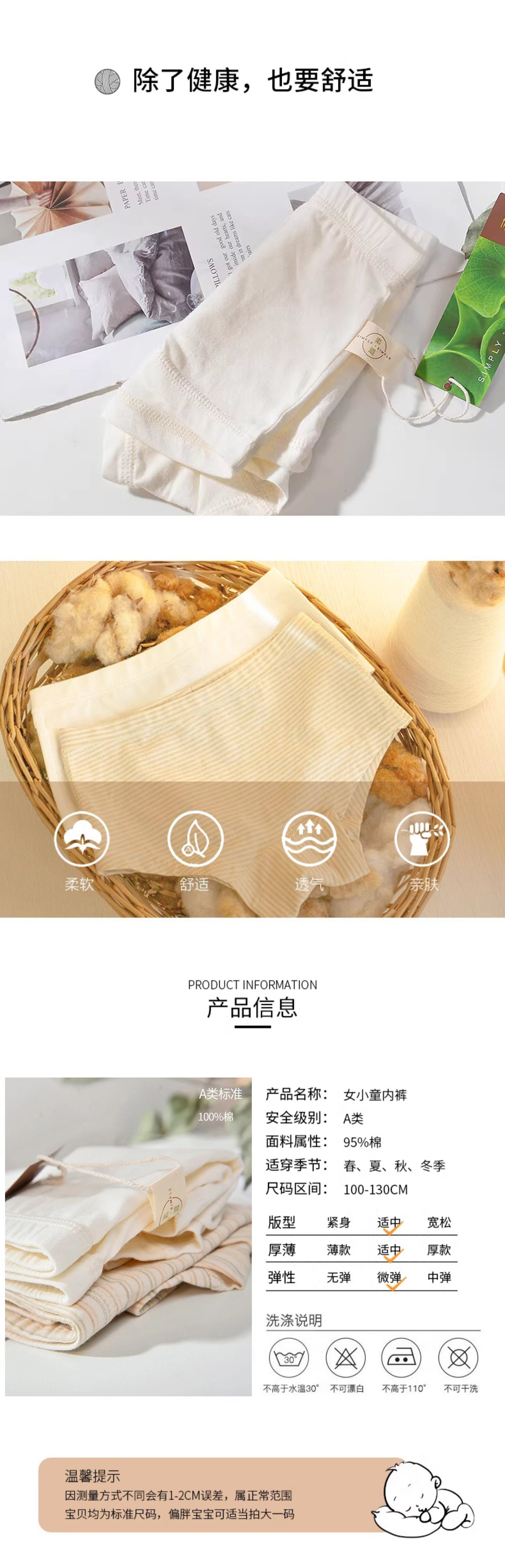 【中小女童平角内裤2条装】95%棉,素道有机彩棉-A类中小女童透气平角裤(基地直发-申通包邮),来自敦煌,品牌:素道【合作生产,公平贸易】