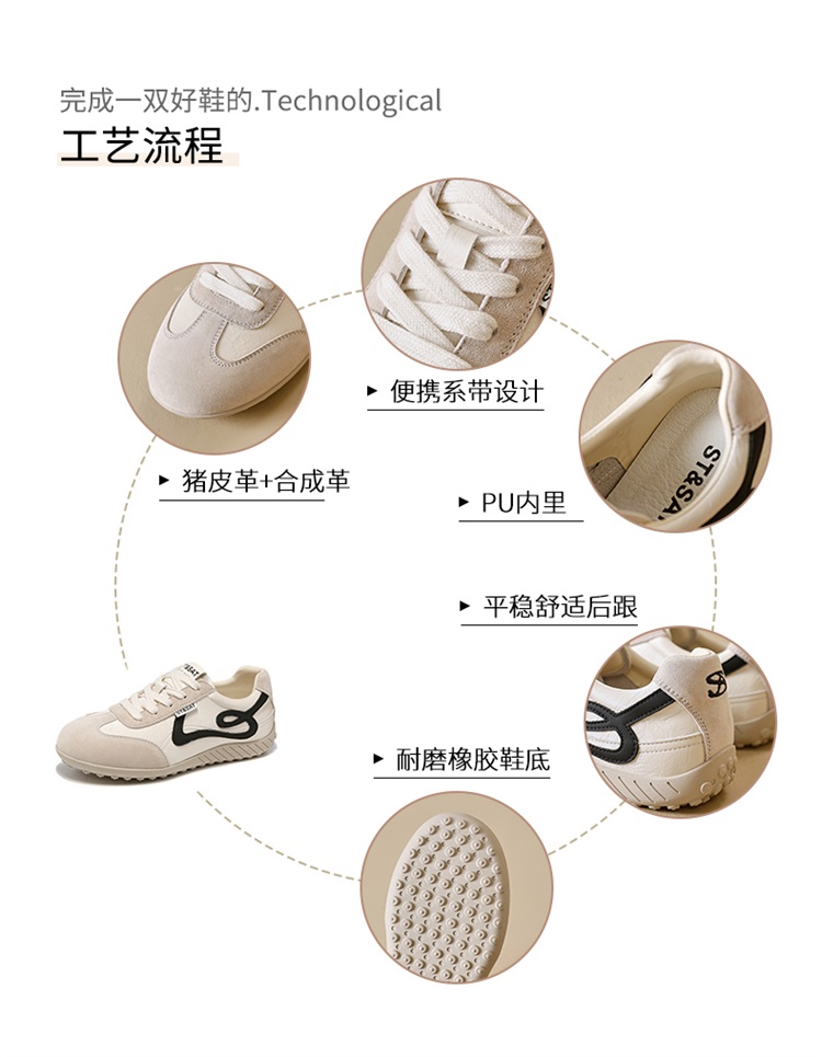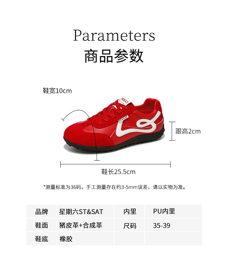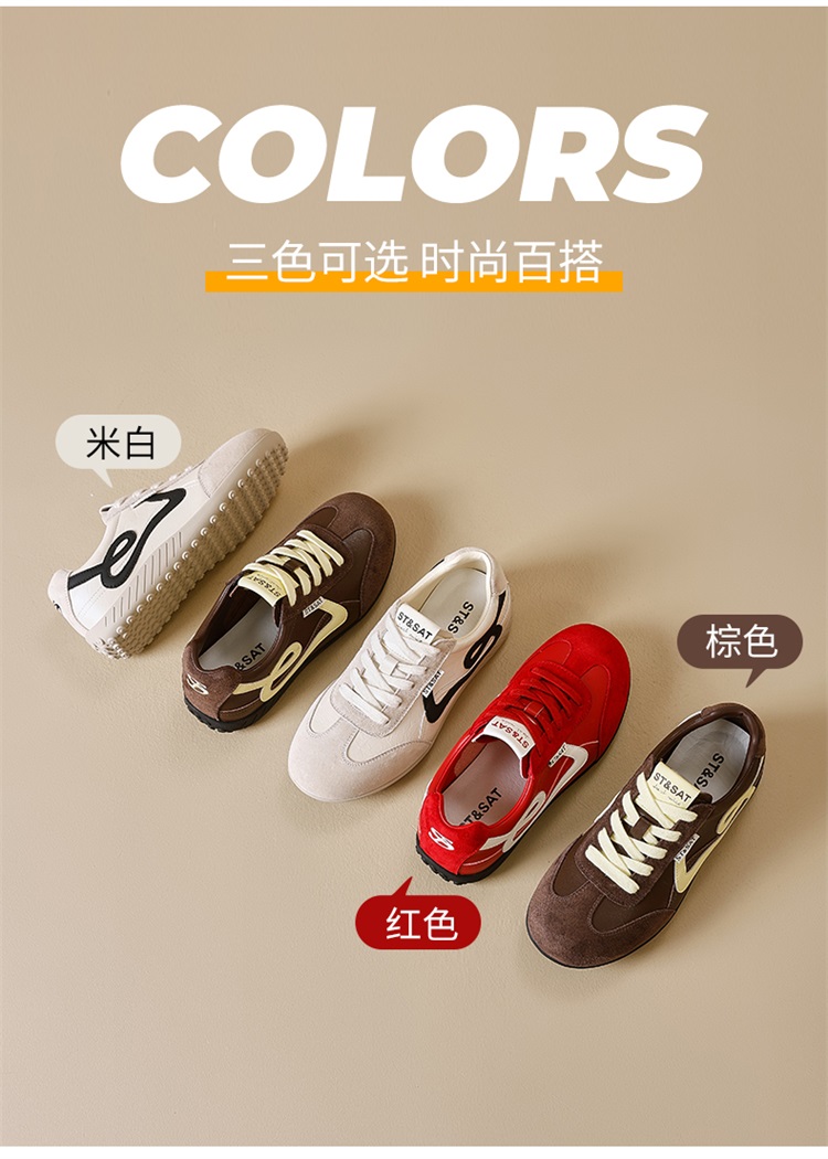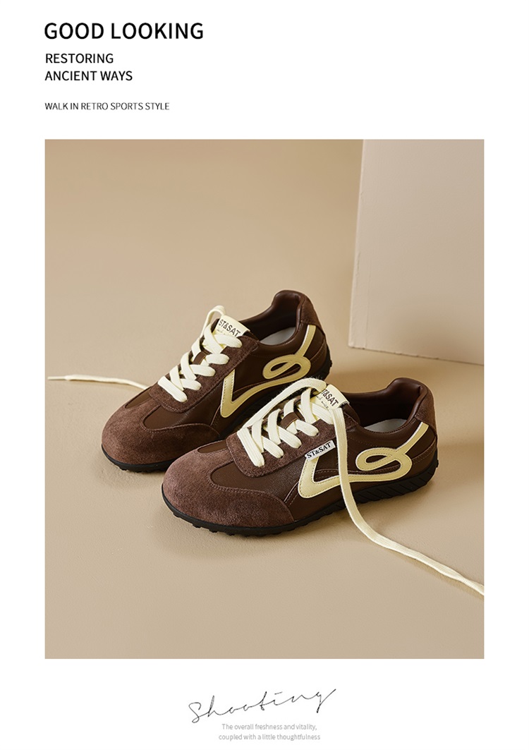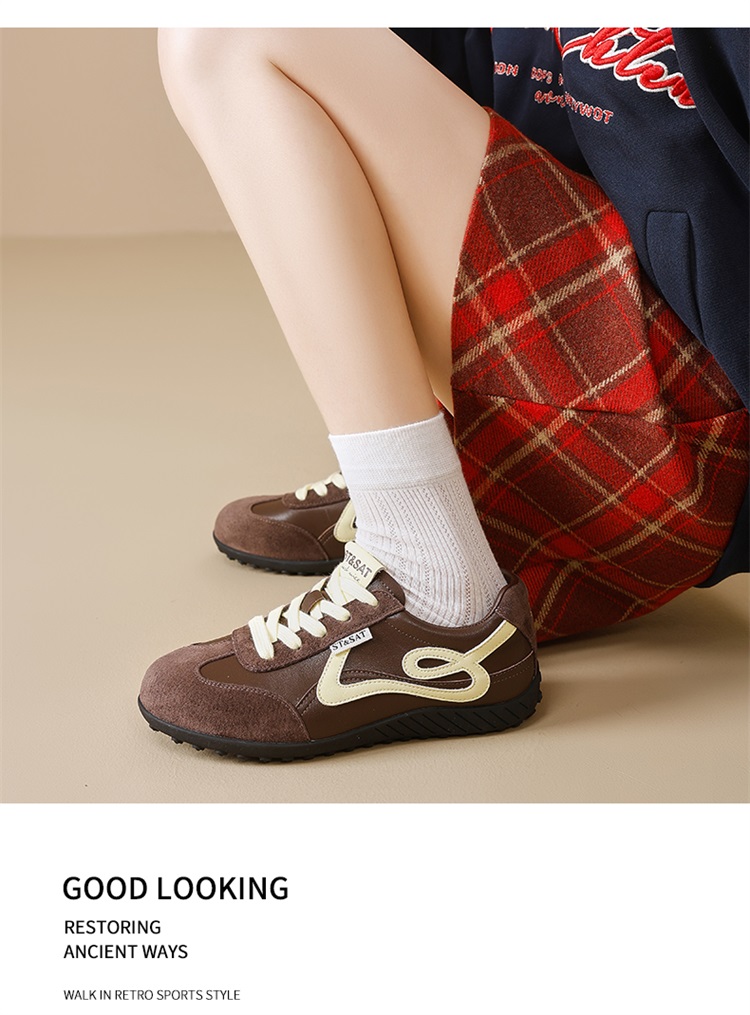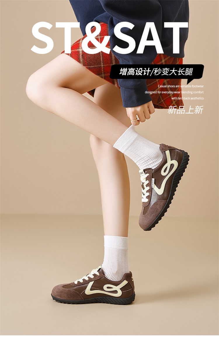 星期六复古棕色平底休闲德训鞋SSD3112T0G