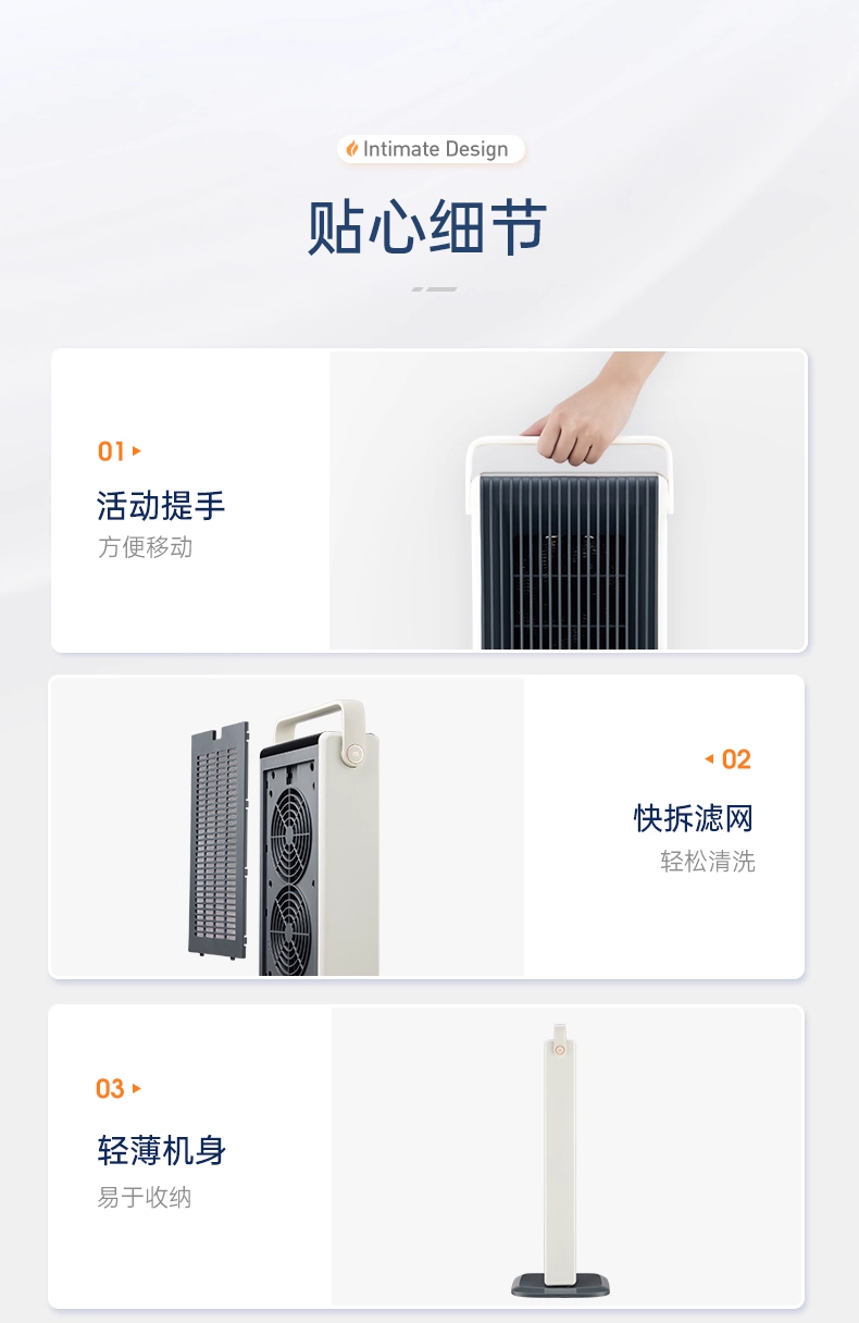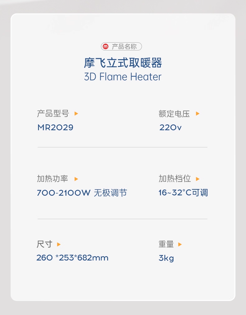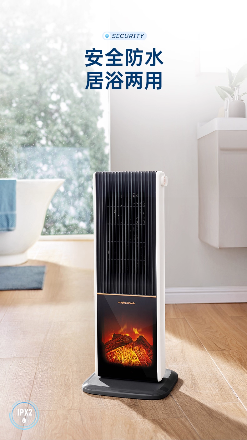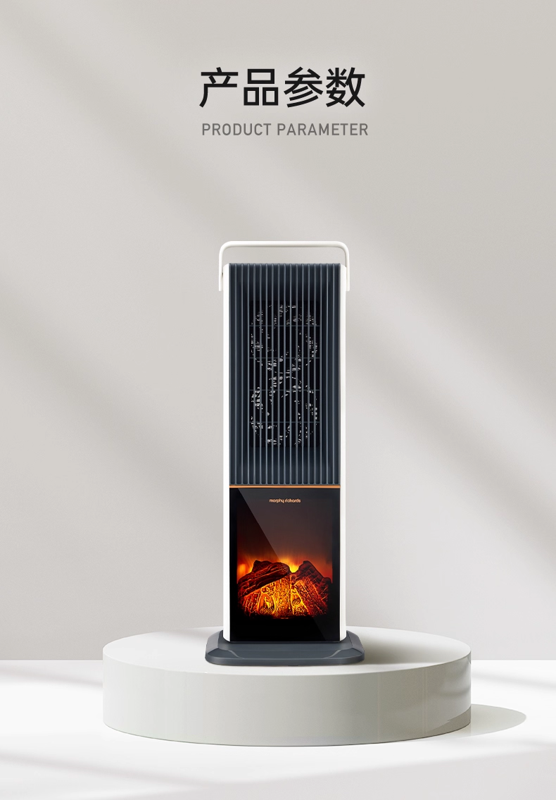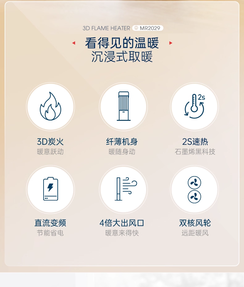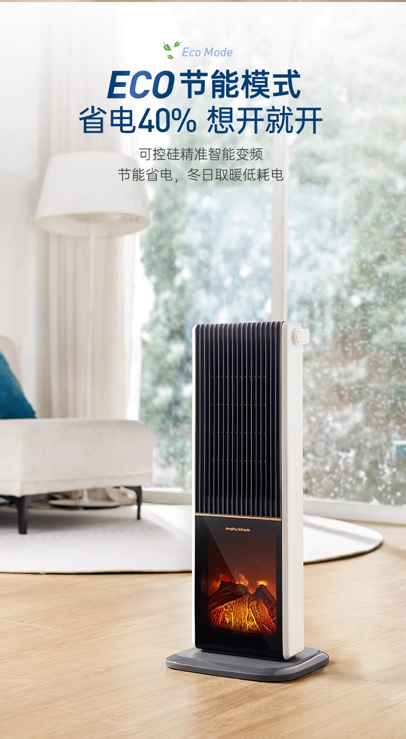 【看得见的温暖】 摩飞立式取暖器MR2029 纤薄机身 3D仿真炭火 石墨烯科技2秒速热 直流变频 节能省电 4倍大出风口 双核风轮 12H自动关机 配遥控器